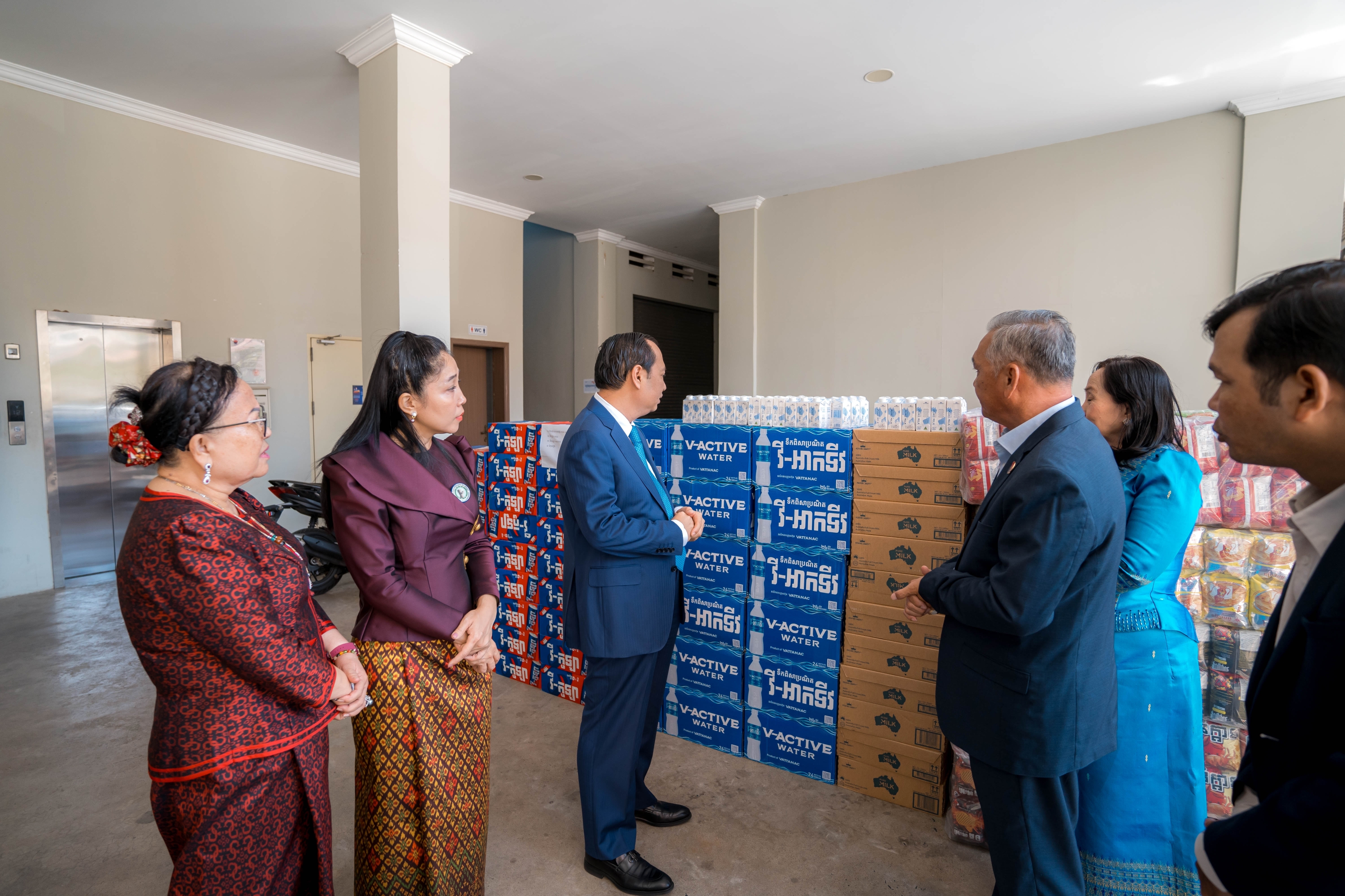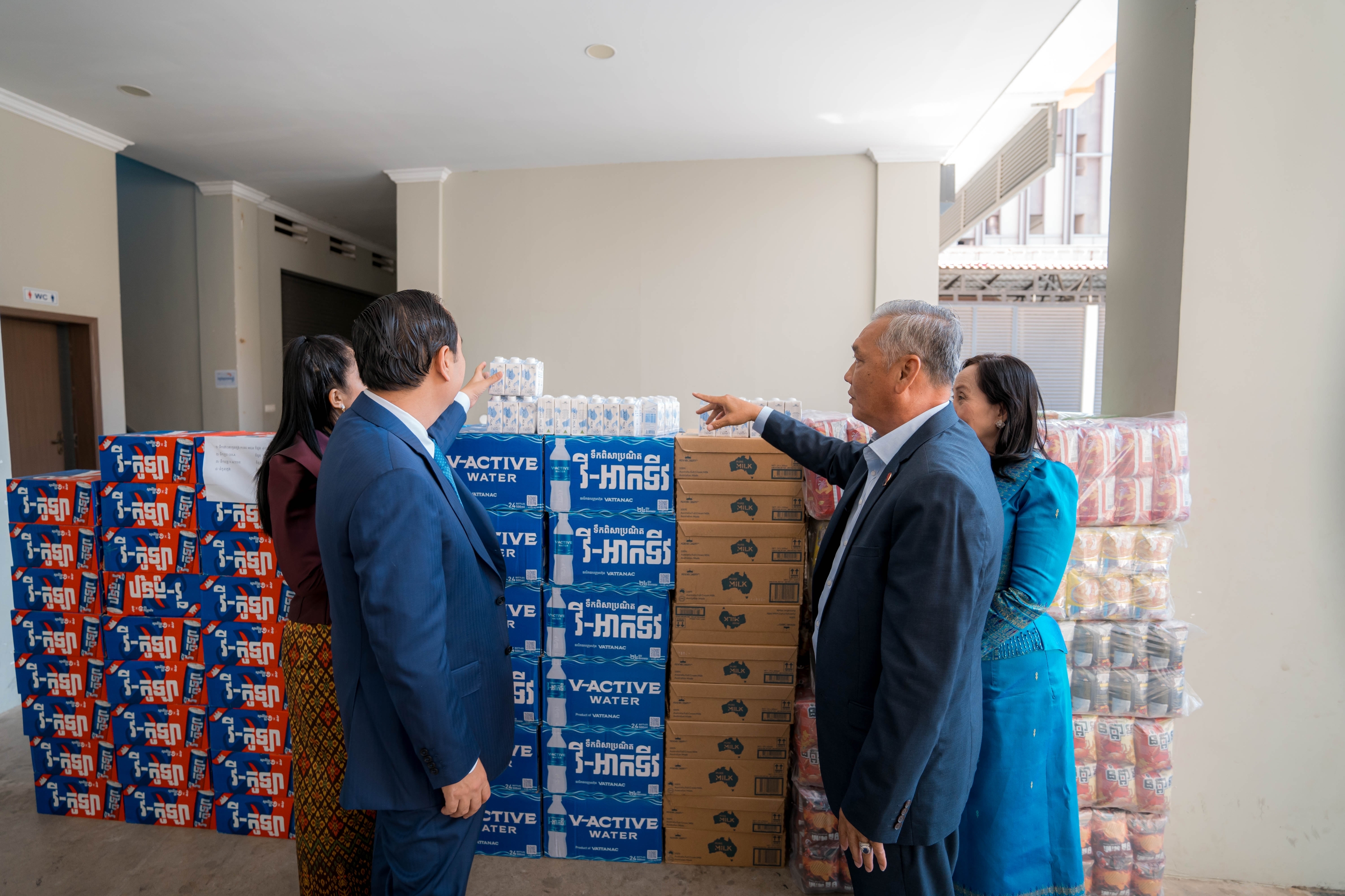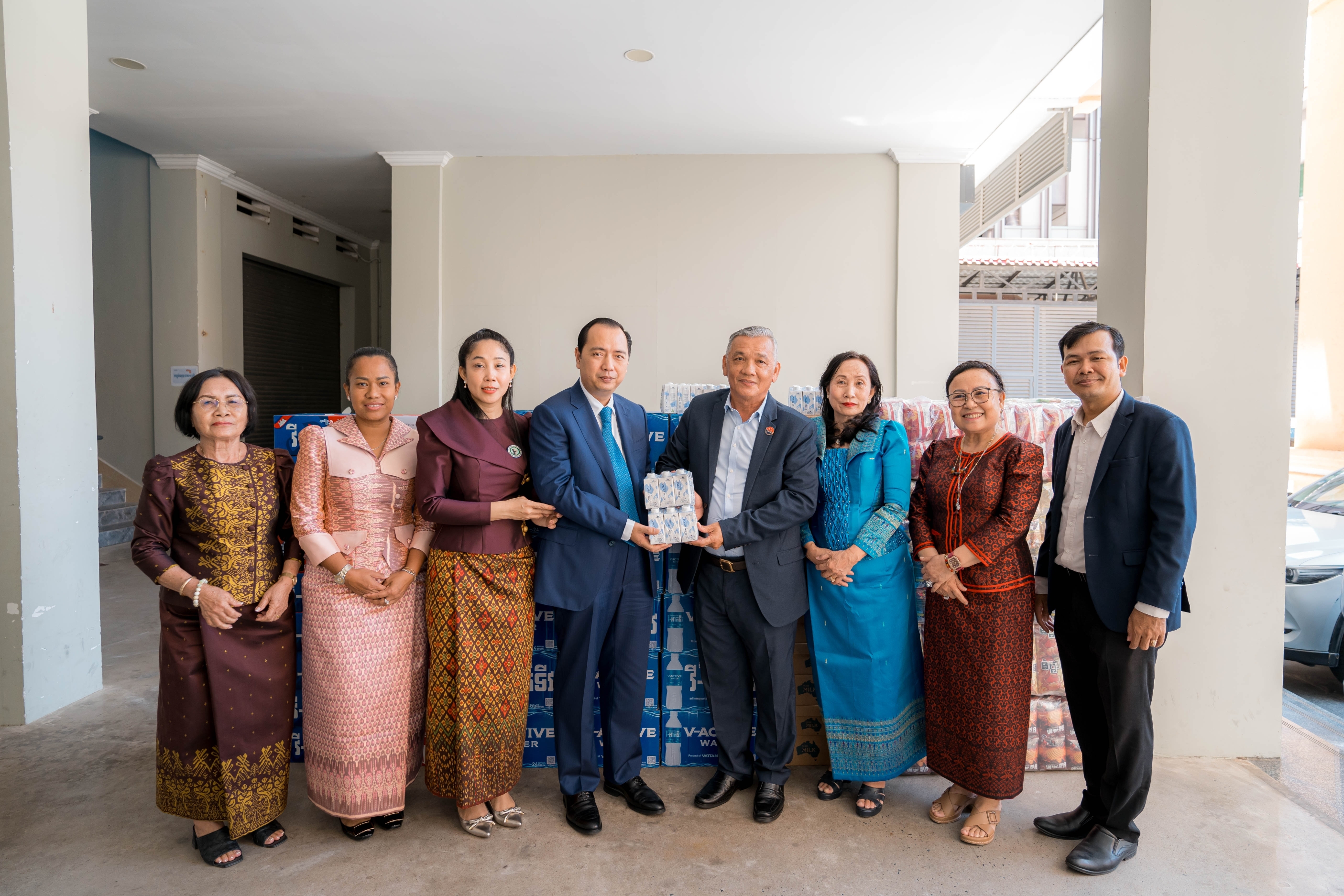 អំណោយទាំងនេះរួមមានទឹកដោះគោកូនក្មេង PURE Milk ចំនួន ៤០កេស, ទឹកក្រូចកូឡា ២៦កេស, ទឹកសុទ្ធ V-ACTIVE ៤១កេស និងនំកូនក្មេង ១ ០០០កញ្ចប់។