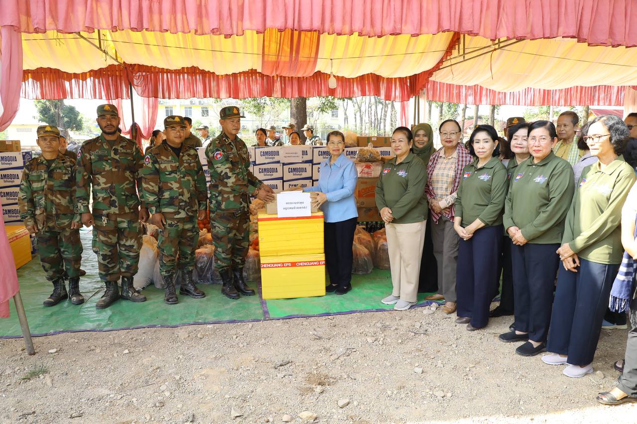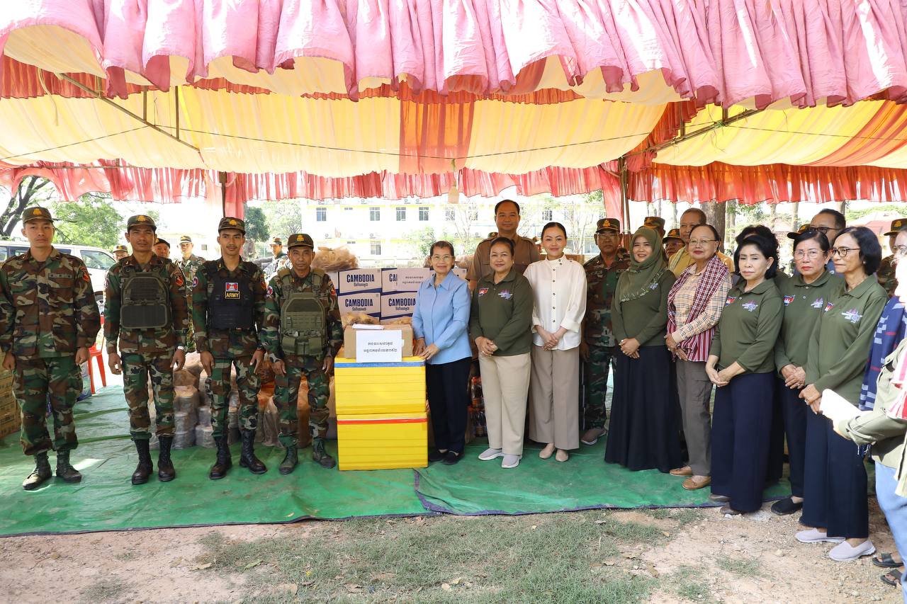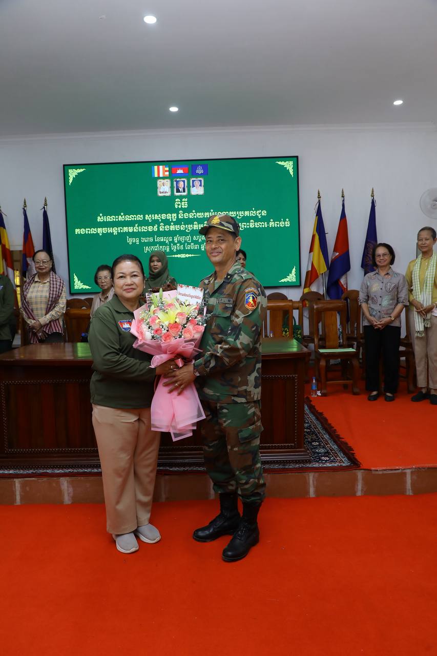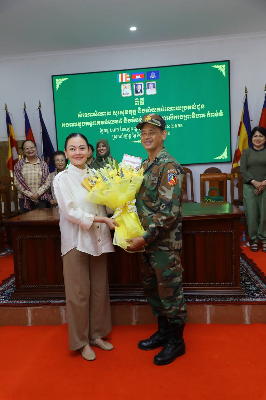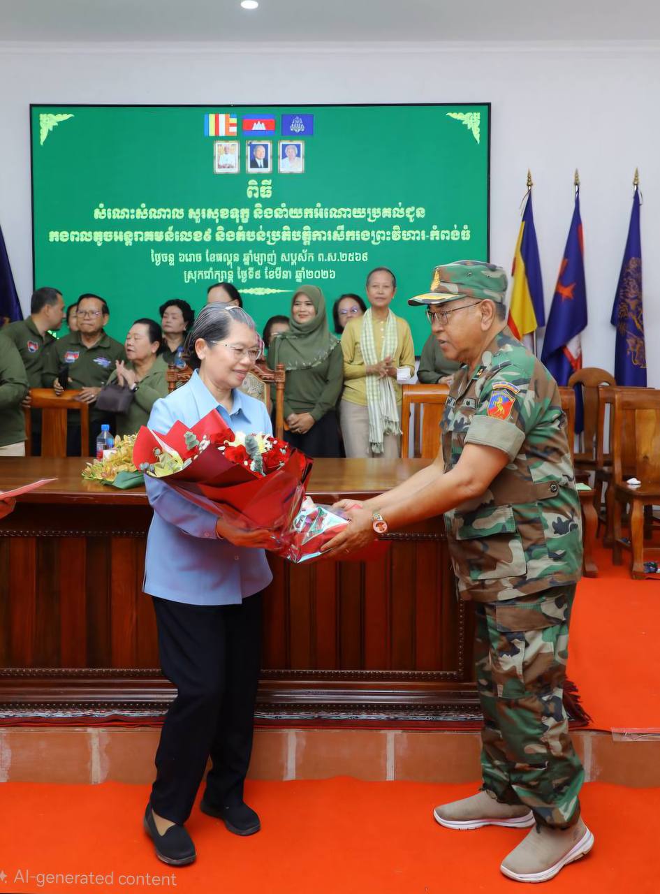 សម្តេចកិត្តិសង្គហបណ្ឌិត ម៉ែន សំអន ឧត្តមប្រឹក្សាផ្ទាល់ព្រះមហាក្សត្រ និងជាប្រធានសមាគមនារីកម្ពុជា ដើម្បីសន្តិភាព និងការអភិវឌ្ឍ អញ្ជើញសួរសុខទុក្ខ និងនាំយកអំណោយប្រគល់ជូនកងពលតូចអន្តរាគមន៍លេខ៩ និងតំបន់ប្រតិបត្តិការសឹករងព្រះវិហារ-កំពង់ធំ ដែលបានរៀបចំនៅសាលាស្រុកជាំក្សាន្ត ខេត្តព្រះវិហារ និងអបអរសាទរខួបអនុស្សាវរីយ៍ លើកទី១១៥ ទិវាអន្តរជាតិនារី ៨ មីនា ឆ្នាំ២០២៦ ក្រោមប្រធានបទ «សន្តិភាព និងសន្តិសុខសម្រាប់ស្រ្តី និងគ្រួសារ» នាព្រឹកថ្ងៃទី៩ ខែមីនា ឆ្នាំ២០២៦នេះ។