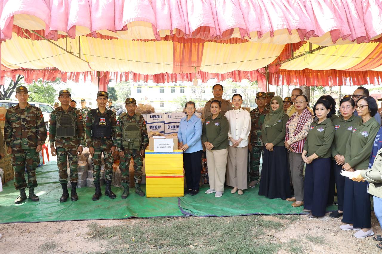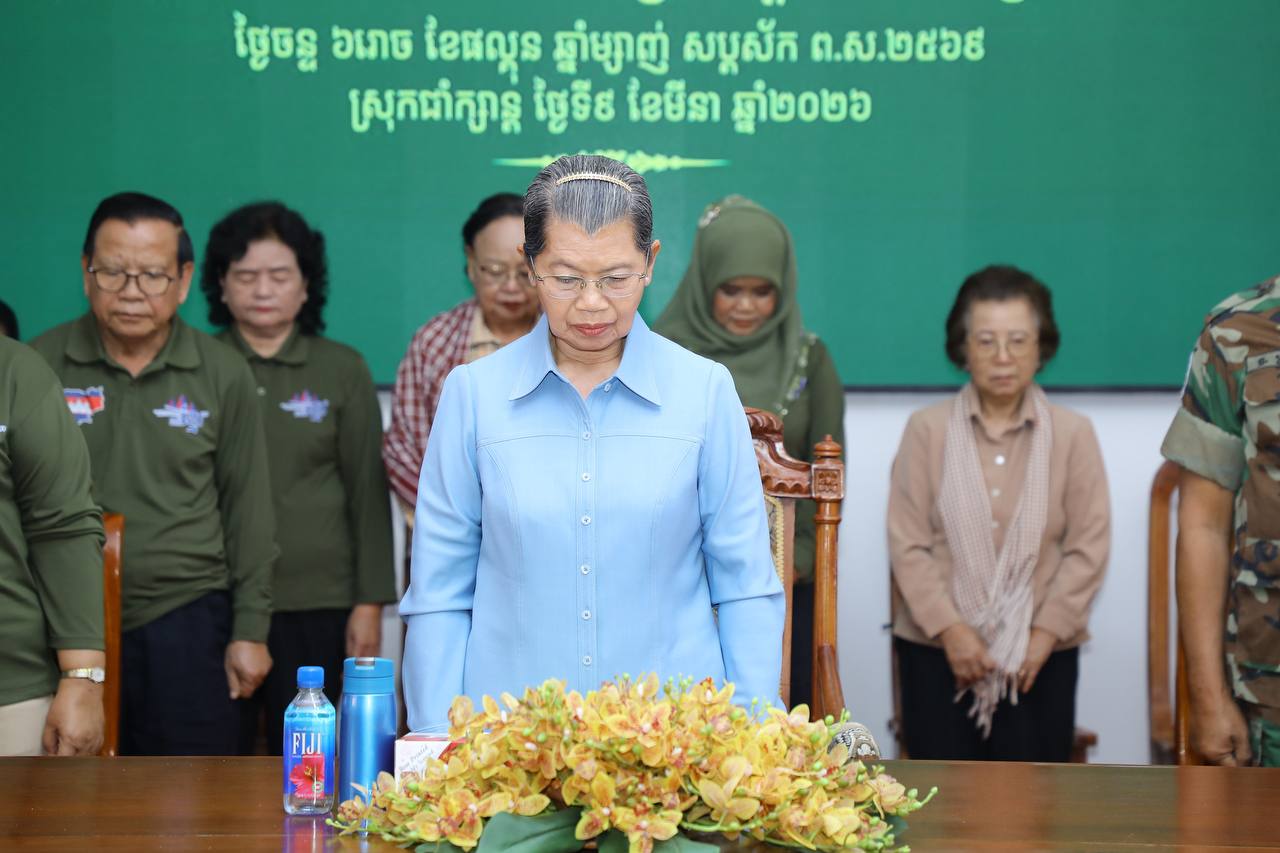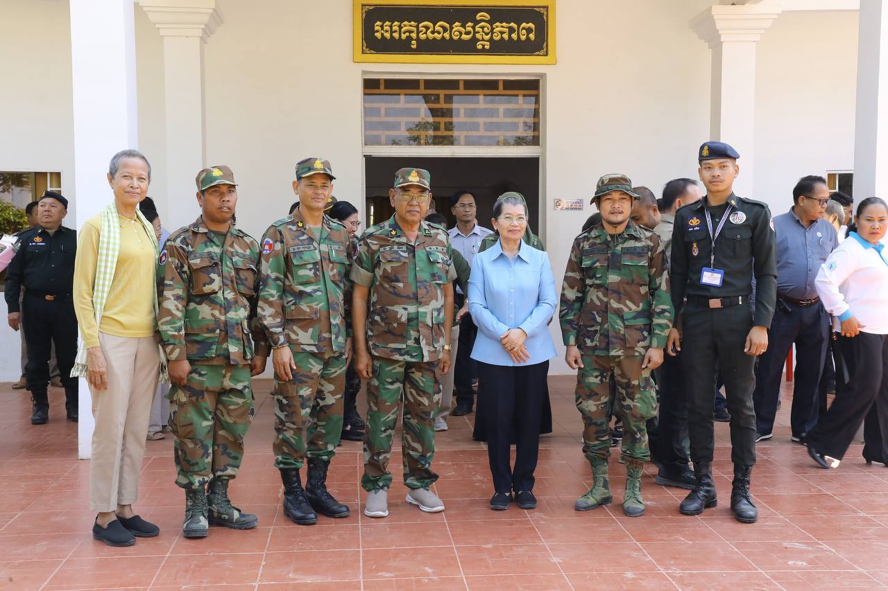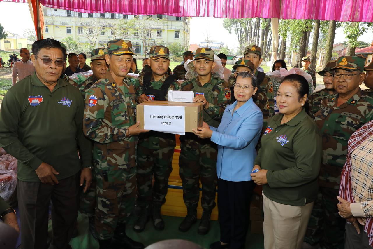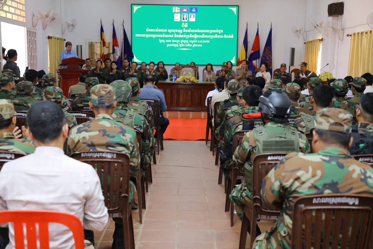 សម្តេចកិត្តិសង្គហបណ្ឌិត ម៉ែន សំអន ឧត្តមប្រឹក្សាផ្ទាល់ព្រះមហាក្សត្រ និងជាប្រធានសមាគមនារីកម្ពុជា ដើម្បីសន្តិភាព និងការអភិវឌ្ឍ អញ្ជើញសួរសុខទុក្ខ និងនាំយកអំណោយប្រគល់ជូនកងពលតូចអន្តរាគមន៍លេខ៩ និងតំបន់ប្រតិបត្តិការសឹករងព្រះវិហារ-កំពង់ធំ ដែលបានរៀបចំនៅសាលាស្រុកជាំក្សាន្ត ខេត្តព្រះវិហារ និងអបអរសាទរខួបអនុស្សាវរីយ៍ លើកទី១១៥ ទិវាអន្តរជាតិនារី ៨ មីនា ឆ្នាំ២០២៦ ក្រោមប្រធានបទ «សន្តិភាព និងសន្តិសុខសម្រាប់ស្រ្តី និងគ្រួសារ» នាព្រឹកថ្ងៃទី៩ ខែមីនា ឆ្នាំ២០២៦នេះ។