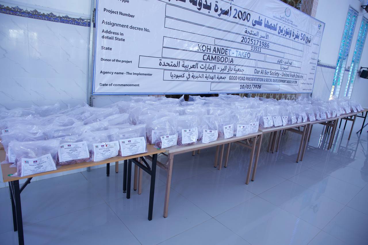 នៅព្រឹកថ្ងៃទី១០ ខែមីនា ឆ្នាំ២០២៦ ឯកឧត្តម រ៉ូហ្វី អូស្មាន អនុប្រធានគណៈចលនាសាសនិកឥស្លាមកម្ពុជា តំណាងដ៏ខ្ពង់ខ្ពស់ ឯកឧត្តមទេសរដ្ឋមន្ត្រី អូស្មាន ហាស្សាន់ ប្រធានគណៈចលនាសាសនិកឥស្លាម បានអញ្ជើញសំណេះសំណាល និងចែកកញ្ចប់សាច់គោ ជូនប្រជាពលរដ្ឋចំនួន ៤០០គ្រួសារ នៅភូមិសំរោង ឃុំរមេញ ស្រុកកោះអណ្តែត ខេត្តតាកែវ ដោយកម្មវិធីសប្បុរសធម៌នេះ រៀបចំឡើងដោយសមាគមបង្ហាញផ្លូវល្អ និងអភិវឌ្ឍន៍សង្គម។