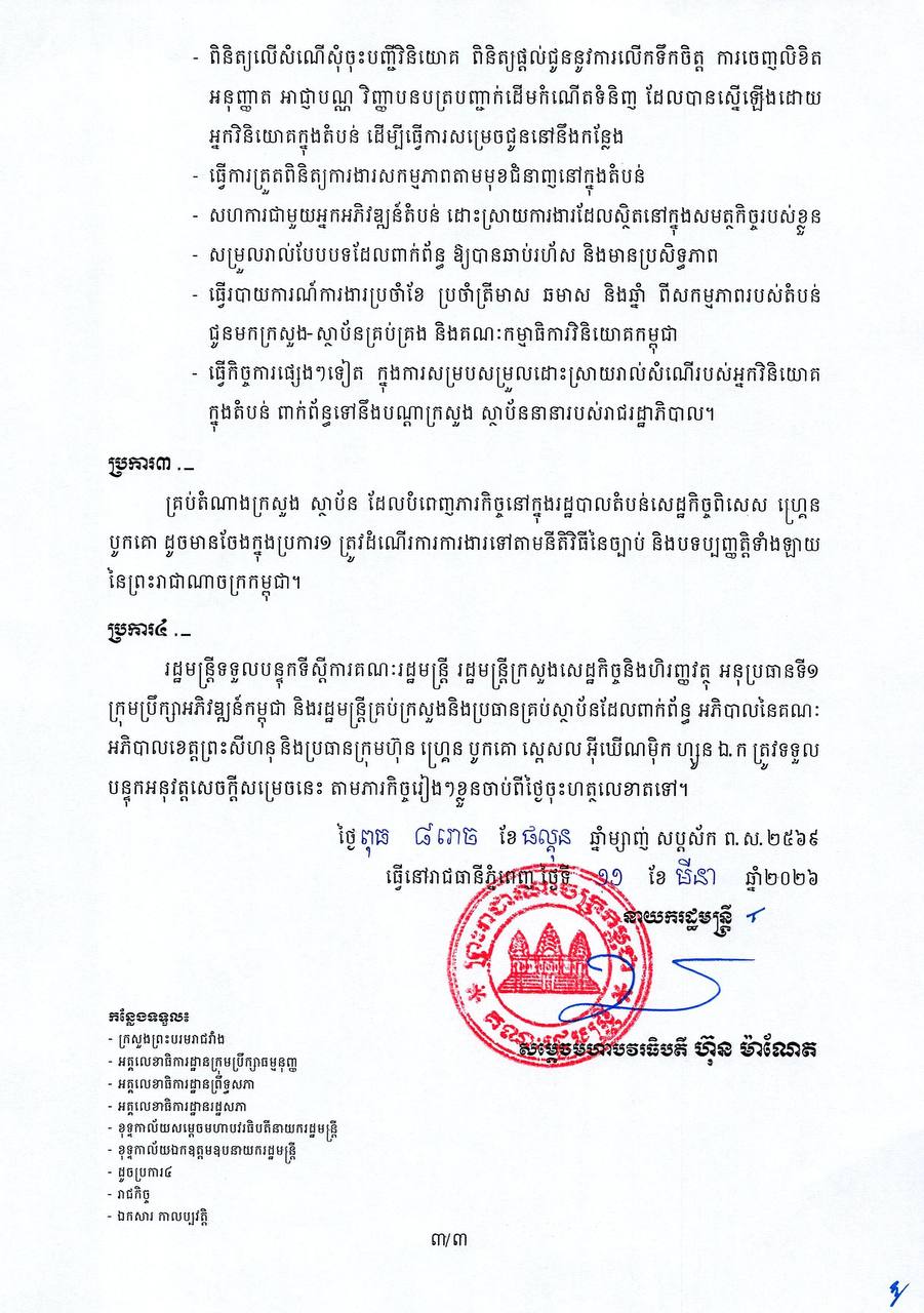 ខាងក្រោមនេះជាសេចក្តីសម្រេចរបស់សម្តេចបវរធិបតី ហ៊ុន ម៉ាណែត៖