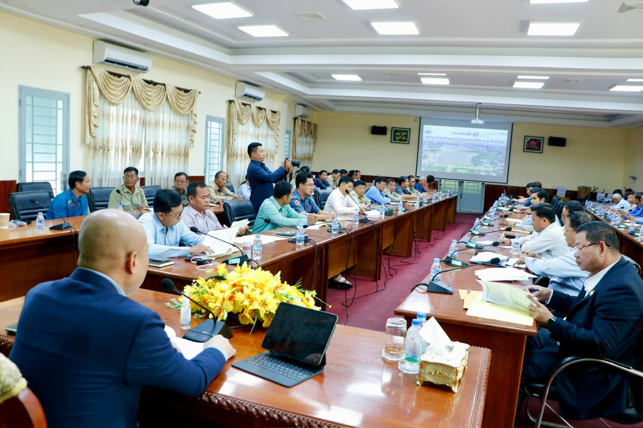 កិច្ចប្រជុំនេះមានការអញ្ជេីញចូលរួមពី លោក អភិបាលរងខេត្ត លោកប្រធានមន្ទីរពាក់ព័ន្ធនានាក្នុងខេត្ត លោកអភិបាលស្រុករមាសហែក-ស្រុកស្វាយជ្រំ និងស្រុករំដួល