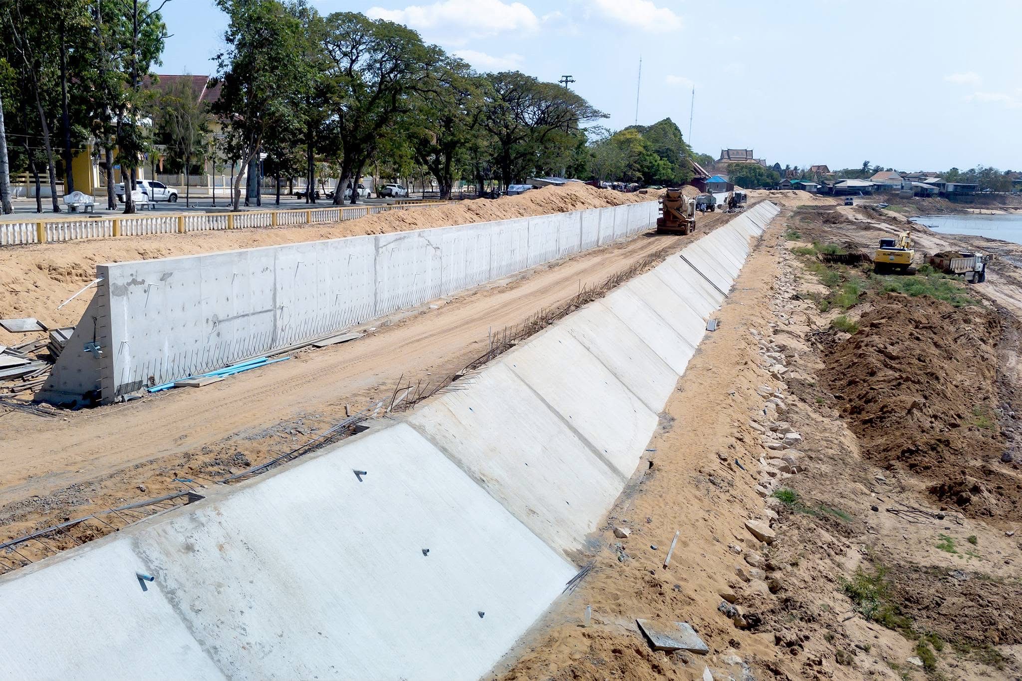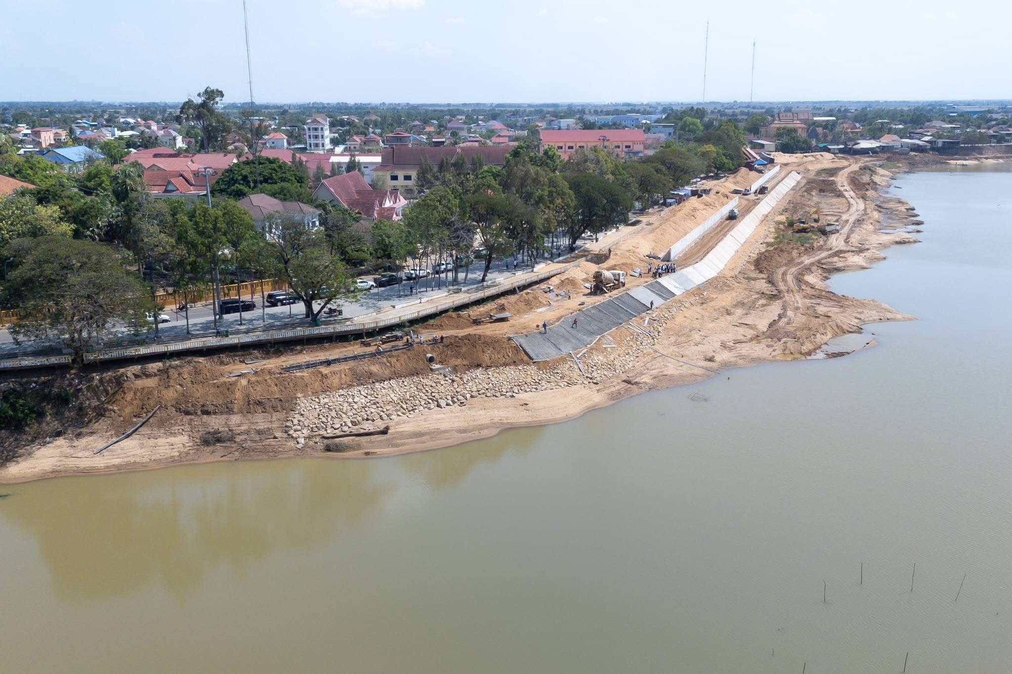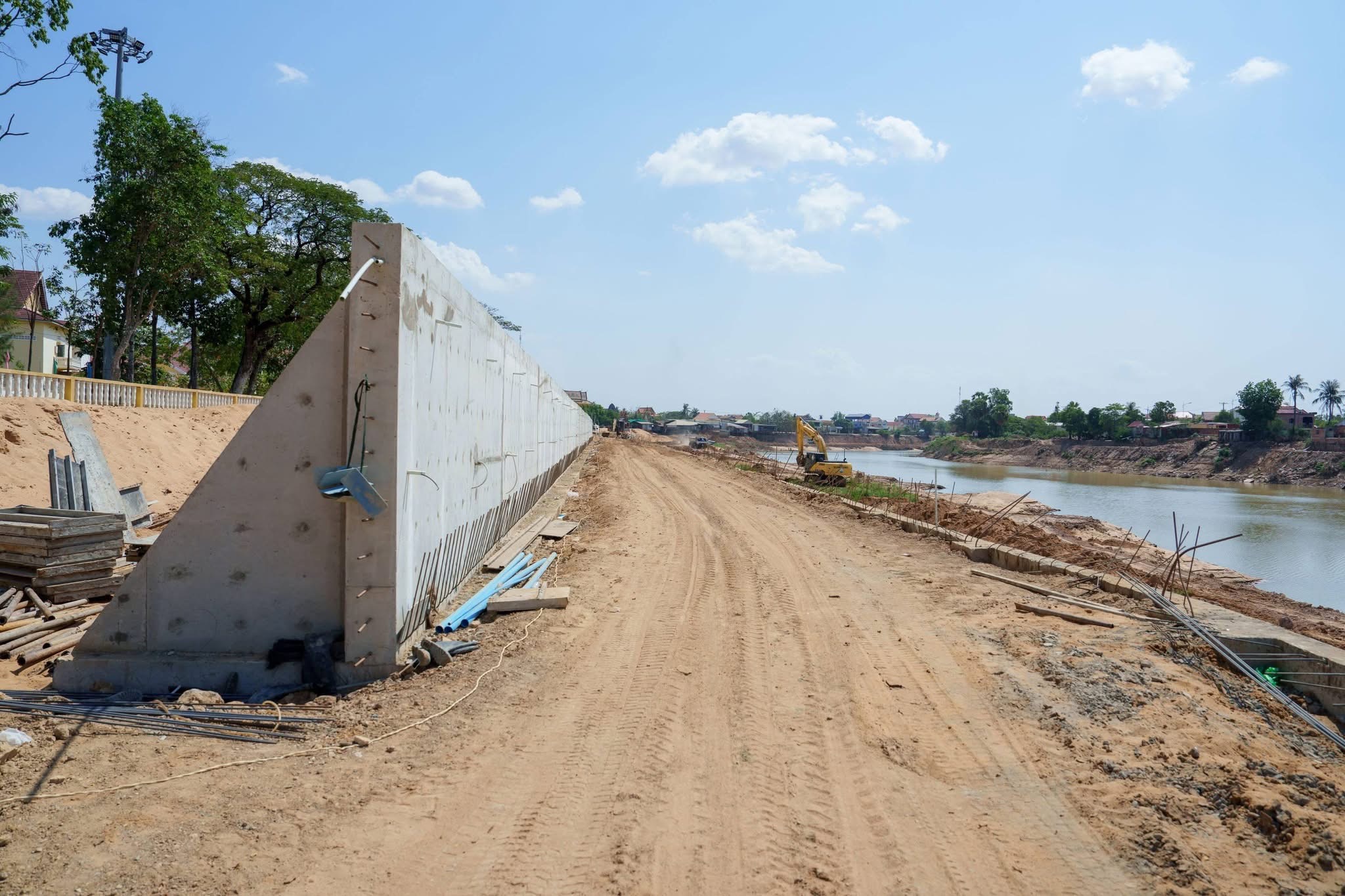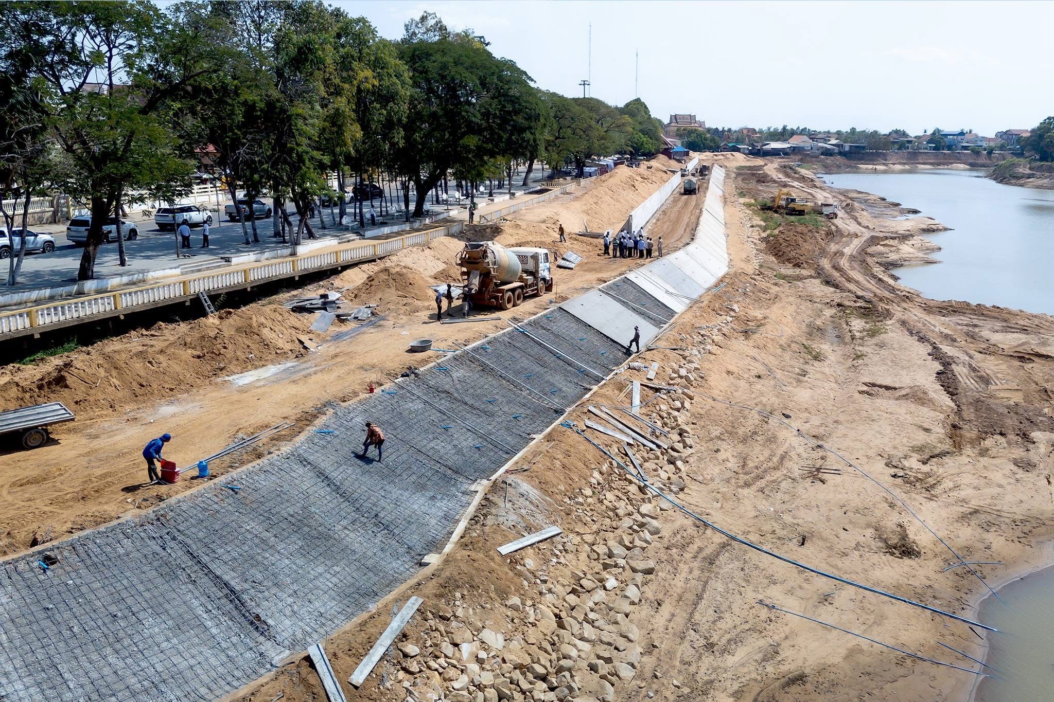 សូមជម្រាបថា ការងារសាងសង់សំណង់ការពារជើងទេរច្រាំងស្ទឹងសែនប្រវែង ២៥៤៥ម៉ែត្រ គឺជាផ្នែកមួយនៃអនុគម្រោងអភិវឌ្ឍន៍ប្រព័ន្ធធារាសាស្ត្រកំពង់គោជំហាន២ នៃគម្រោងគ្រប់គ្រងនិងកាត់បន្ថយគ្រោះទឹកជំនន់ និងគ្រោះរាំងស្ងួត ក្នុងខេត្តកំពង់ធំ ដែលទទួលហិរញ្ញប្បទានពីរាជរដ្ឋាភិបាលកម្ពុជា។ ការងារសំណង់ជើងទេរច្រាំងស្ទឹងសែន រួមមានចំនួន ៤កំណាត់នៅតាមទីតាំងដូចជា៖ ១)មុខសាលាខេត្តប្រវែង ៩២៥ម៉ែត្រ ២)តំបន់ផ្សារចាស់ប្រវែង ៥៧៨ម៉ែត្រ ៣)តំបន់ពោធិ៍បាក់កប្រវែង ៥៨៥ម៉ែត្រ និង ៤)តំបន់កំពង់ក្របៅប្រវែង ៤៥៧ម៉ែត្រ។ គិតត្រឹមដើមខែមីនា ឆ្នាំ២០២៦នេះ វឌ្ឍនភាពការងារសាងសង់សម្រេចបានប្រមាណ ១១%។