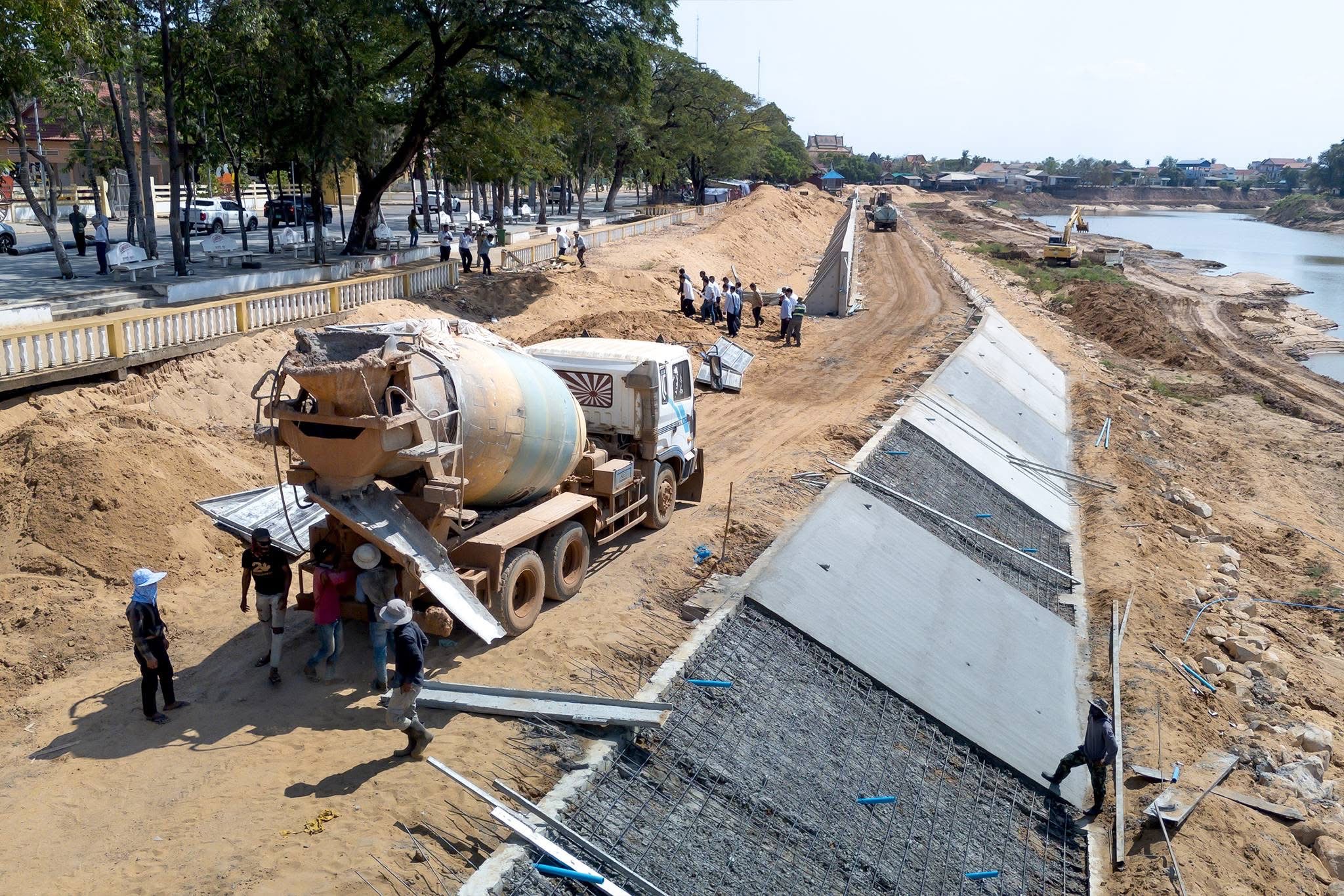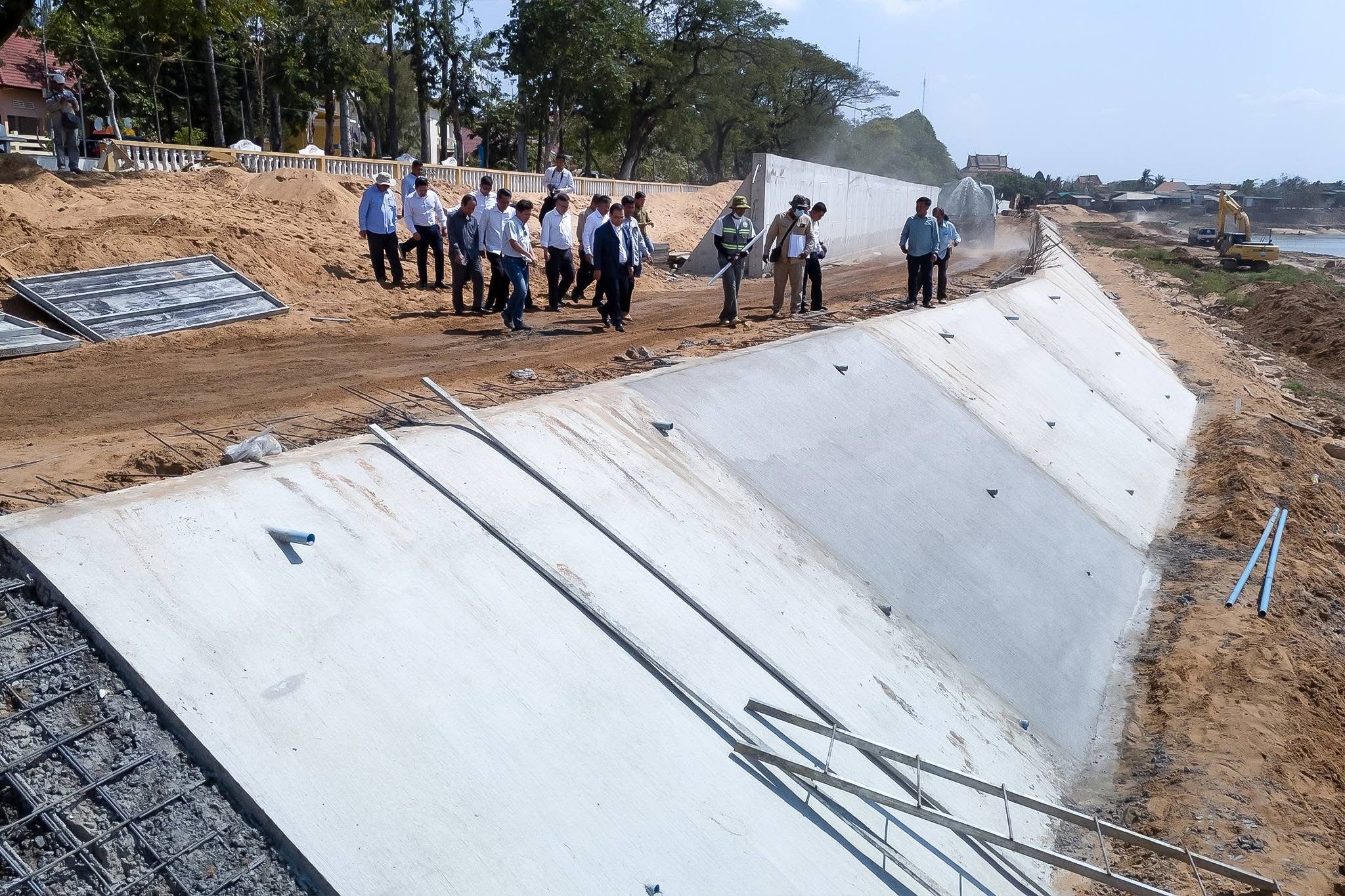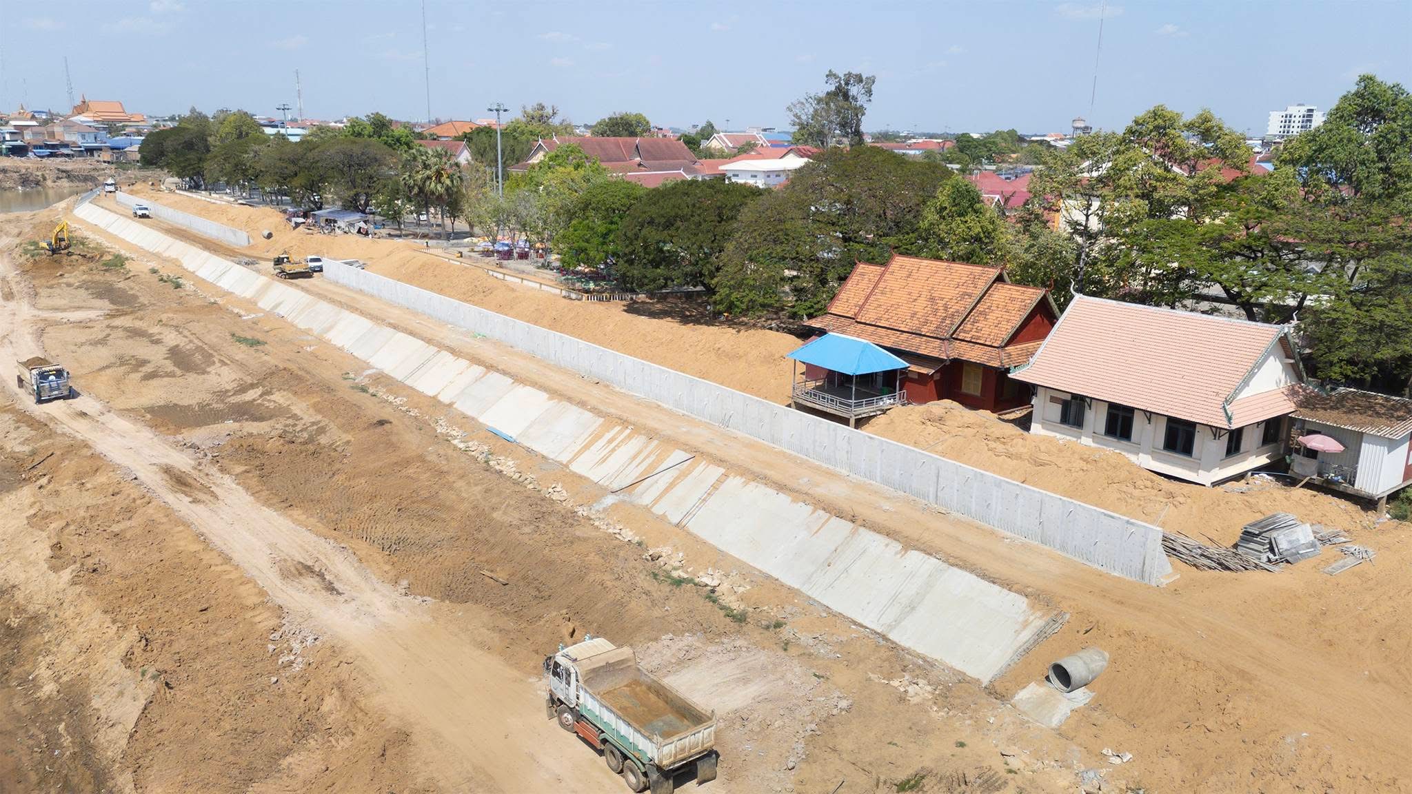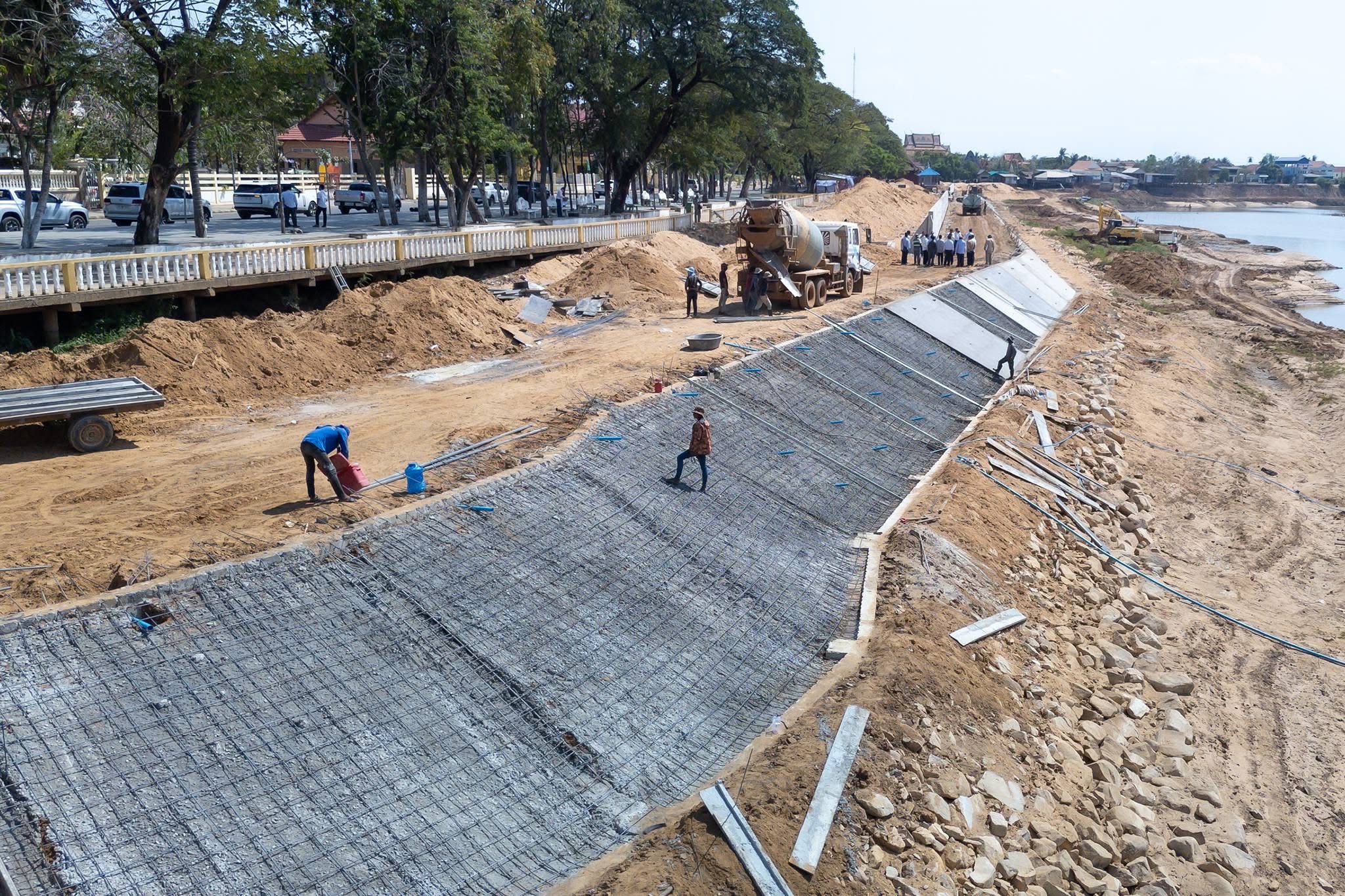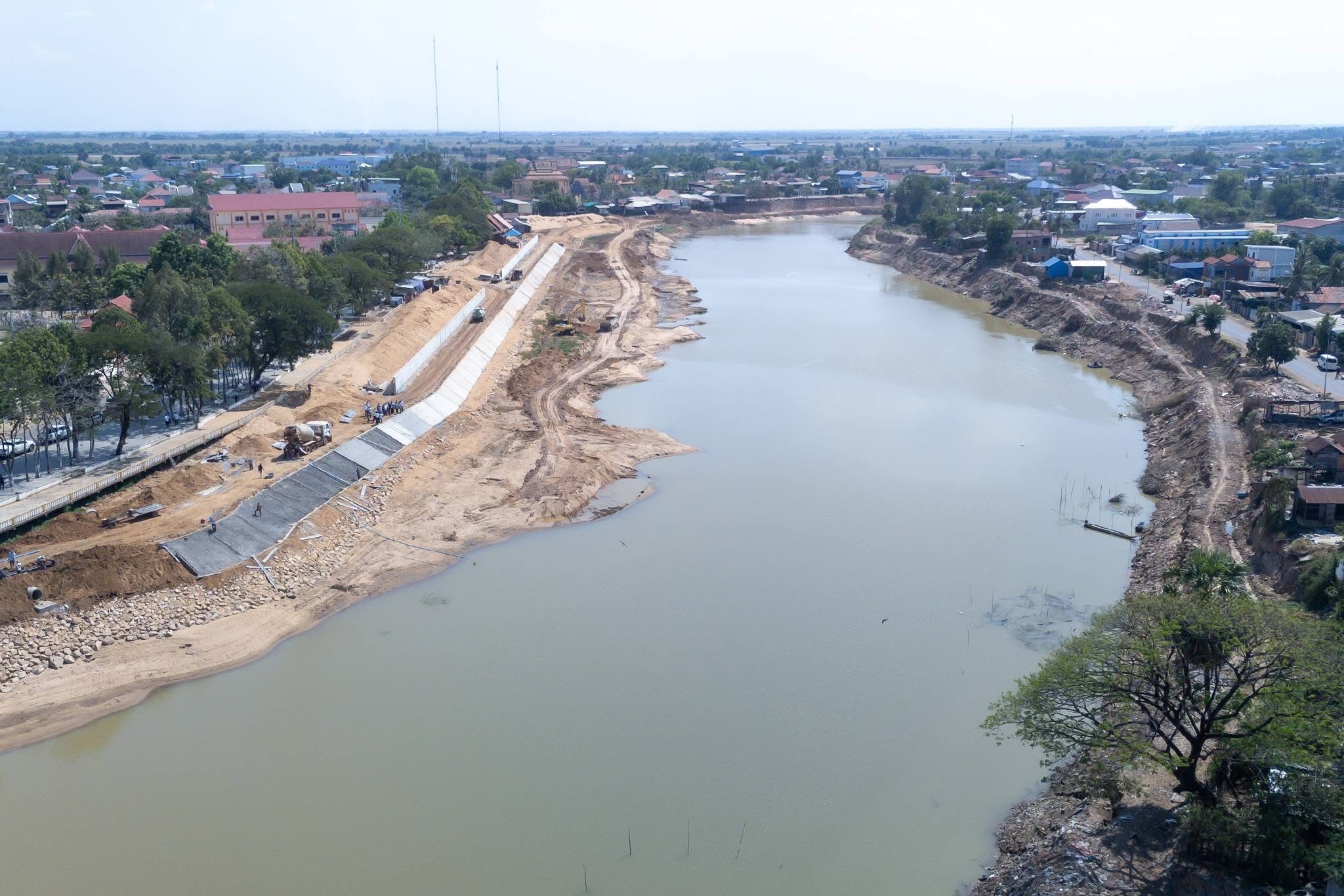 នារសៀលថ្ងៃចន្ទ ១៣រោច ខែផល្គុន ឆ្នាំម្សាញ់ សប្ដស័ក ពុទ្ធសករាជ ២៥៦៩ ត្រូវនឹងថ្ងៃទី១៦ ខែមីនា ឆ្នាំ២០២៦នេះ ឯកឧត្តម ថោ ជេដ្ឋា រដ្ឋមន្ត្រីក្រសួងធនធានទឹក និងឧតុនិយម បានអញ្ជើញចុះពិនិត្យជាក់ស្តែងវឌ្ឍនភាពការងារសាងសង់សំណង់ការពារជើងទេរច្រាំងស្ទឹងសែន ដែលស្ថិតក្នុងសង្កាត់កំពង់ធំ សង្កាត់ដំរីជាន់ខ្លា សង្កាត់កំពង់រទេះ និងសង្កាត់កំពង់ក្របៅ នៃក្រុងស្ទឹងសែន ខេត្តកំពង់ធំ។