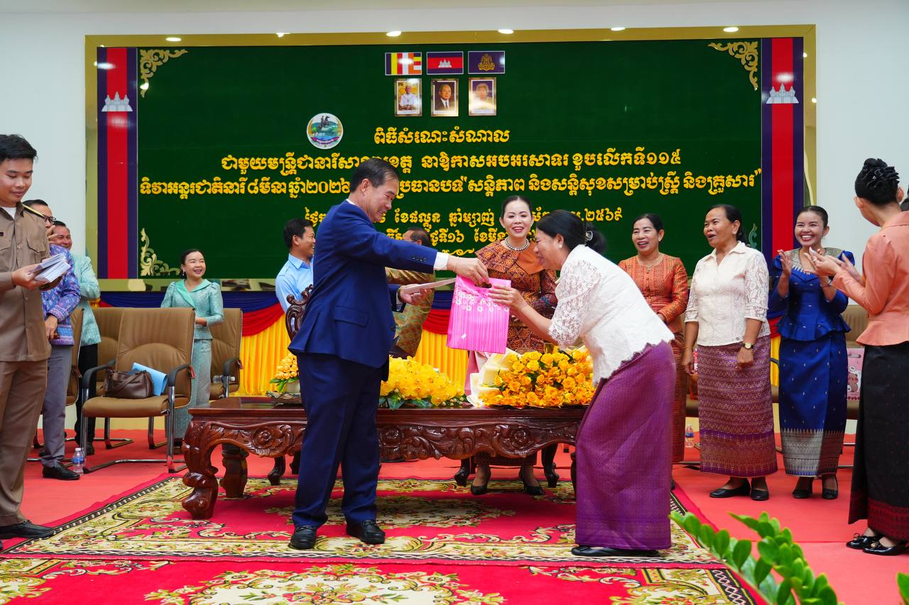 ឯកឧត្តម ខូយ រីដា អភិបាលនៃគណៈអភិបាលខេត្ត នាថ្ងៃទី១៦ ខែមីនា ឆ្នាំ២០២៦ បានលើឡើងថា ស្រ្តីមានតួនាទីស្មើគ្នាជាមួយបុរស ដែលបានចូលរួមធ្វើការងារជូនប្រទេសជាតិ និងជាដៃគូរស្មើភាពជាមួយបុរស ដើម្បីចូលរួមលើកិច្ចអភិវឌ្ឍន៍ កសាង ថែររក្សា និងស្តារឡើងវិញនៅពេលដែលប្រទេសជាតិជួបវិបត្តិ។ ការផ្ដល់សិទ្ធិអំណាចដល់ស្ត្រី មិនមែនជាការប្រកួតប្រជែងជាមួយបុរសនោះទេ ប៉ុន្តែគឺជាការបំពេញបន្ថែម ដើម្បីបង្កើតនូវភាពធន់ សម្រាប់ជាតិទាំងមូល។