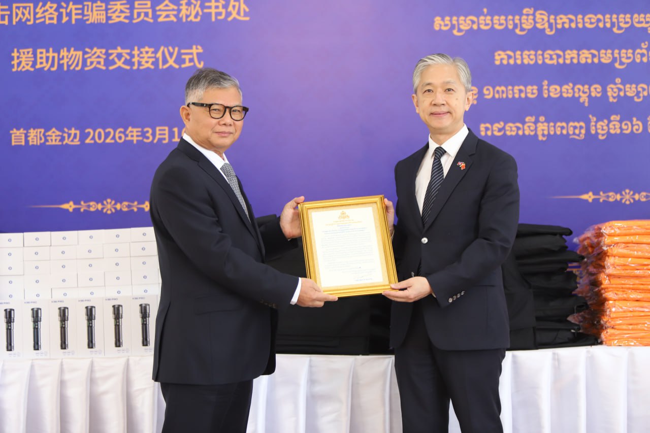 លេខាធិការដ្ឋានគណៈកម្មការ ចំពោះកិច្ចប្រយុទ្ធប្រឆាំងការឆបោក តាមប្រព័ន្ធបច្ចេកវិទ្យាហៅកាត់ថា (គ.ប.ឆ.ប) នៅថ្ងៃទី១៦ ខែមីនា ឆ្នាំ២០២៦ បានរៀបចំពិធីប្រគល់-ទទួលសម្ភារៈបច្ចេកទេស ដែលផ្តល់ជូនដោយក្រសួងសន្តិសុខសាធារណៈចិន តាមរយៈស្ថានទូតចិនប្រចាំនៅកម្ពុជា សម្រាប់រួមចំណែកគាំទ្រដល់ប្រតិបត្តិការបង្ក្រាបបទល្មើសឆបោក តាមប្រព័ន្ធបច្ចេកវិទ្យា Online Scams។