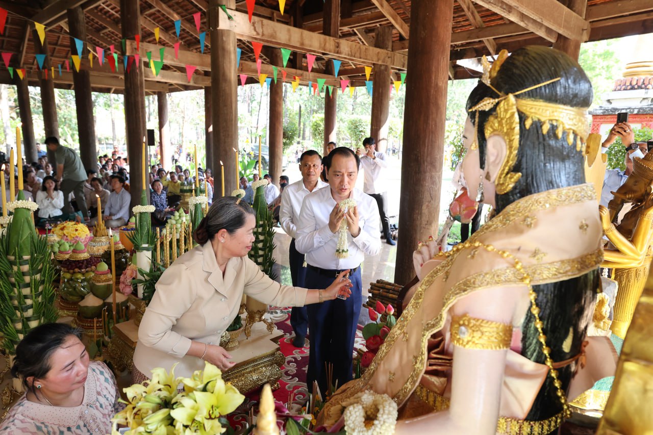 នៅក្នុងពិធីនោះក៏មានការអញ្ជើញចូលរួមពីឯកឧត្តម នេត្រ ភក្ត្រា រដ្ឋមន្រ្តីក្រសួងព័ត៌មាន និងជាប្រធានក្រុមការងាររាជរដ្ឋាភិបាលចុះមូលដ្ឋានខេត្តក្រចេះ តំណាងក្រសួងទេសចរណ៍ រដ្ឋបាលខេត្តក្រចេះ កងកម្លាំងប្រដាប់អាវុធទាំង៣ប្រភេទ មន្ត្រីរាជការ ព្រមទាំងពុទ្ធបរិស័ទ ដោយបានបូជាទៀនធូបផា្កភ្ញី ចំពោះព្រះរតនត្រៃ និងឧទ្ទិសដល់ដួងវិញ្ញានក្ខន្ធ និងបុព្វការីជន មានមាតាបិតាជីដូនជីតាញាតិការទាំង ៧សណ្ដាន និងជូនចំពោះវិញ្ញាណក្ខន្ធវិរកងទ័ព បុព្វបុរសអ្នកស្នេហាជាតិ ដែលបានពលីអាយុជីវិត ដើម្បីភាពគង់វង្សនៃបូរណភាពទឹកដី ជាតិមាតុភូមិឱ្យទទួលបានសុខសន្ដិភាព ភាពរីកចម្រើន សម្បូរណ៍រុងរឿង។