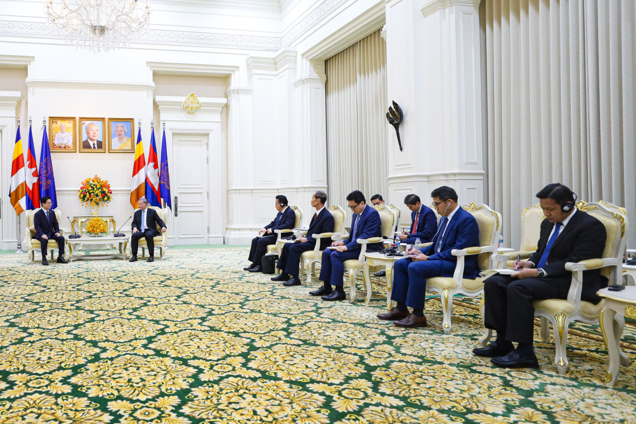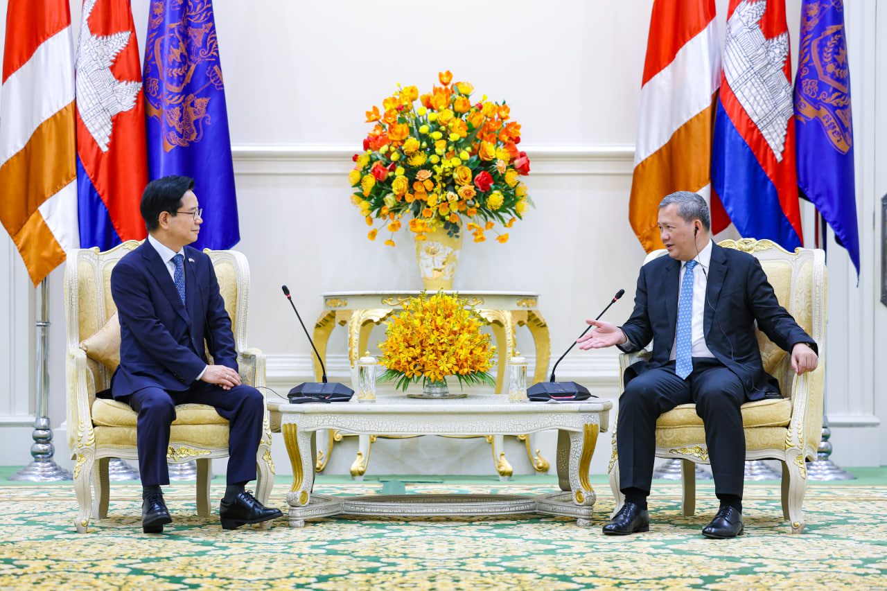 នៅព្រឹកថ្ងៃអង្គារ ទី១៧ ខែមីនា ឆ្នាំ២០២៦នេះ សម្តេចមហាបវរធិបតី ហ៊ុន ម៉ាណែត នាយករដ្ឋមន្ត្រីកម្ពុជា បានអនុញ្ញាតឱ្យលោក KIM Changyong ឯកអគ្គរដ្ឋទូតកូរ៉េខាងត្បូង ប្រចាំនៅកម្ពុជា ចូលជួបសម្តែងការគួរសម និងពិភាក្សាការងារ នៅវិមានសន្តិភាព៕