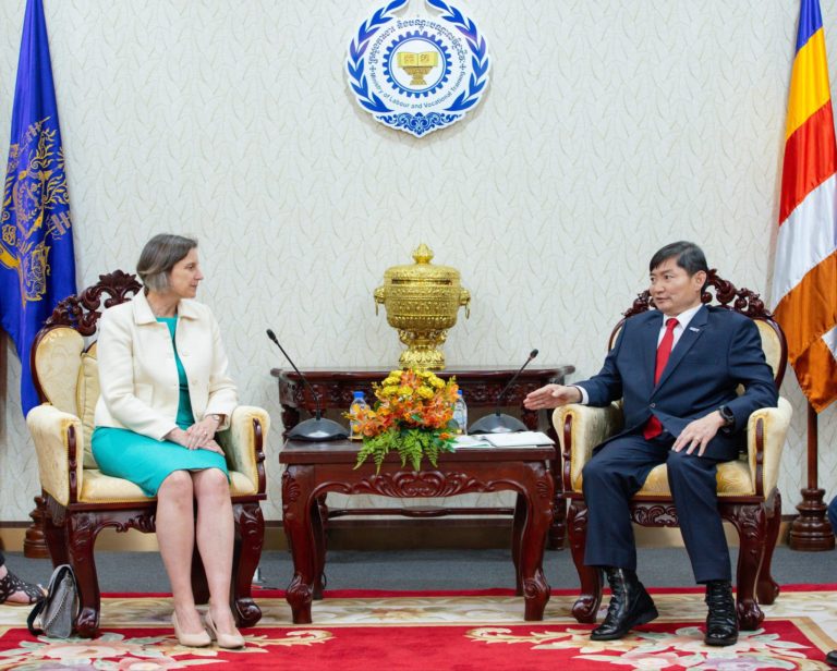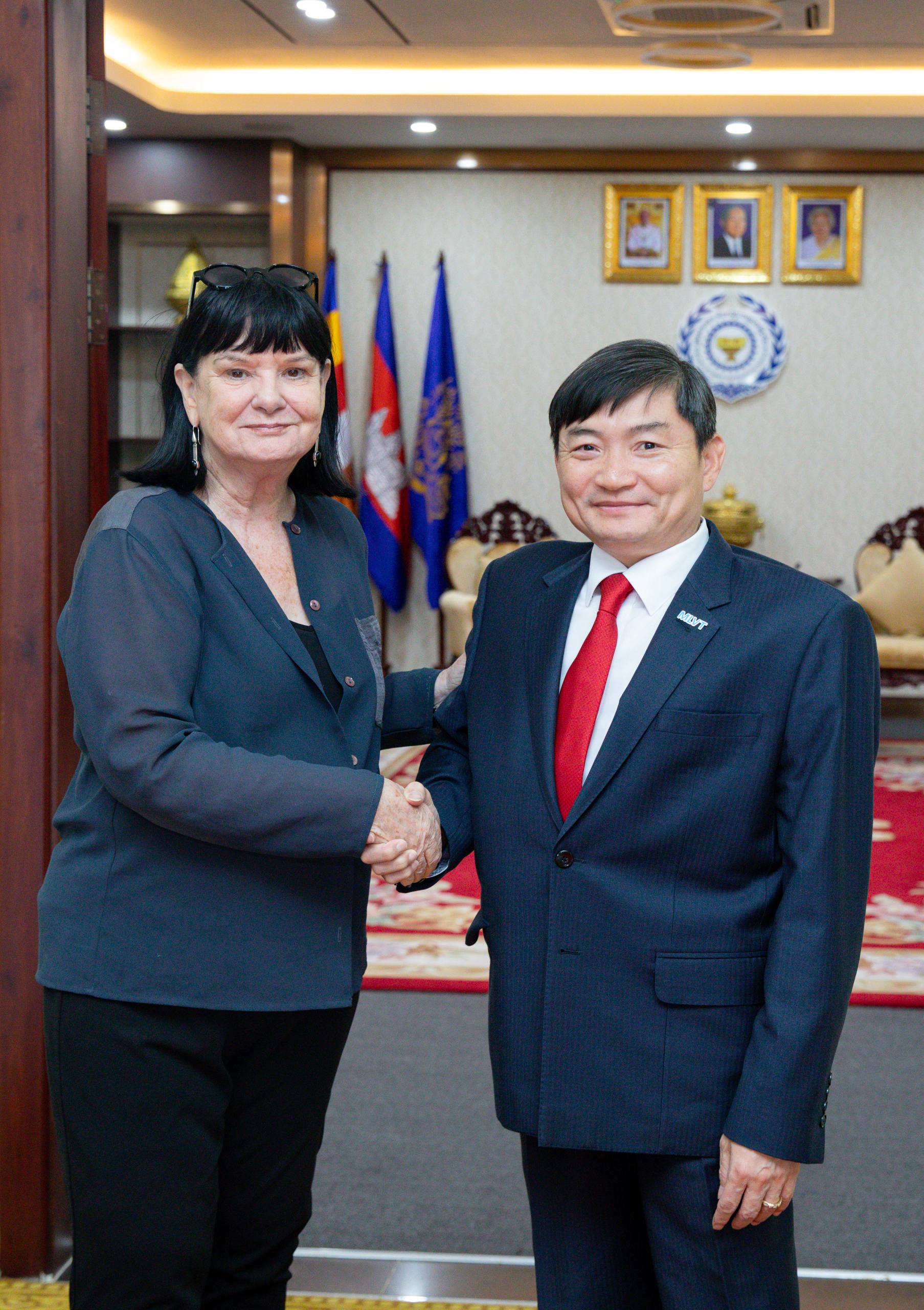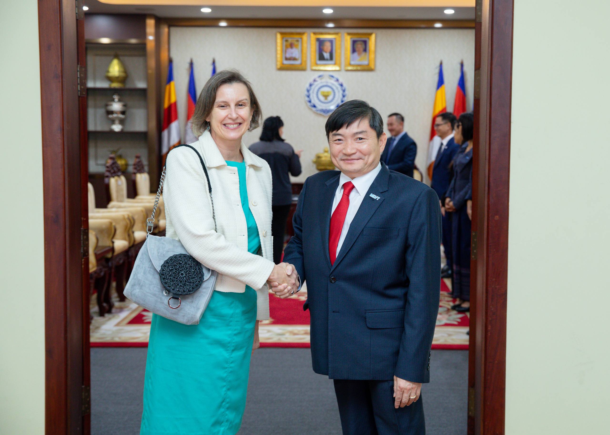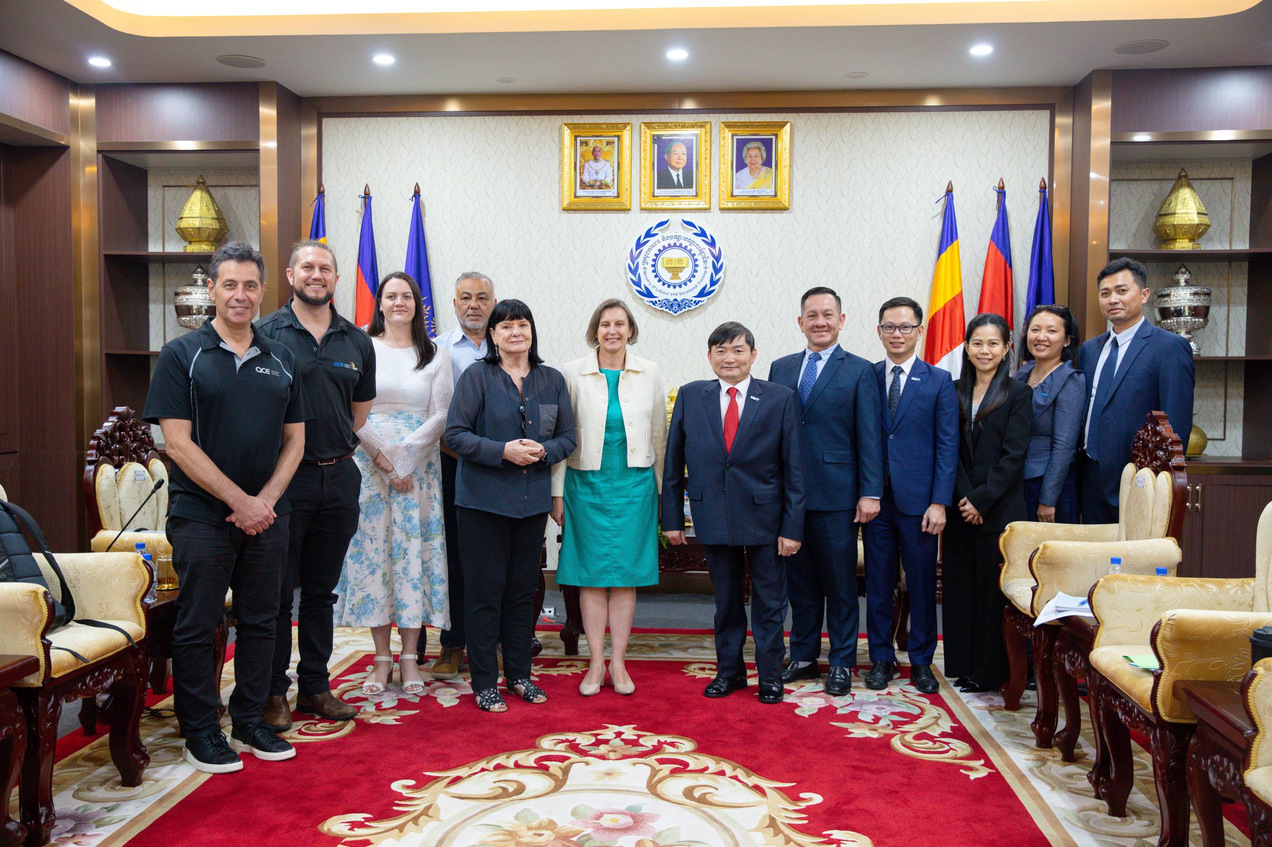 (ភ្នំពេញ)៖ បន្ទាប់ពីបានខិតខំរួមគ្នាសម្រេចបាននូវការដាក់ឱ្យដំណើរការជាផ្លូវការនូវមជ្ឈមណ្ឌលឧត្តមភាពយានយន្តកម្ពុជា (ACE Cambodia) ជាលើកដំបូង ដែលជាផ្លែផ្កានៃកិច្ចសហប្រតិបត្តិការកម្ពុជា-អូស្ត្រាលីលើការអភិវឌ្ឍជំនាញនៅកម្ពុជាកាលពីម្សិលមិញរួចមក, នារសៀលថ្ងៃអង្គារ ទី១៧ ខែមីនា ឆ្នាំ២០២៦ នេះ ឯកឧត្តម ហេង សួរ រដ្ឋមន្ត្រីក្រសួងការងារ និងបណ្ដុះបណ្ដាលវិជ្ជាជីវៈ បានទទួលជួបសម្ដែងការគួរសម និងពិភាក្សាការងារជាមួយ លោកស្រី ប្រីជែត ខូលៀរ (Bridget Collier) ភារធារីស្ថានទូតអូស្ត្រាលីប្រចាំកម្ពុជា និង លោកស្រី សារ៉ន ប៊ូរ៉ូ (Sharan Burrow) ប្រធានក្រុមប្រឹក្សានៃវិទ្យាស្ថាន Bendigo Kangan (BKI) នៅទីស្តីការក្រសួង ដើម្បីពិភាក្សាផ្លាស់ប្តូរយោបល់ក្នុងការស្វែងរកឱកាសពង្រីកកិច្ចសហប្រតិបត្តិការថ្មីៗបន្ថែមទៀត ឆ្លើយតបទៅនឹងតម្រូវការទីផ្សារការងារ ដែលវិស័យឧស្សាហកម្មនៅកម្ពុជាកំពុងមានតម្រូវការខ្ពស់។