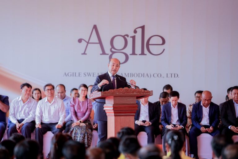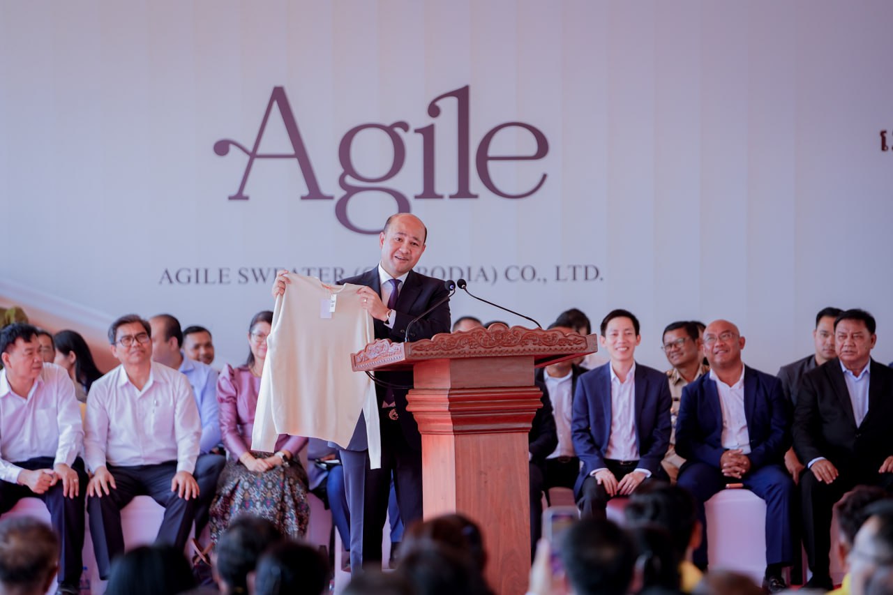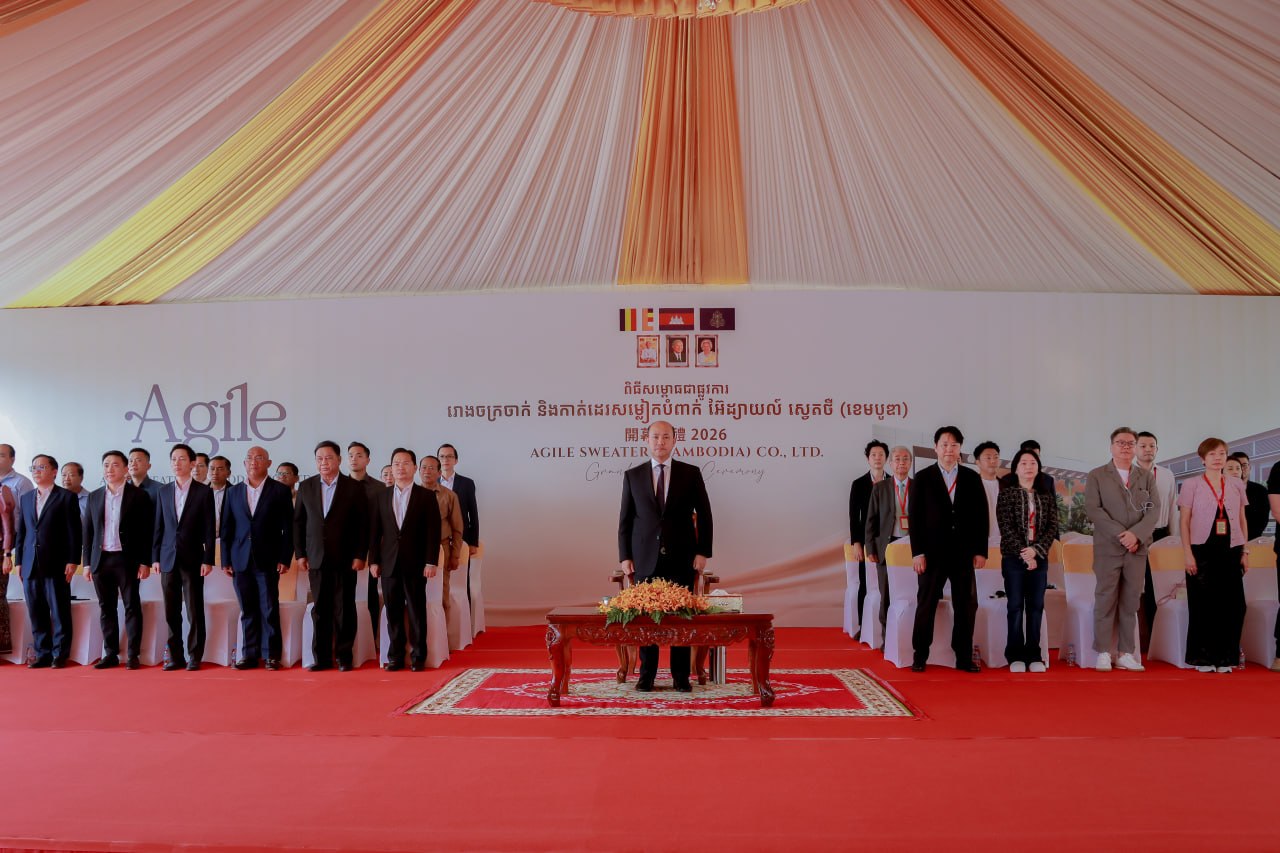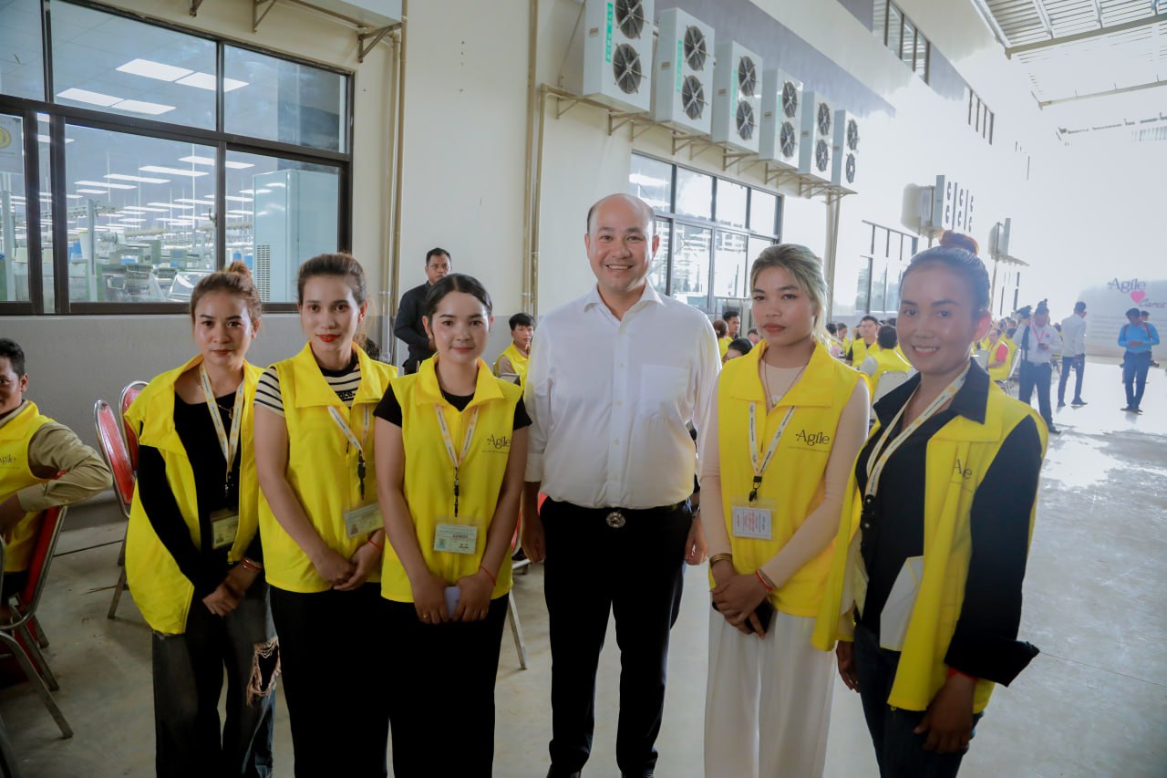(កំពង់ស្ពឺ)៖ នាព្រឹកថ្ងៃទី១៨ ខែមីនា ឆ្នាំ២០២៦នេះ ឯកឧត្តម ហ៊ុន ម៉ានី ឧបនាយករដ្ឋមន្ដ្រី រដ្ឋមន្ដ្រីក្រសួងមុខងារសាធារណៈ និងជាប្រធានក្រុមការងារគណបក្សចុះមូលដ្ឋានខេត្តកំពង់ស្ពឺ បានអញ្ជើញជាអធិបតីក្នុងពិធីសម្ពោធជាផ្លូវការរោងចក្រចាក់ និងកាត់ដេរសម្លៀកបំពាក់អ៊ែដ្យាយល៍ ស្វេតថឺ (ខេមបូឌា) Agile Sweater (Cambodia) នៅភូមិបុរីកម្មករ សង្កាត់ច្បារមន ក្រុងច្បារមន ខេត្តកំពង់ស្ពឺ។