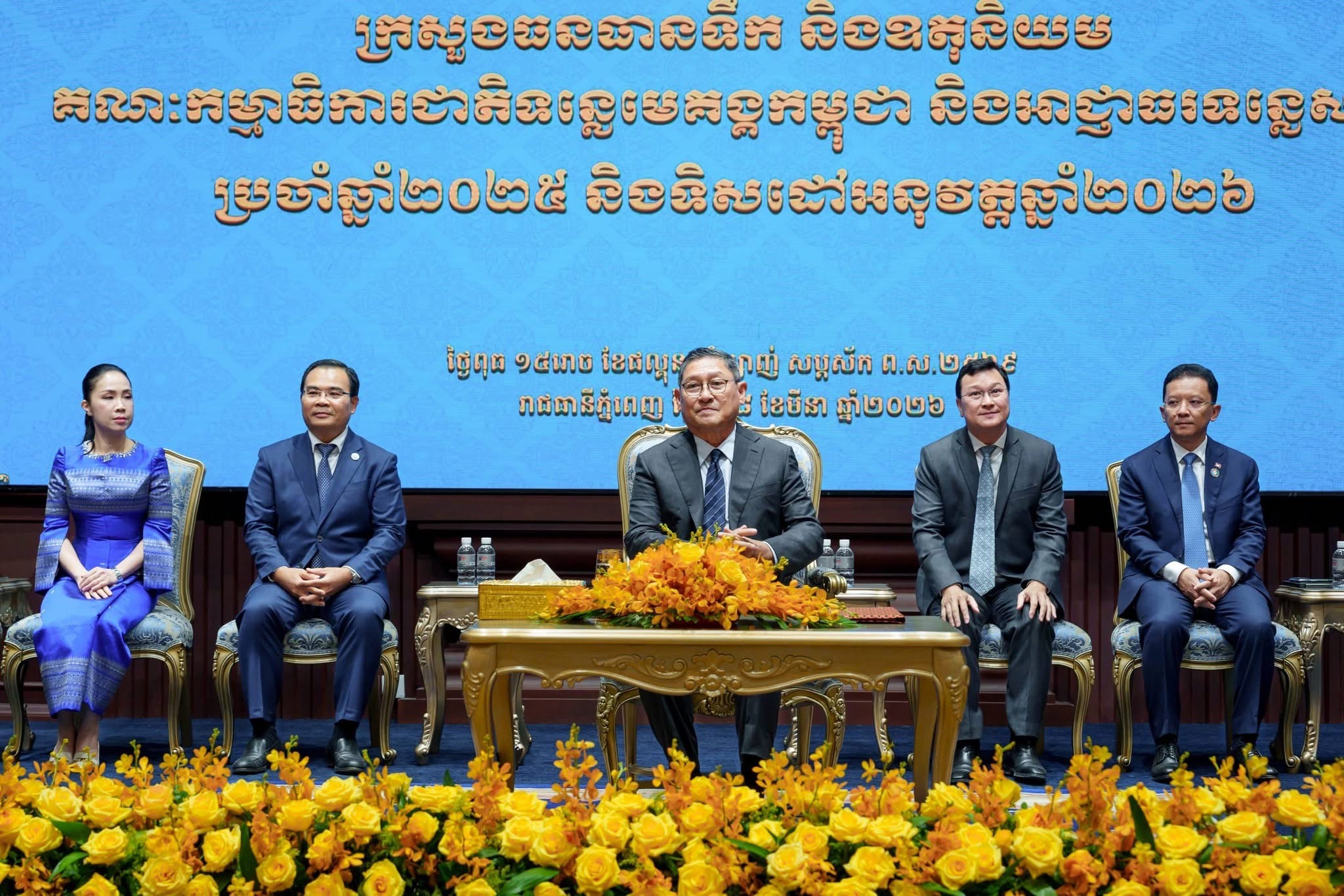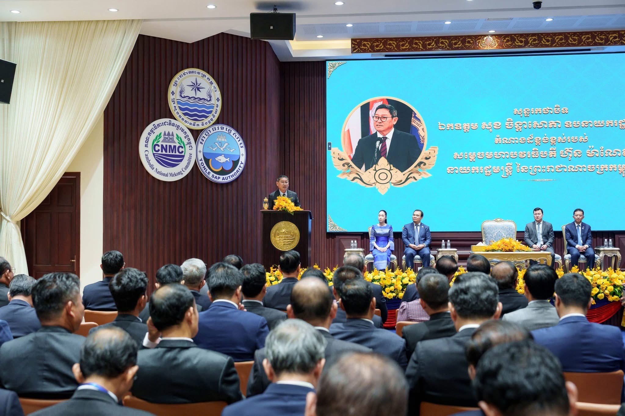 នារសៀលថ្ងៃពុធ ១៥រោច ខែផល្គុន ឆ្នាំម្សាញ់ សប្តស័ក ពុទ្ធសករាជ ២៥៦៩ ត្រូវនឹងថ្ងៃទី១៨ ខែមីនា ឆ្នាំ២០២៦ នៅទីស្តីការក្រសួងធនធានទឹក និងឧតុនិយម ឯកឧត្តម សុខ ចិន្តាសោភា ឧបនាយករដ្ឋមន្ត្រី តំណាងដ៏ខ្ពង់ខ្ពស់ សម្តេចមហាបវរធិបតី ហ៊ុន ម៉ាណែត នាយករដ្ឋមន្ត្រីនៃព្រះរាជាណាចក្រកម្ពុជា បានអញ្ជើញជាអធិបតីក្នុងពិធីបិទសន្និបាតបូកសរុបលទ្ធផលការងារឆ្នាំ២០២៥ និងទិសដៅអនុវត្តឆ្នាំ២០២៦ របស់ក្រសួងធនធានទឹក និងឧតុនិយម គណៈកម្មាធិការជាតិទន្លេមេគង្គកម្ពុជា និងអាជ្ញាធរទន្លេសាប។