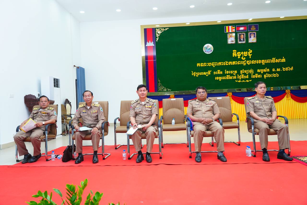 (ពោធិ៍សាត់)៖ ក្នុងឱកាសដឹកនាំកិច្ចប្រជុំគណៈបញ្ជាការឯកភាពរដ្ឋបាលខេត្ត នាព្រឹកថ្ងៃទី១៩ ខែមីនា ឆ្នាំ២០២៦នេះ ឯកឧត្តម ខូយ រីដា អភិបាលនៃគណៈអភិបាលខេត្តពោធិ៍សាត់ បានដាក់ចេញនូវសេចក្តីណែនាំដ៏មានសារៈសំខាន់មួយ ដល់រដ្ឋបាលក្រុង-ស្រុកទាំង៧ ត្រូវជ្រើសរើសឃុំ-សង្កាត់ណាមួយក្នុងដែនសមត្ថកិច្ចរបស់ខ្លួន ដើម្បីត្រៀមលក្ខណៈប្រកួតប្រជែងជា «ឃុំ-សង្កាត់គំរូ»