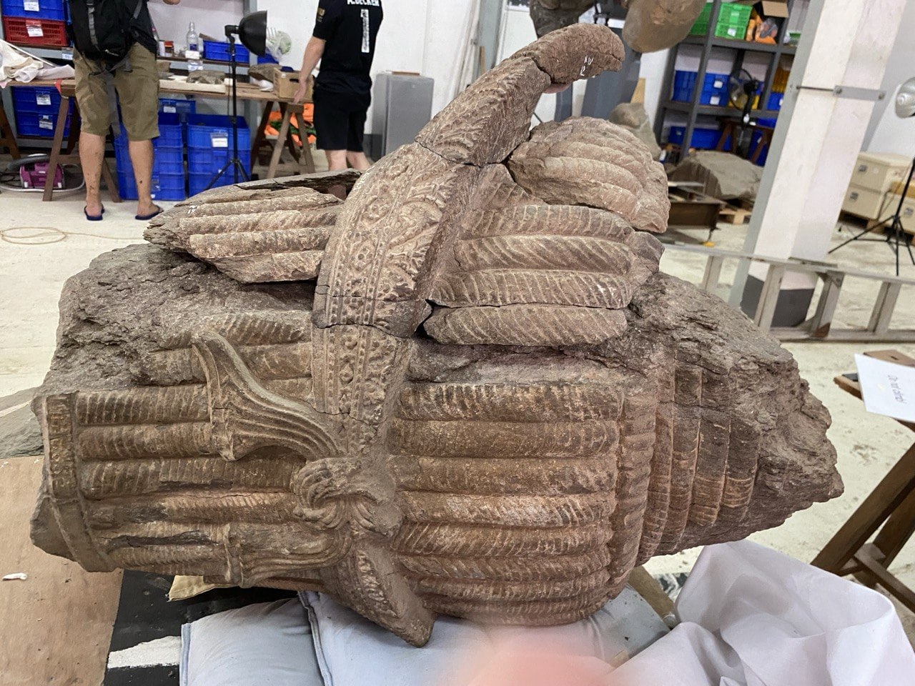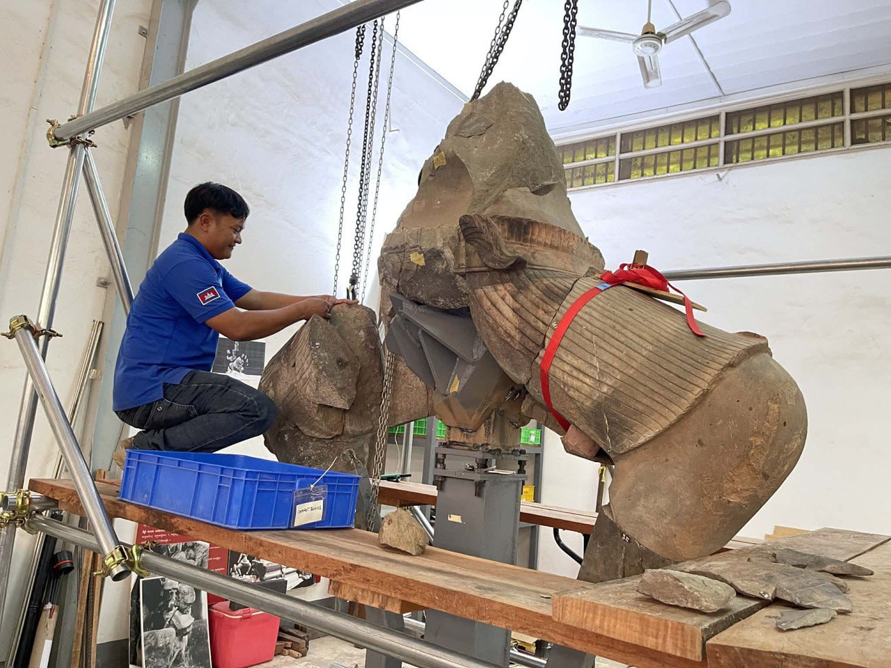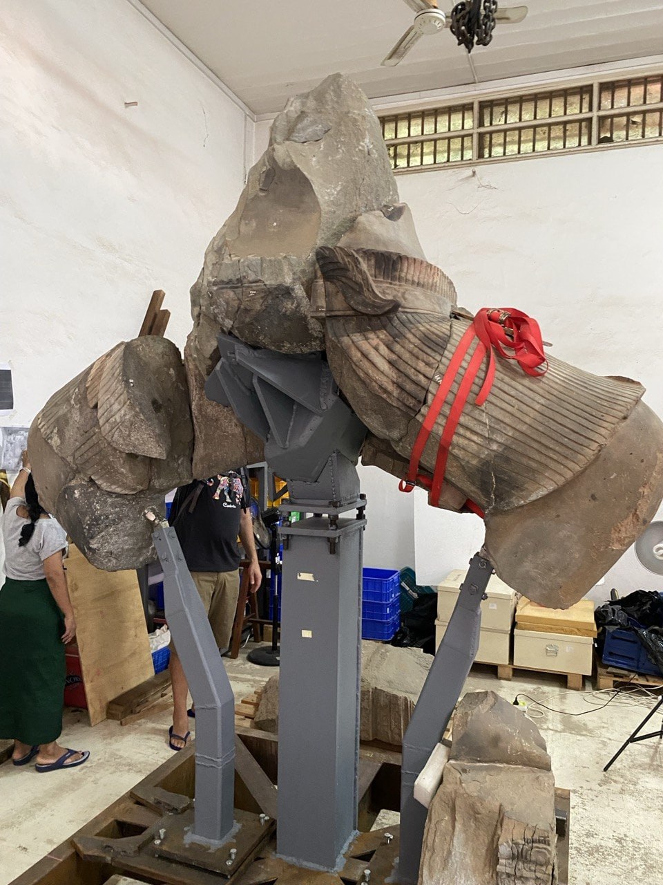 ប្រតិមាព្រះឥសូរដ៏ធំមួយនេះ ត្រូវប្រើពេលជួសជុលអស់រយៈពេលជាង ៥ឆ្នាំ ចាប់ពីឆ្នាំ២០២០ ដល់ឆ្នាំ២០២៦ ក្រោមកិច្ចសហការរវាងអាជ្ញាធរជាតិព្រះវិហារ និងសាលាបារាំងចុងបូព៌ា និងមានការគាំទ្រដោយសម្ព័ន្ធភាពបេតិកភណ្ឌ។ នេះជាវត្ថុបុរាណដែលមានកម្ពស់ ៥ម៉ែត្រ មានព្រះភក្ត្រ៥ ព្រះហស្ថ១០ និងទម្ងន់ប្រមាណ ៧តោន។ ប្រតិមានេះបានរលំបាក់ក្នុងសតវត្សទី១៤ មានសភាពបែកបាក់ចំនួនជាង ១ម៉ឺនបំណែក និងត្រូវបានចោរចូលលួចក្នុងសម័យសង្គ្រាមស៊ីវិល៕