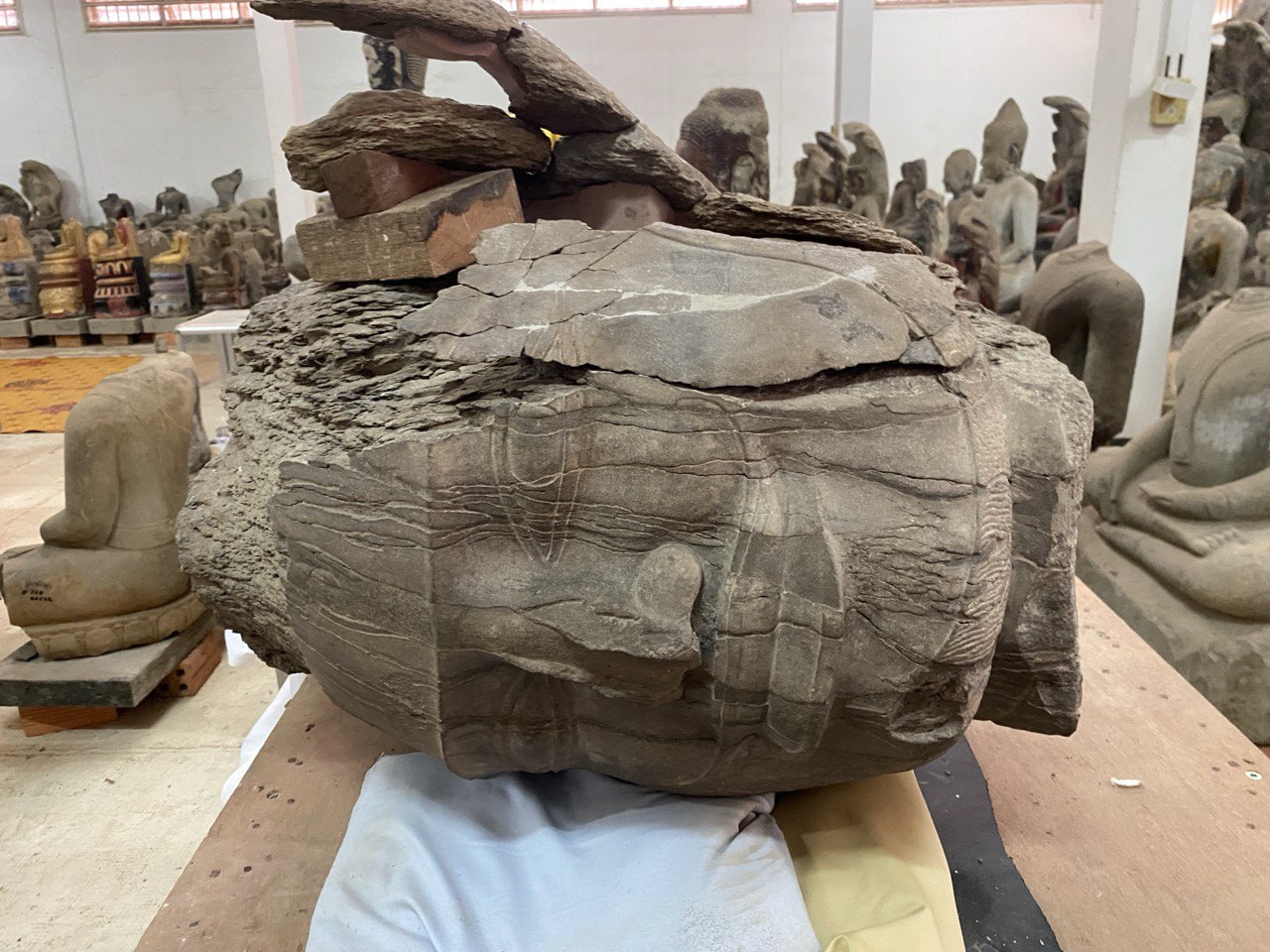 សូមជម្រាបថា ប្រតិមាព្រះឥសូរដ៏ធំជាងគេមួយ ក្នុងប្រទេសកម្ពុជាដែលមានកម្ពស់៥ម៉ែត្រ និងទម្ងន់ប្រមាណ ៧តោននិងមានការបែកបាក់ដល់ទៅជាង ១ម៉ឺនបំណែកមកពីកោះកេរ្ដិ៍ចាប់កំណើតឡើងវិញ ក្រោយជួសជុលរួចរាល់។