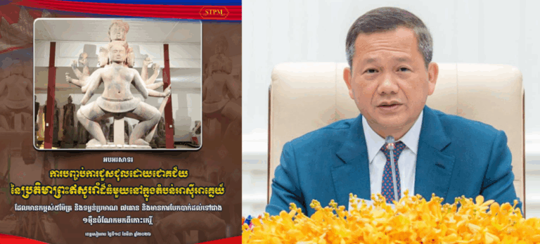 សម្តេចធិបតី ហ៊ុន ម៉ាណែត នាយករដ្ឋមន្ត្រីកម្ពុជា នៅថ្ងៃទី២០ ខែមីនា ឆ្នាំ២០២៦ បានថ្លែងសារ អបអរសាទរ ការបញ្ចប់ការជួសជុលដោយជោគជ័យនៃប្រតិមាព្រះឥសូររាំដ៏ធំមួយ នៅក្នុងតំបន់អាស៉ីអាគ្នេយ៍។