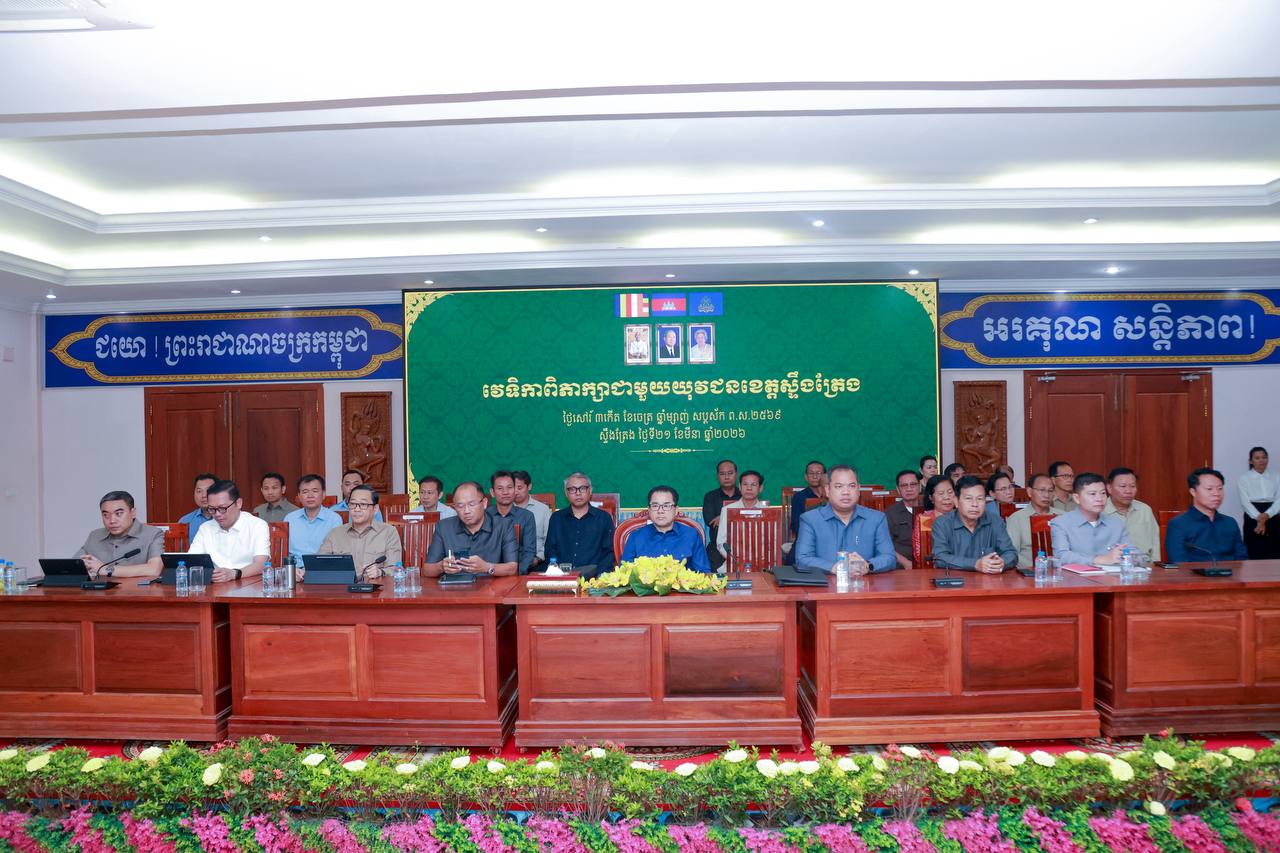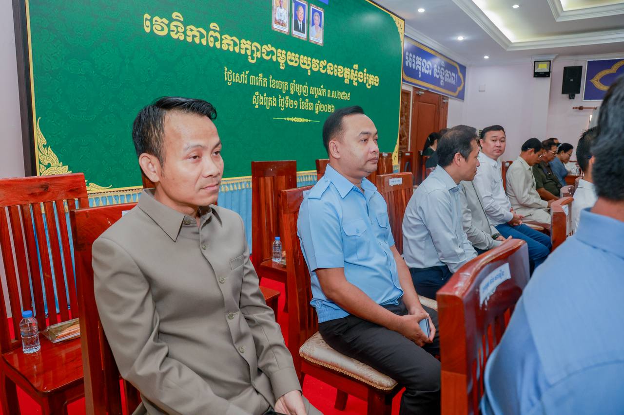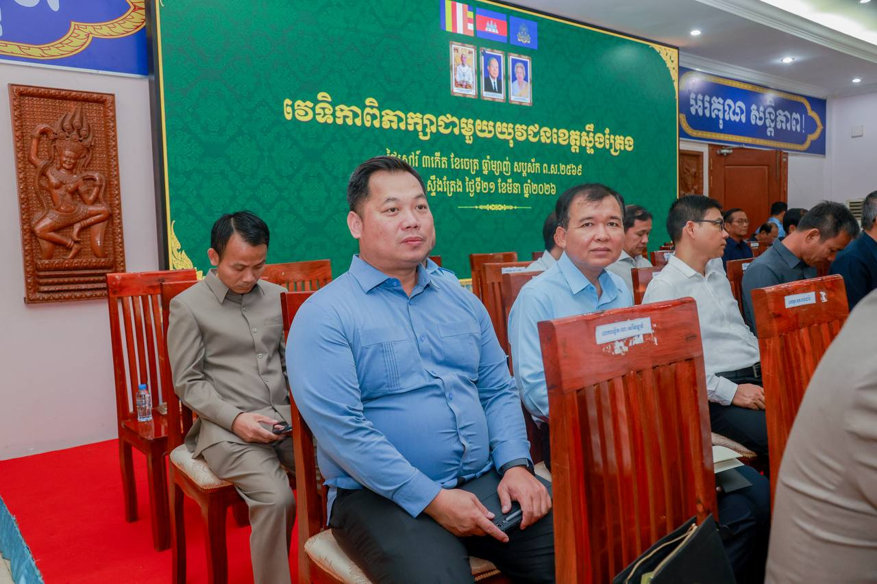 ក្រុងស្ទឹងត្រែង៖ នាព្រឹក ថ្ងៃទី២១ ខែមីនា ឆ្នាំ២០២៦ ឯកឧត្តមបណ្ឌិត ជ្រុន ថេរ៉ាវ៉ាត អនុប្រធានយុវជនគណបក្សថ្នាក់កណ្តាល និងជាប្រធានគណៈប្រចាំការនៃគណៈអចិន្ត្រៃយ៍យុវជនគណបក្សថ្នាក់កណ្ដាល តំណាងដ៏ខ្ពង់ខ្ពស់សម្តេចមហាបវរធិបតី ហ៊ុន ម៉ាណែត អនុប្រធានគណបក្សប្រជាជនកម្ពុជា និងជាប្រធានយុវជនគណបក្សថ្នាក់កណ្តាល អញ្ជើញជាអធិបតីភាពក្នុងវេទិកា «ពិភាក្សាជាមួយយុវជនខេត្តស្ទឹងត្រែង » ដោយមានការអញ្ជើញចូលរួមពីឯកឧត្តម សរ សុពុត្រា ប្រធានគណៈកម្មាធិការគណបក្សខេត្តស្ទឹងត្រែង និងជាប្រធានយុវជនគណបក្សខេត្តស្ទឹងត្រែង, ឯកឧត្ដមជាអនុប្រធានគណៈប្រចាំការ យ.គ.ក., ឯកឧត្តមជាប្រធានផ្នែក និងជាតំណាងផ្នែកចំណុះ យ.គ.ក. , ព្រមទាំង ឯកឧត្ដម លោកជំទាវ លោក លោកស្រី ជាថ្នាក់ដឹកនាំគ្រប់ថ្នាក់ គ្រប់ផ្នែកក្នុងខេត្តស្ទឹងត្រែង សរុបអ្នកចូលរួមចំនួន ៤០០ រូប។