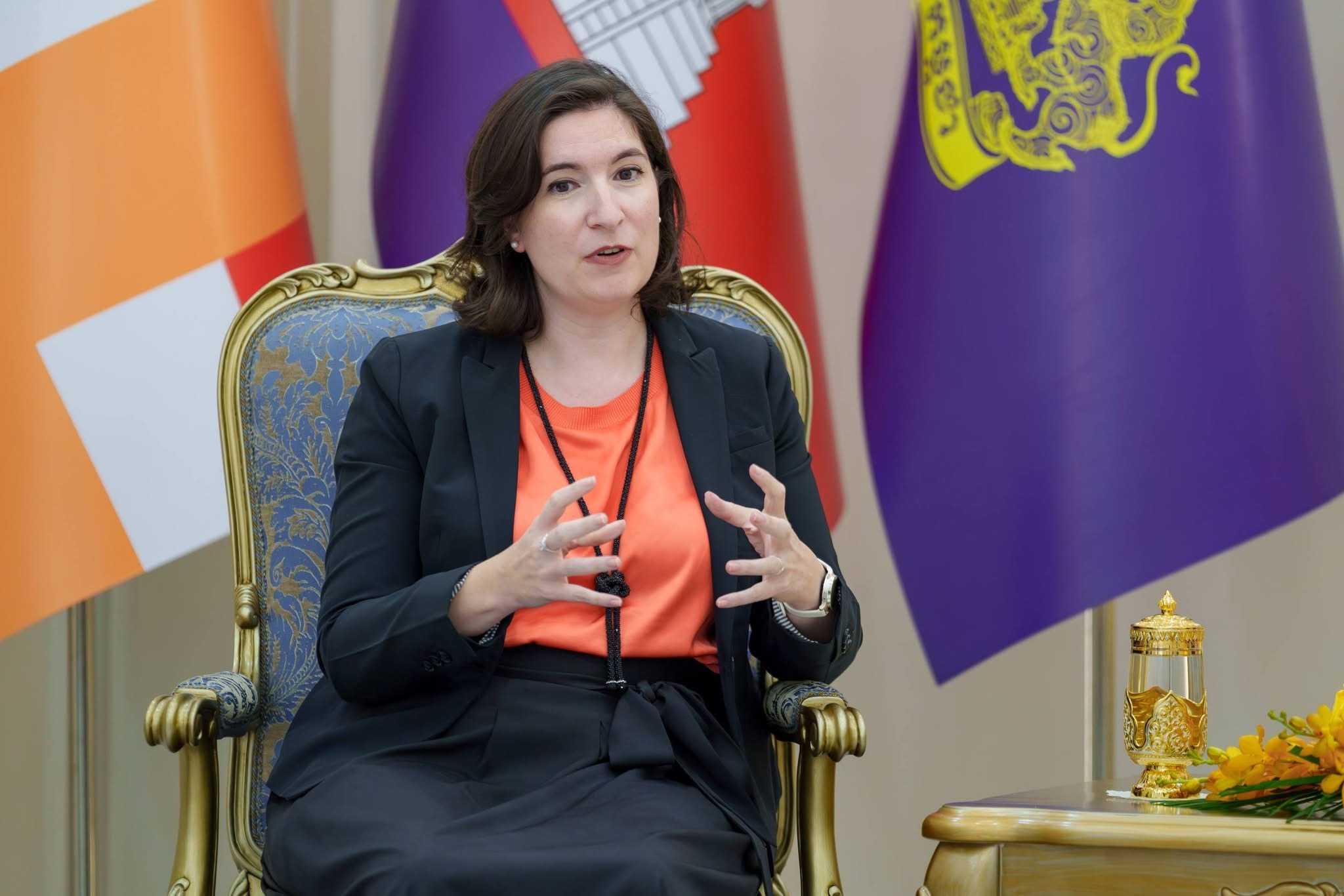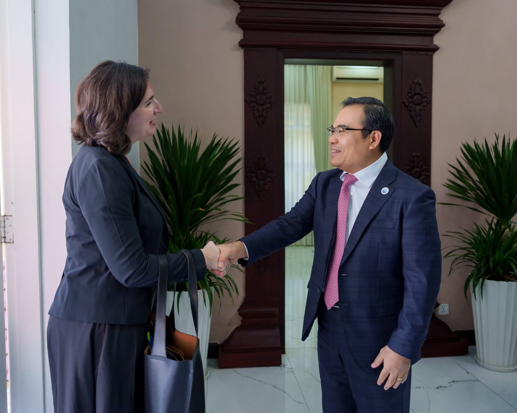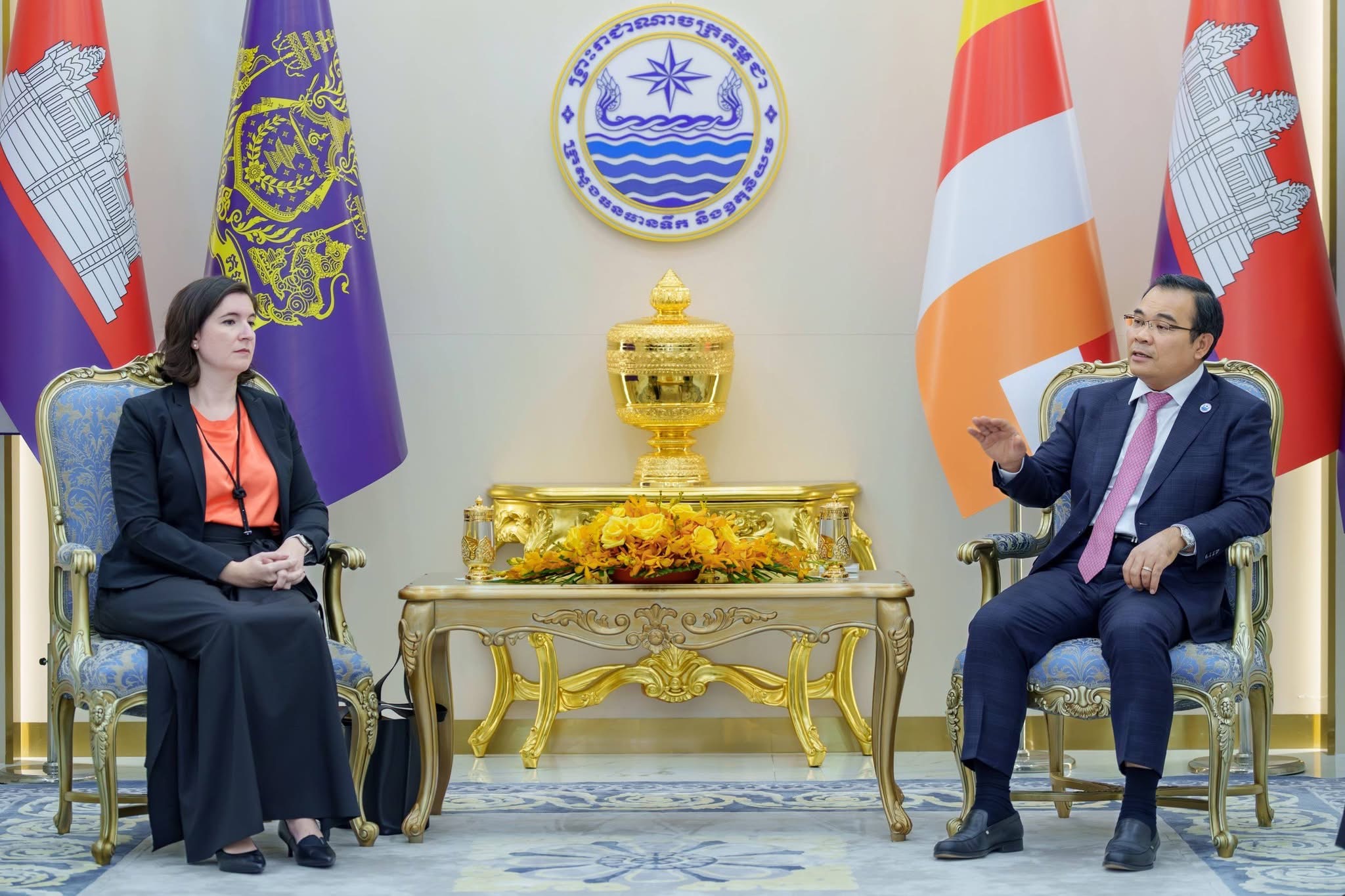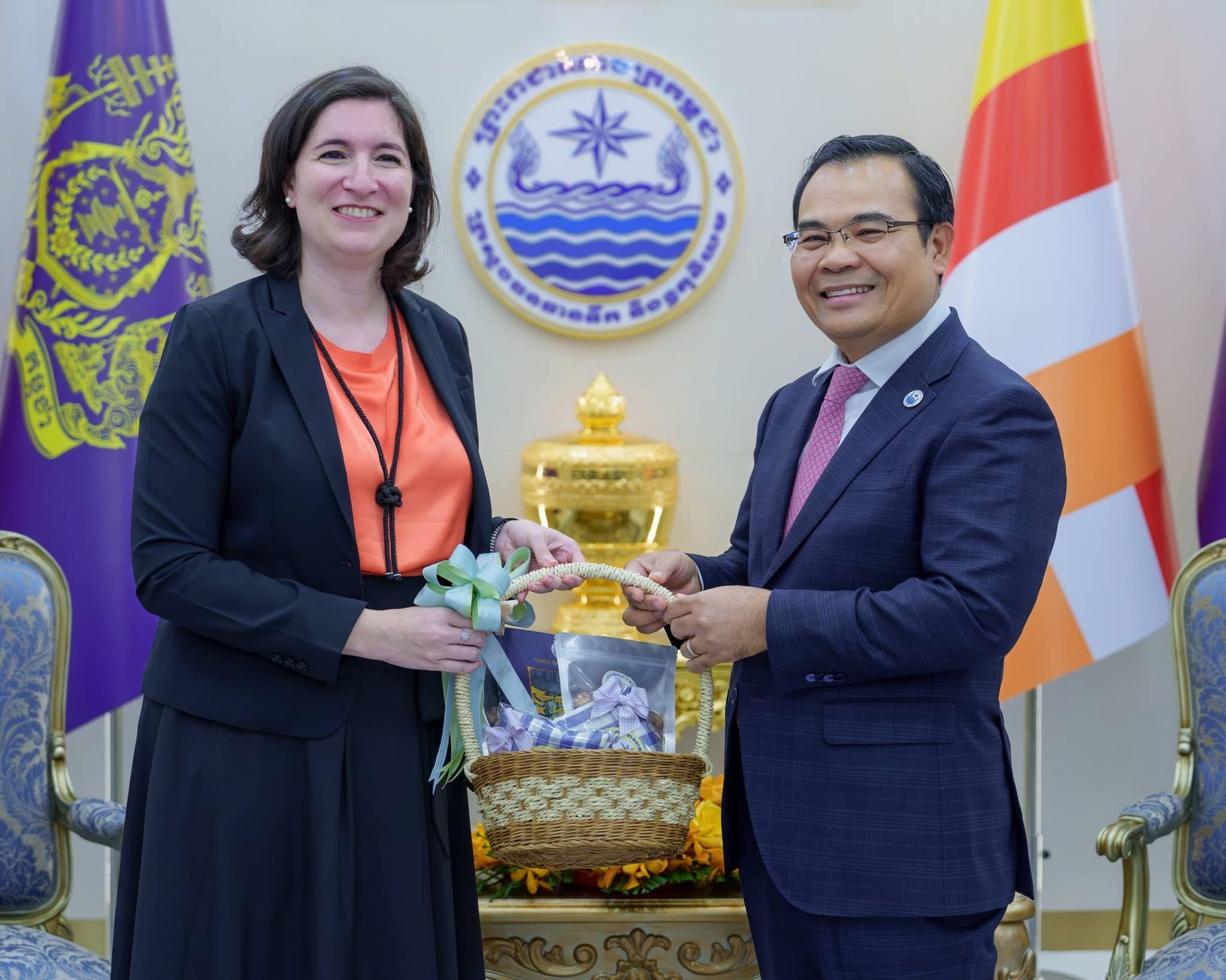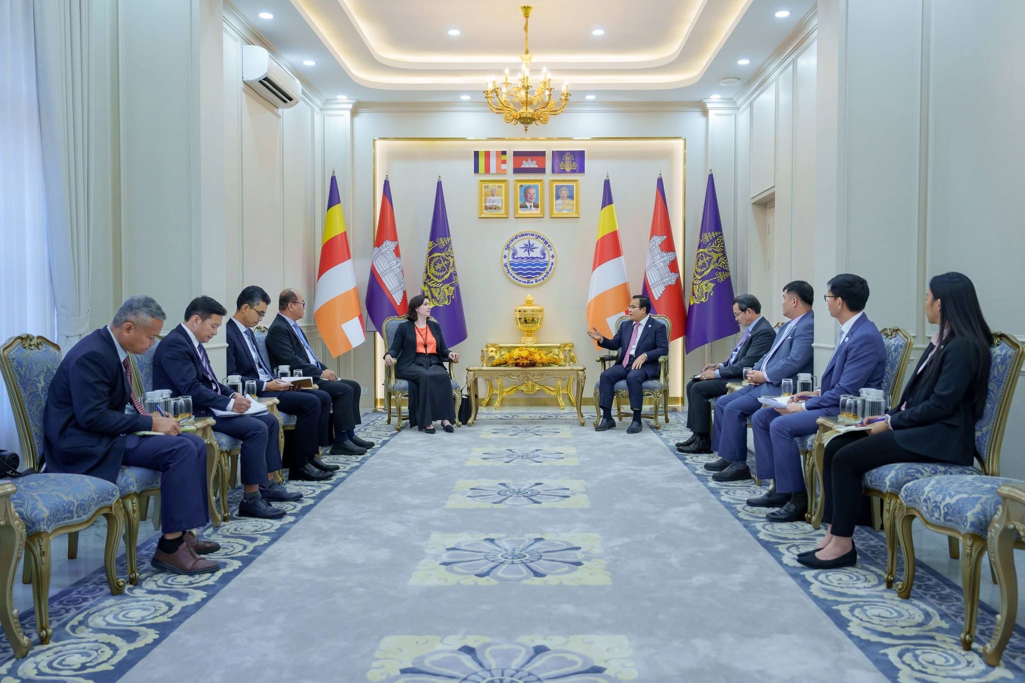 នារសៀលថ្ងៃចន្ទ ៥កើត ខែចេត្រ ឆ្នាំម្សាញ់ សប្ដស័ក ពុទ្ធសករាជ ២៥៦៩ ត្រូវនឹងថ្ងៃទី២៣ ខែមីនា ឆ្នាំ២០២៦នេះ ឯកឧត្តម ថោ ជេដ្ឋា រដ្ឋមន្ត្រីក្រសួងធនធានទឹក និងឧតុនិយម បានអនុញ្ញាតឱ្យលោកស្រី Tania Meyer ប្រធានគ្រប់គ្រងធនាគារពិភពលោកប្រចាំប្រទេសកម្ពុជា តំបន់អាស៊ីបូព៌ា និងប៉ាស៊ីហ្វិក និងសហការី ចូលជួបដើម្បីពិភាក្សាការងារស្តីពីកតិកាសញ្ញាសន្ដិសុខទឹកកម្ពុជា និងទិសដៅអនុវត្តបន្ត នៅទីស្ដីការក្រសួងធនធានទឹក និងឧតុនិយម។