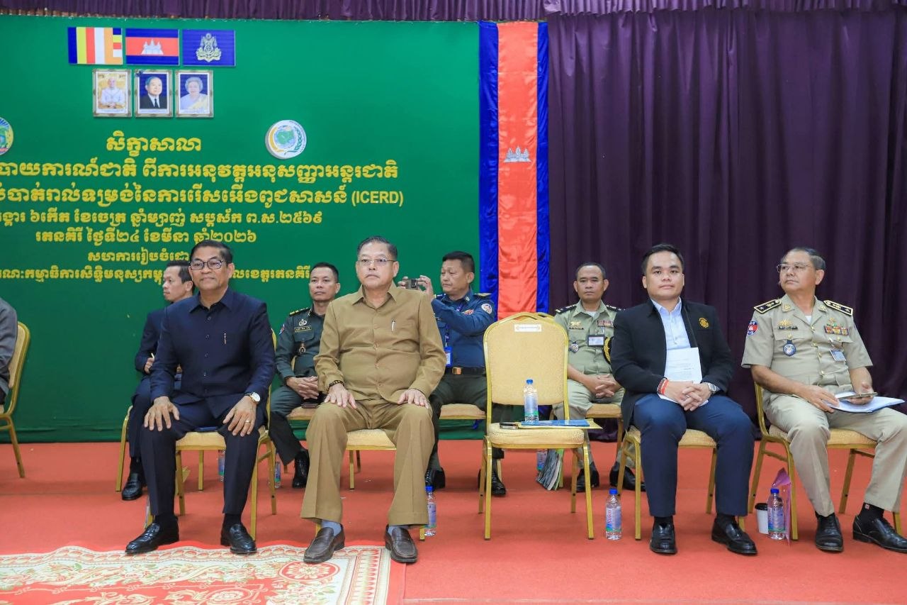 សិក្ខាសាលានេះ ត្រូវបានគណៈកម្មាធិការសិទ្ធិមនុស្សកម្ពុជា សហការជាមួយរដ្ឋបាលខេត្តរតនគិរី នៅព្រឹកថ្ងៃទី២៤ ខែមីនា ឆ្នាំ២០២៦ ក្រោមអធិបតីភាព ឯកឧត្តម កែវ រ៉េមី ទេសរដ្ឋមន្ត្រី និងជាប្រធានគណៈកម្មាធិការសិទ្ធិមនុស្សកម្ពុជា និងមានការចូលរួមពីសំណាក់ ឯកឧត្តម ញ៉ែម សំអឿន អភិបាលខេត្តរតនគិរី ព្រមទាំងថ្នាក់ដឹកនាំខេត្ត ក្រុង ស្រុក មន្ទីរ-អង្គភាពជុំវិញខេត្ត កងកម្លាំងទាំង៣ អយ្យការ ពន្ធនាគារ មន្ត្រីរាជការ អង្គការសង្គមស៊ីវិល ស្ថាប័នពាក់ព័ន្ធ និងជាពិសេស អ្នកនាំពាក្យតាមអង្គភាពនីមួយៗ នៃរដ្ឋបាលខេត្តរតនគិរី។