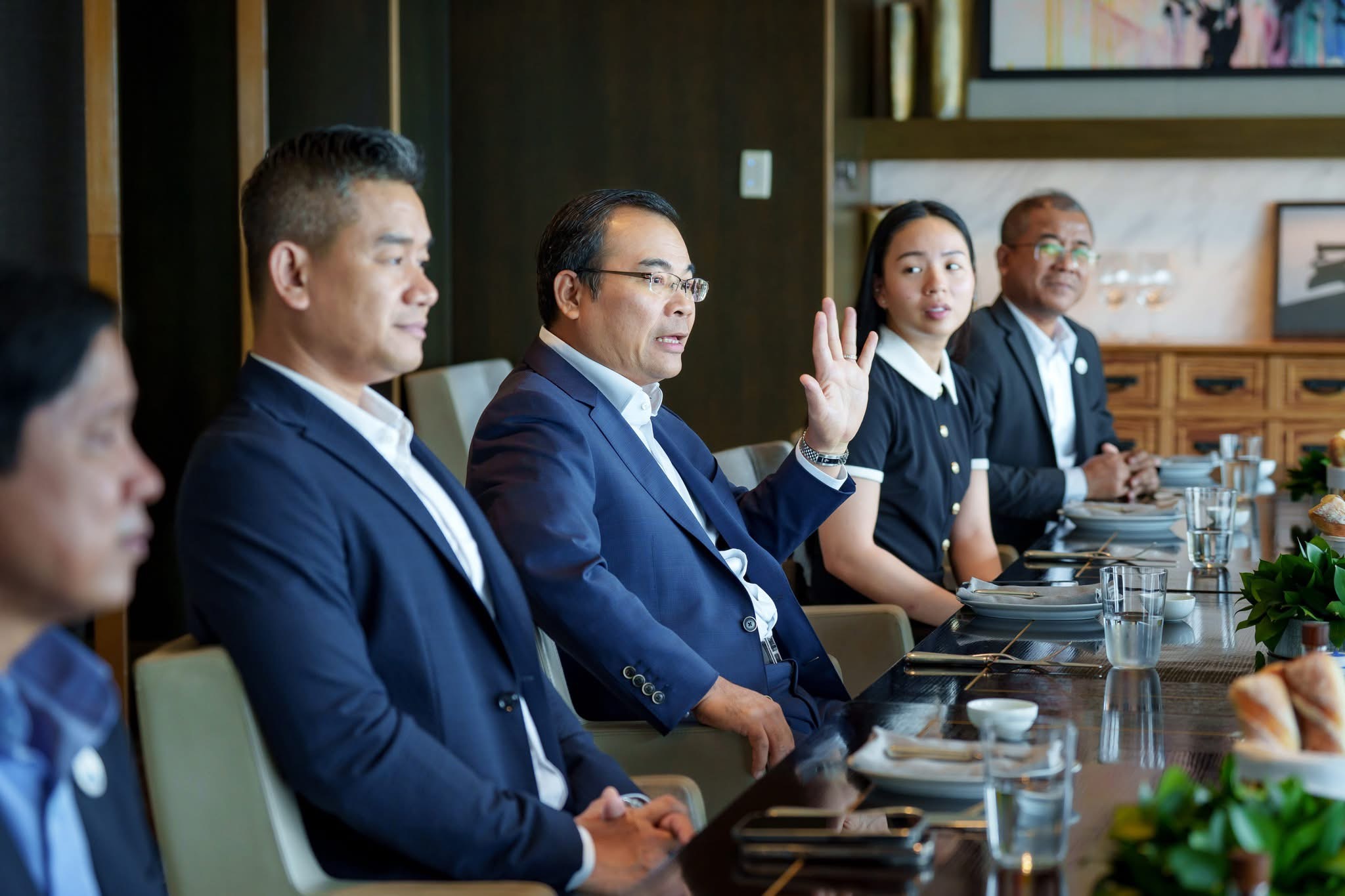 សូមជម្រាបថា កិច្ចប្រជុំអាហារថ្ងៃត្រង់នាពេលនេះ គឺក្នុងគោលបំណង ដើម្បីពង្រឹង និងពង្រីកកិច្ចសហប្រតិបត្តិការលើវិស័យធនធានទឹក និងឧតុនិយម ការផ្លាស់ប្ដូរទស្សនៈនិងបទពិសោធន៍ ព្រមទាំងស្វែងរកឱកាសគាំទ្រលើផែនការ និងអាទិភាពការងារដែលក្រសួងធនធានទឹក និងឧតុនិយមបានដាក់ចេញ៕