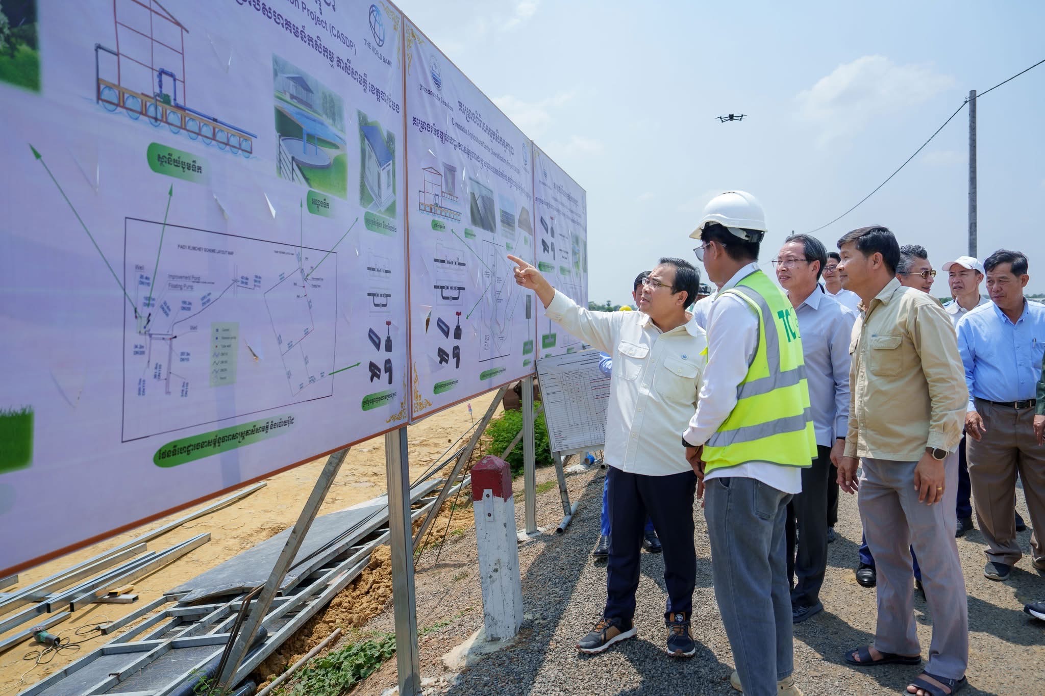 នាព្រឹកថ្ងៃព្រហស្បតិ៍ ៨កើត ខែចេត្រ ឆ្នាំម្សាញ់ សប្ដស័ក ពុទ្ធសករាជ ២៥៦៩ ត្រូវនឹងថ្ងៃទី២៦ ខែមីនា ឆ្នាំ២០២៦នេះ ឯកឧត្តម ថោ ជេដ្ឋា រដ្ឋមន្ត្រីក្រសួងធនធានទឹក និងឧតុនិយម បានអញ្ជើញចុះពិនិត្យជាក់ស្តែងវឌ្ឍនភាពការងារនៃគម្រោងអភិវឌ្ឍន៍ហេដ្ឋារចនាសម្ព័ន្ធធារាសាស្រ្តសហគមន៍កសិកម្មតាសីសាមគ្គី ស្ថិតក្នុងភូមិសាស្ត្រឃុំតាម៉ឺន ស្រុកថ្មគោល ខេត្តបាត់ដំបង ដែលទទួលបានហិរញ្ញប្បទានពីធនាគារពិភពលោក (WB) តាមរយៈគម្រោងពិពិធកម្មកសិកម្មកម្ពុជា។