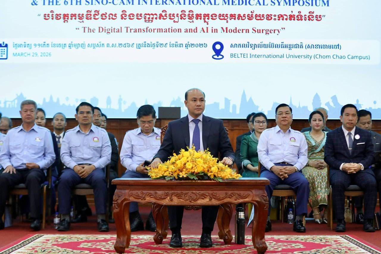 ឯកឧត្តមឧបនាយករដ្ឋមន្ត្រី ហ៊ុន ម៉ានី រដ្ឋមន្ត្រីក្រសួងមុខងារសាធារណៈ និងជាប្រធានសហភាពសហព័ន្ធយុវជនកម្ពុជា នៅព្រឹកថ្ងៃទី២៩ ខែមីនា ឆ្នាំ២០២៦នេះ បានអញ្ជើញជាអធិបតី បើកសន្និសីទវេជ្ជសាស្ត្រអន្តរជាតិលើកទី១១ និងសន្និសីទ វេជ្ជសាស្ត្រអន្តរជាតិកម្ពុជា-ចិនលើកទី៦ ក្រោមប្រធានបទ «បរិវត្តកម្មឌីជីថល និងបញ្ញាសិប្បនិម្មិតក្នុងយុគសម័យវះកាត់បែបទំនើប»។