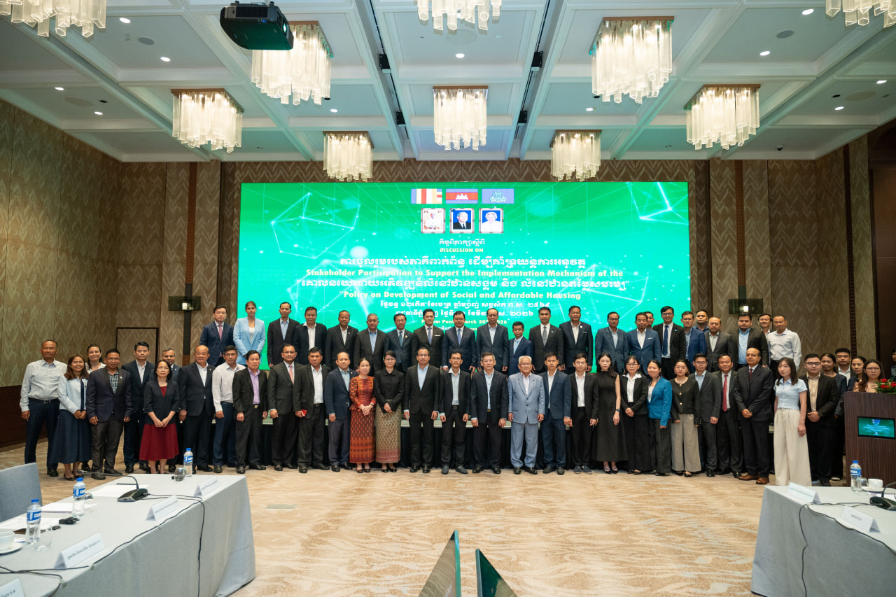 (ភ្នំពេញ)៖ ក្រសួងសេដ្ឋកិច្ច និងហិរញ្ញវត្ថុ សហការជាមួយក្រសួងរៀបចំដែនដី នគរូបនីយកម្ម និងសំណង់ នៅថ្ងៃទី៣០ ខែមីនា ឆ្នាំ២០២៦ បានរៀបចំ «កិច្ចពិភាក្សាស្តីពី ការចូលរួមរបស់ភាគីពាក់ព័ន្ធ ដើម្បីគាំទ្រការអនុវត្តគោលនយោបាយអភិវឌ្ឍន៍លំនៅឋានសង្គម និង លំនៅឋានតម្លៃសមរម្យ» ក្រោមអធិបតីភាពឯកឧត្តម រស់ សីលវ៉ា រដ្ឋលេខាធិការនៃក្រសួងសេដ្ឋកិច្ច និងហិរញ្ញវត្ថុ ជាតំណាងរបស់ ឯកឧត្តមអគ្គបណ្ឌិតសភាចារ្យ អូន ព័ន្ធមុនីរ័ត្ន ឧបនាយករដ្ឋមន្រ្តី រដ្ឋមន្រ្តីក្រសួងសេដ្ឋកិច្ច និងហិរញ្ញវត្ថុ និងឯកឧត្តម ផារ៉ា មង្គល រដ្ឋលេខាធិការ នៃក្រសួងរៀបចំដែនដី នគរូបនីយកម្ម និង សំណង់ជាតំណាងរបស់ឯកឧត្តម សាយ សំអាល់ ឧបនាយករដ្ឋមន្ដ្រី រដ្ឋមន្ដ្រីនៃក្រសួងរៀបចំដែនដី នគរូបនីយកម្ម និង សំណង់។