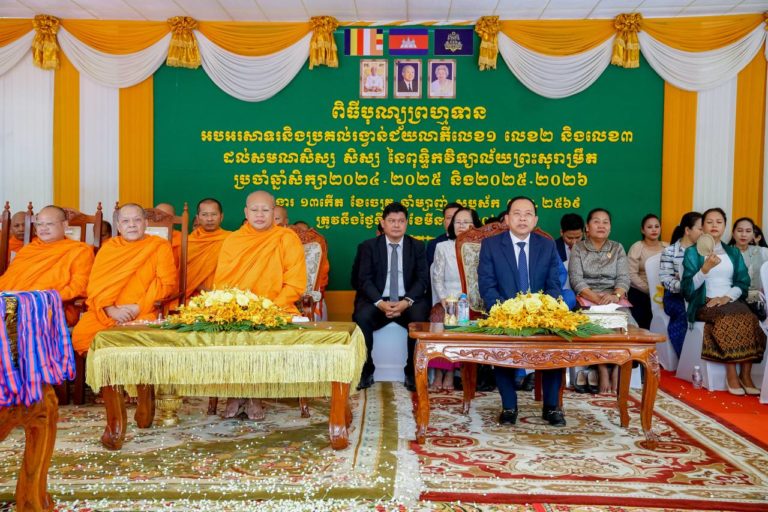 (រាជធានីភ្នំពេញ) នៅថ្ងៃទី៣១ ខែមីនា ឆ្នាំ២០២៦ ឯកឧត្តមបណ្ឌិត ចាយ បូរិន រដ្ឋមន្រ្តីក្រសួងធម្មការនិងសាសនា អញ្ជើញជាអធិបតី អបអរសាទរ កម្មវិធីបុណ្យព្រហ្មទាន និងប្រគល់រង្វាន់ជ័យលាភី ប្រគេនសមណសិស្ស-សិស្ស នៃពុទ្ធិកវិទ្យាល័យព្រះសុរាម្រឹត ប្រចាំឆ្នាំ២០២៤-២០២៥-២០២៦ ។