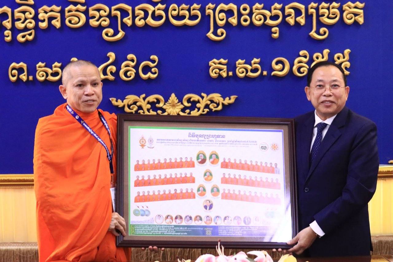 ទន្ទឹមនេះឯកឧត្តមបណ្ឌិតរដ្ឋមន្រ្តី បានបញ្ជាក់ថា គ្រឹះស្ថានអប់រំ មិនថាផ្នែកពុទ្ធចក្រឬអាណាចក្រនោះទេ គឺជា ថ្នាលបណ្តុះធនធានបញ្ញាញាណ បណ្តុះមនសិការស្នេហាជាតិ និងបណ្តុះលក្ខណសម្បត្តិសមស្របដល់យុវសមណៈ និងយុវជនគ្រប់ៗជំនាន់ ឱ្យក្លាយជាសសរទ្រូង និងជាអ្នកបន្តវេនក្នុងការអភិវឌ្ឍព្រះពុទ្ធសាសនា និង ប្រទេសជាតិ ក្នុងយុគនៃការកសាងកំណើនសេដ្ឋកិច្ច ដែលពឹងផ្អែកលើចំណេះដឹង ឆ្លើយតបទៅនឹងសាសនភាវូបនីយកម្ម និងសកលភាវូបនីយកម្ម និងភាពចំបាច់របស់ព្រះពុទ្ធសាសនា និងទីផ្សារការងារសម្រាប់ស្ថាប័នរដ្ឋ និងឯកជន ស្របតាមគោលដៅអភិវឌ្ឍប្រកបដោយចីរភាព និងស្របតាមចក្ខុវិស័យកម្ពុជា ឆ្នាំ២០៥០។ ក្នុងន័យនេះ រាជរដ្ឋាភិបាល ជានិច្ចជាកាល តែងតែយកចិត្តទុកដាក់ឱ្យតម្លៃខ្ពស់ និងផ្តល់អាទិភាពដល់វិស័យអប់រំទាំងពុទ្ធចក្រ និង អាណាចក្រ ដែលដើរតួនាទីស្នូល ក្នុងការអភិវឌ្ឍធនធានមនុស្សដ៏មាន សក្តានុពល មានគុណភាព ផ្តល់ចំណេះដឹង សមត្ថភាព ជំនាញវិជ្ជាជីវៈ គំនិតនវានុវត្តន៍ និងការអប់រំអត្តចរិត ឱ្យក្លាយជាពលរដ្ឋល្អ ដែលជាមូលដ្ឋាន គ្រឹះនៃការអភិវឌ្ឍជាតិលើគ្រប់វិស័យ ព្រមទាំងលើកកម្ពស់ព្រះពុទ្ធសាសនា ដែលជាសាសនារបស់រដ្ឋ វប្បធម៌ អរិយធម៌ កិត្តិយស កិត្យានុភាព និង មោទកភាពជាតិ ។
