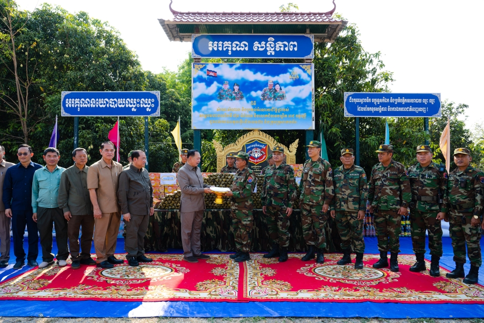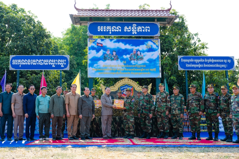ឆ្លៀតក្នុងឱកាសនោះដែរ លោករដ្ឋមន្ត្រី ក៏បាននាំយកនូវអំណោយដែលជាគ្រឿងឧបភោគបរិភោគ និងថវិកាដ៏ថ្លៃថ្លារបស់ សម្តេចមហាបវរធិបតី ហ៊ុន ម៉ាណែត និងលោកជំទាវបណ្ឌិត ជូនដល់កងពលតូចថ្មើរជើងលេខ៥២ រួមមាន៖ អង្ករ ៣តោន, មី ១០០កេស, ស្កសរ ២០០គ.ក្រ, ទឹកត្រី ៥០យួរ, ទឹកស៊ីអ៊ីវ ៥០យួរ, ប្រេងឆា ១៥០លីត្រ, ទឹកសុទ្ធ ៥០កេស, នំអន្សម ៥០០នំ និងធុងចម្រោះទឹក ៥ធុង ព្រមទាំងថវិកា ៣៥លានរៀល សម្រាប់ទិញសម្ភារតាមសំណូមពររបស់កងពលតូចលេខ ៥២ ត្រូវការចំាបាច់មានដូចជា៖ ស៊ីម៉ង់ត៍ ២០តោន, ដែក ៥ តោន, ខ្សាច់ ៥០គូប, ថ្ម ៥០គូប, អាគុយ១០០អំពែ ៥ធុង, ផ្ទាំងសូឡា ៥ផ្ទាំង និងស៊ីទែនទឹក ២០០០លីត្រ ៥ស៊ីទែន ស្មើនឹងថវិកាសរុប ៥០លានរៀល៕