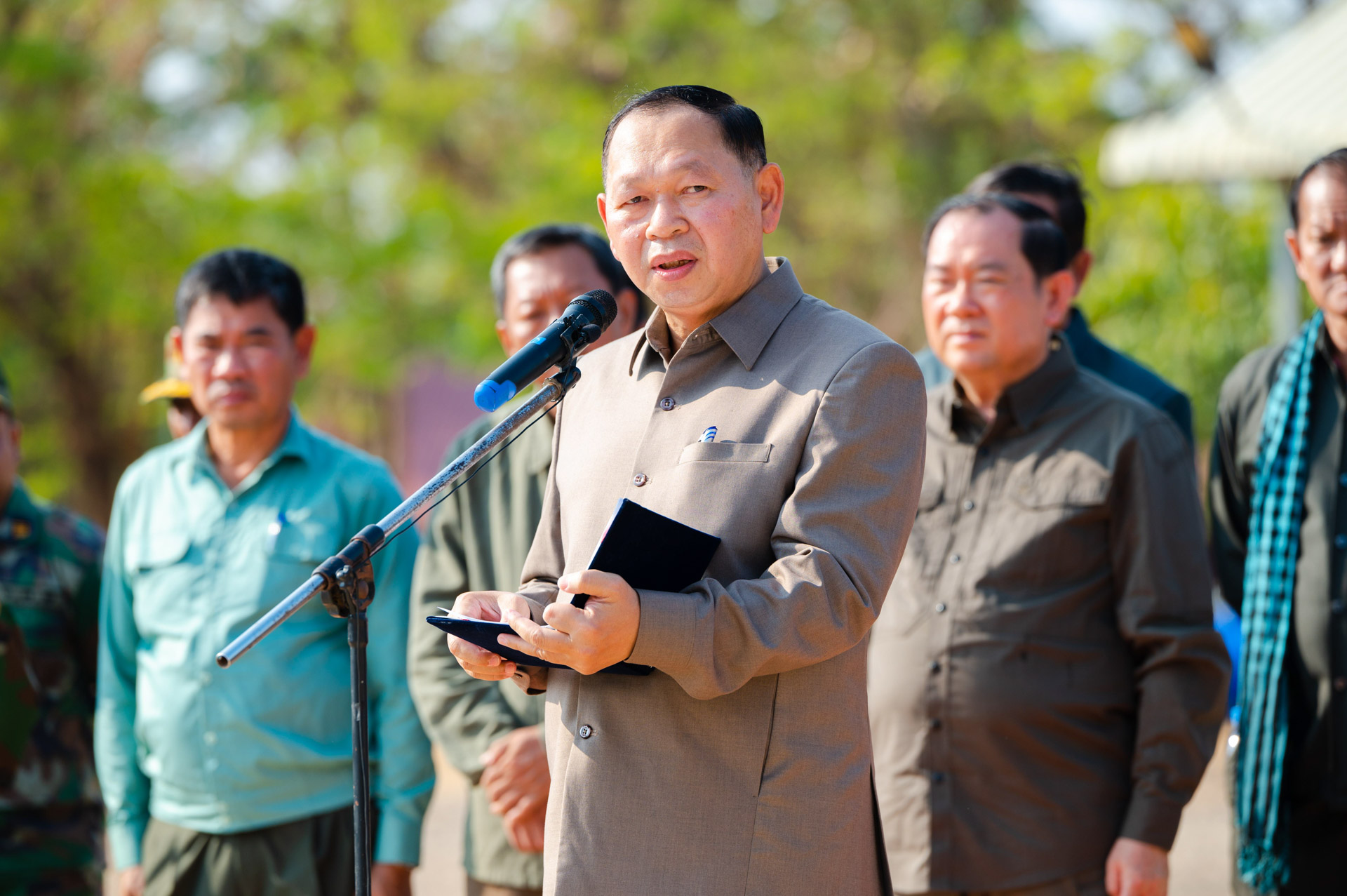ជាកិច្ចចាប់ផ្ដើម លោកឧត្តមសេនីយ៍ត្រី គុជ នាង មេបញ្ជាការកងពលតូចថ្មើជើងលេខ៥២ បានធ្វើរបាយការណ៍ស្វាគមន៍ដោយបានរំលេចជូនថា នៅគ្រប់រដូវកាលនៃថ្ងៃបុណ្យប្រពៃណីជាតិ មុនថ្ងៃបុណ្យចូលឆ្នាំថ្មី និងបុណ្យភ្ជុំបិណ្ឌ ក្រសួងអភិវឌ្ឍន៍ជនបទ តែងតែចុះមកសួរសុខទុក្ខដល់អង្គភាព ហើយកន្លងមកក្រសួងបានចូលរួមចំណែកក្នុងការកសាងសមិទ្ធផលជាច្រើនជូនអង្គភាពមានដូចជា សំណង់អាគារស្នាក់នៅរបស់កងទ័ព អាគារប្រចាំការ ទំនប់បង្ហៀរទឹក អាងស្តុកទឹក សូឡា ម៉ូទ័របូមទឹក សម្ភារសំណង់ ថវិកា និងគ្រឿងឧបភោគបរិភោគផងដែរ។ លោកបានជម្រាបជូនអំពីតួនាទី ភារកិច្ច និងការប្ដេជ្ញាចិត្តរបស់កងទ័ពក្នុងការការពារសុខសន្ដិភាព អធិបតេយ្យភាព និងបូរណភាពទឹកដីជូន ជាតិ សាសនា និងព្រះមហាក្សត្រ។