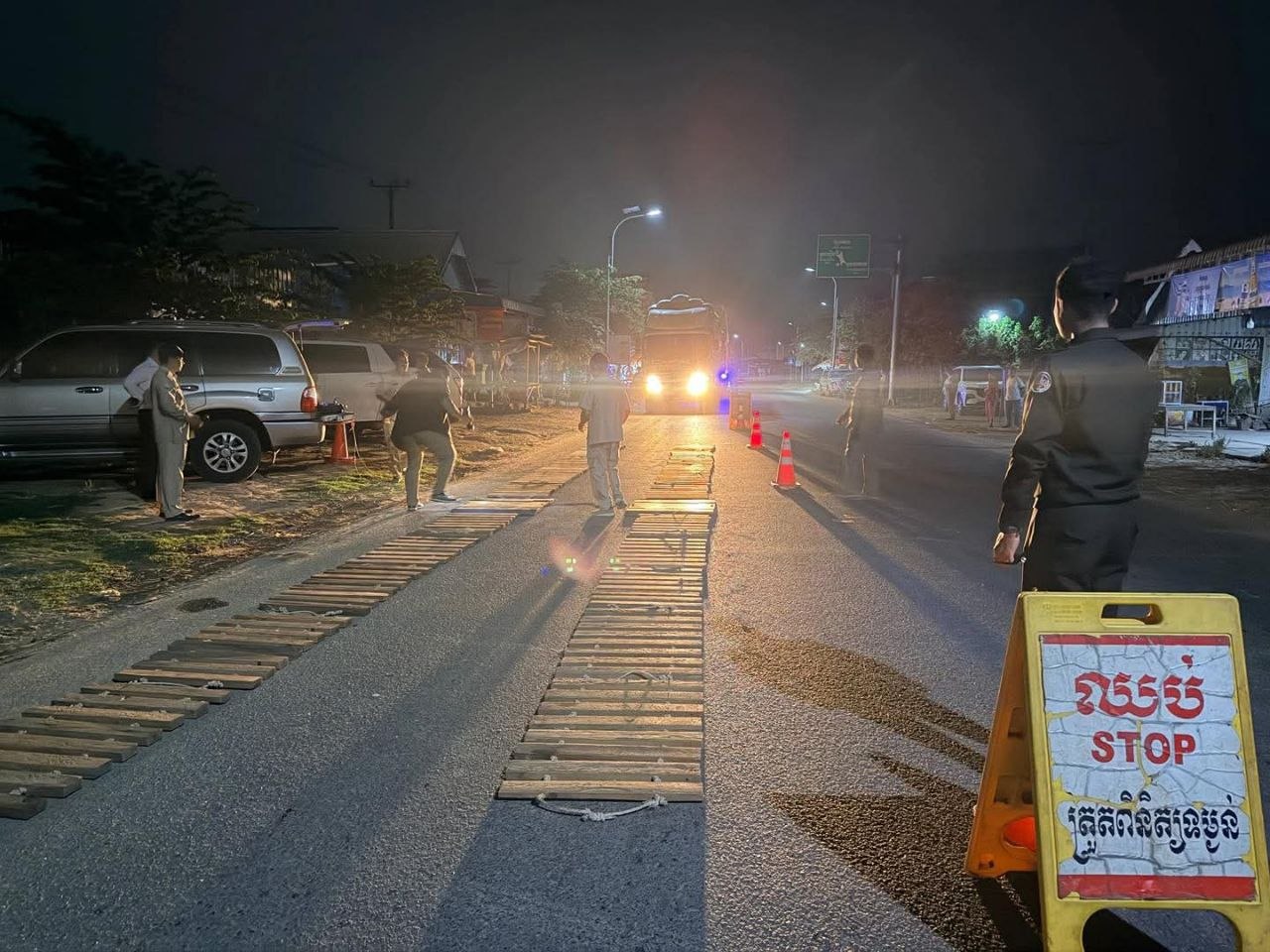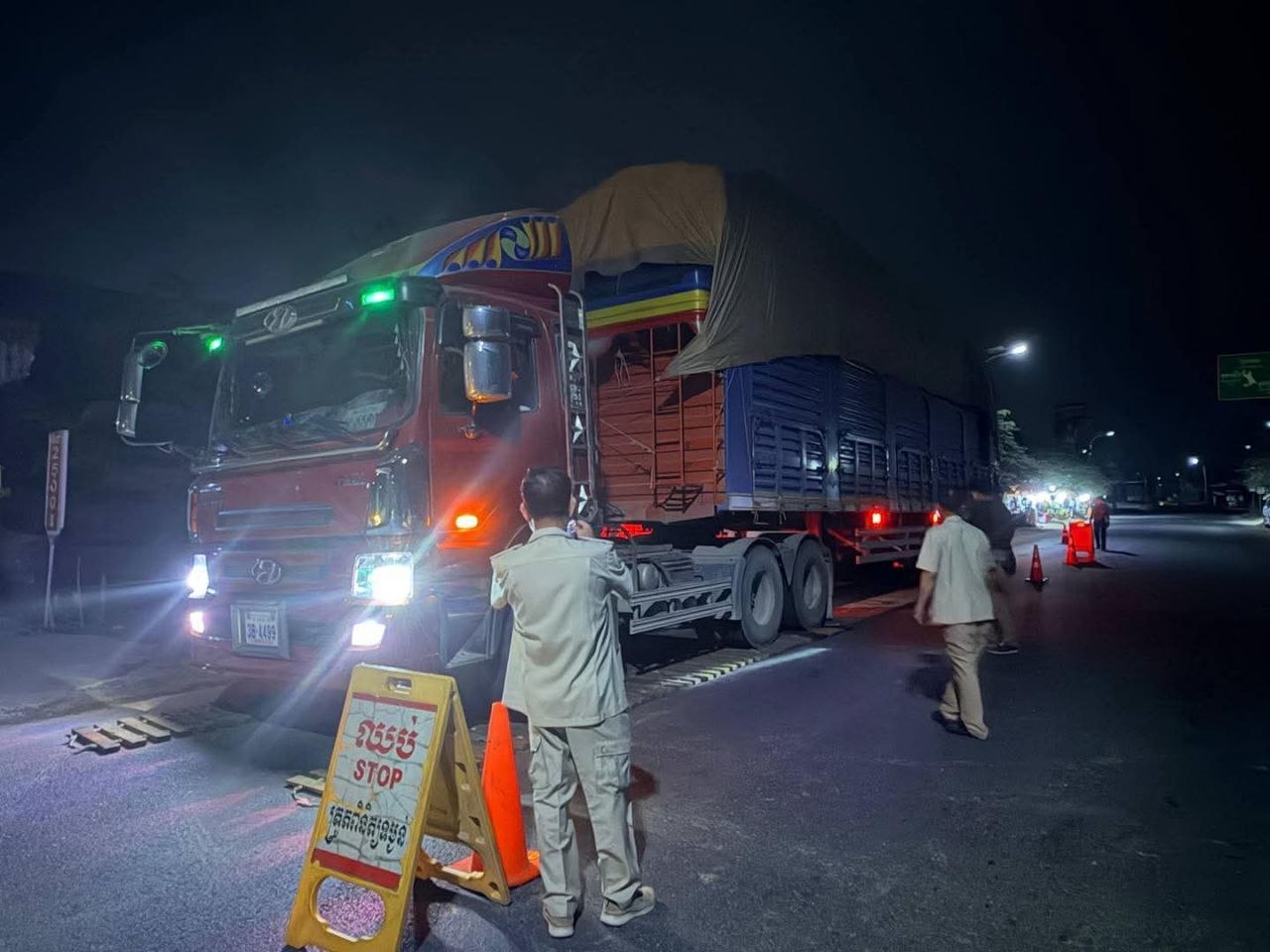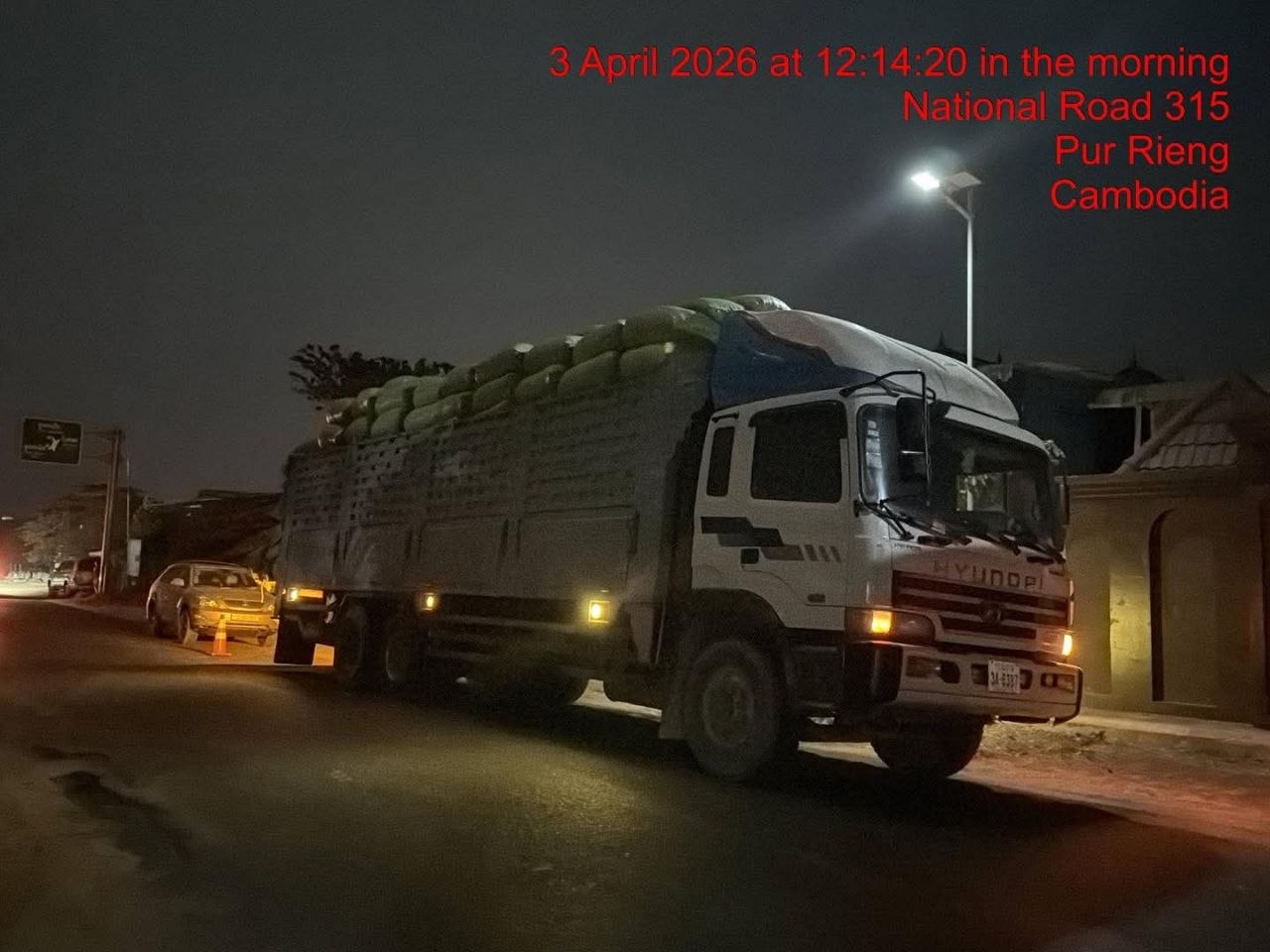 ក្រុមការងារត្រួតពិនិត្យចល័តរបស់ក្រសួង ដឹកនាំដោយឯកឧត្តម ប៉េង ពោធិ៍នា រដ្ឋមន្ត្រីក្រសួងសាធារណការ និងដឹកជញ្ជូន និងជាប្រធានគណៈកម្មាធិការដឹកនាំការត្រួតពិនិត្យយានយន្តដឹកជញ្ជូនលើសទម្ងន់កម្រិតកំណត់ សហការជាមួយស្ថានីយជញ្ជីងអចល័ត ព្រៃព្នៅខេត្តព្រៃវែង ព្រមទាំងកងកម្លាំងសមត្ថកិច្ចពាក់ព័ន្ធ នៅវេលាម៉ោង ១២:៣០នាទី ទៀបភ្លឺ ព្រឹកថ្ងៃទី៣ ខែមេសា ឆ្នាំ២០២៦នេះ បានចុះប្រតិបត្តិការត្រួតពិនិត្យយានយន្ត ដឹកជញ្ជូនលើសទម្ងន់កម្រិតកំណត់ នៅទីតាំងចំណុចផ្លូវលេខ៣៨៤ ភូមិភ្លយ សង្កាត់តាកោ ក្រុងព្រៃវែង ខេត្តព្រៃវែង។