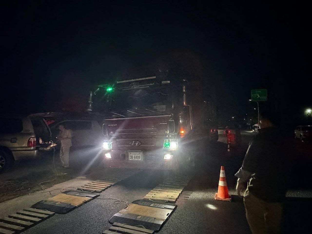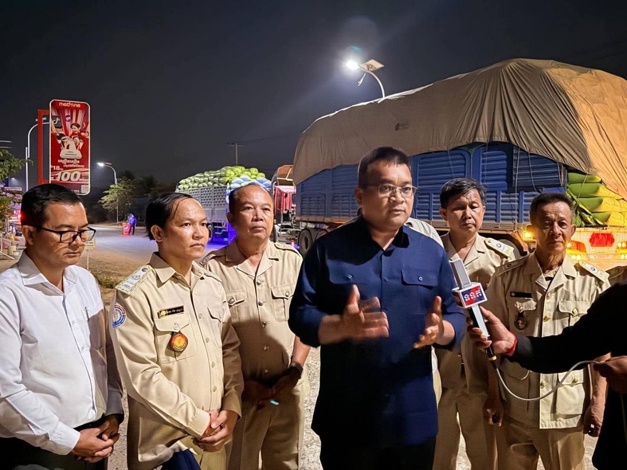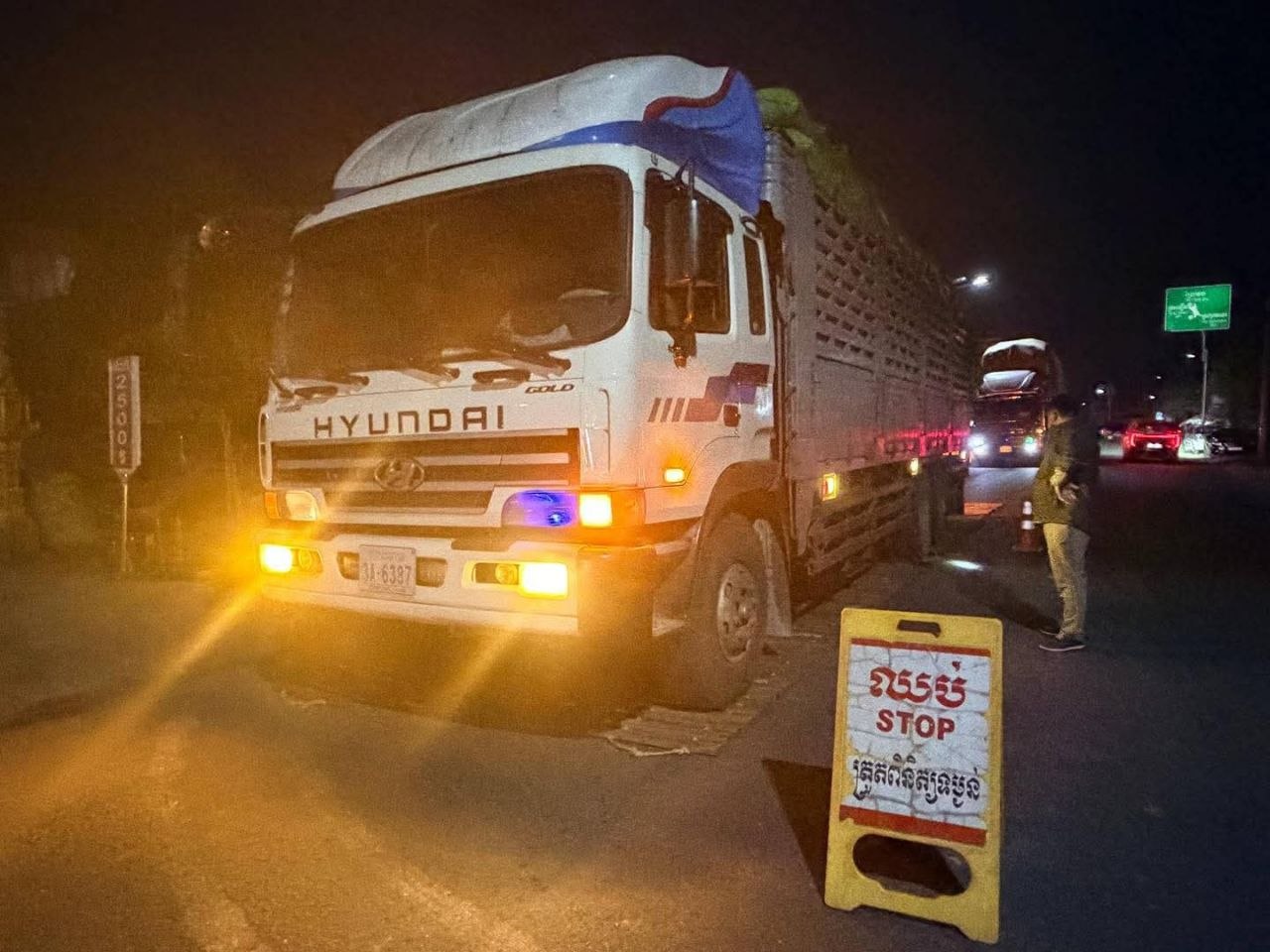 ក្រុមការងារត្រួតពិនិត្យចល័តរបស់ក្រសួង ដឹកនាំដោយឯកឧត្តម ប៉េង ពោធិ៍នា រដ្ឋមន្ត្រីក្រសួងសាធារណការ និងដឹកជញ្ជូន និងជាប្រធានគណៈកម្មាធិការដឹកនាំការត្រួតពិនិត្យយានយន្តដឹកជញ្ជូនលើសទម្ងន់កម្រិតកំណត់ សហការជាមួយស្ថានីយជញ្ជីងអចល័ត ព្រៃព្នៅខេត្តព្រៃវែង ព្រមទាំងកងកម្លាំងសមត្ថកិច្ចពាក់ព័ន្ធ នៅវេលាម៉ោង ១២:៣០នាទី ទៀបភ្លឺ ព្រឹកថ្ងៃទី៣ ខែមេសា ឆ្នាំ២០២៦នេះ បានចុះប្រតិបត្តិការត្រួតពិនិត្យយានយន្ត ដឹកជញ្ជូនលើសទម្ងន់កម្រិតកំណត់ នៅទីតាំងចំណុចផ្លូវលេខ៣៨៤ ភូមិភ្លយ សង្កាត់តាកោ ក្រុងព្រៃវែង ខេត្តព្រៃវែង។