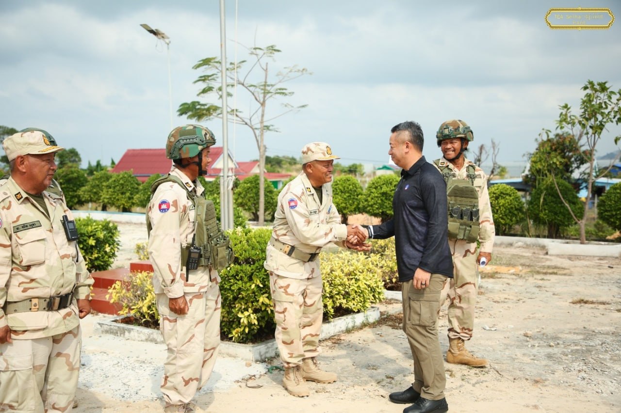 នាយឧត្តមសេនីយ៍ ទៀ សីហា ឧបនាយករដ្ឋមន្ត្រី រដ្ឋមន្ត្រីក្រសួងការពារជាតិ នៅថ្ងៃទី៦ ខែមេសា ឆ្នាំ២០២៦ បានចុះសួរសុខទុក្ខ និងជូនពរជ័យសិរីសួស្តីដល់យោធិនដែលកំពុងបំពេញបេសកកម្មដ៏ឧត្តុង្គឧត្តមក្នុងការការពារបូរណភាពទឹកដី នៅសមរភូមិមុខតាមបណ្តោយព្រំដែនកម្ពុជា-ថៃ នៅទិសយោធភូមិភាគទី៣ ក្នុងភូមិសាស្រ្តខេត្តកោះកុង ក្នុងឱកាសបុណ្យចូលឆ្នាំថ្មី ឆ្នាំមមី អដ្ឋស័ក ពុទ្ធសករាជ ២៥៧០ ដែលនឹងឈានមកដល់នៅពេលខាងមុខ។