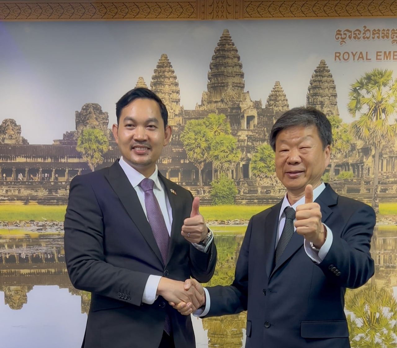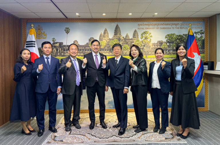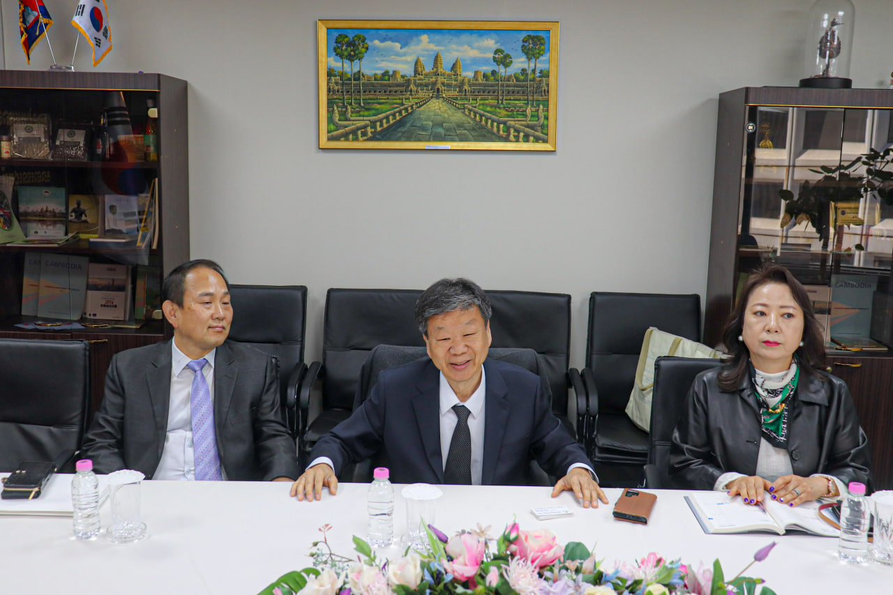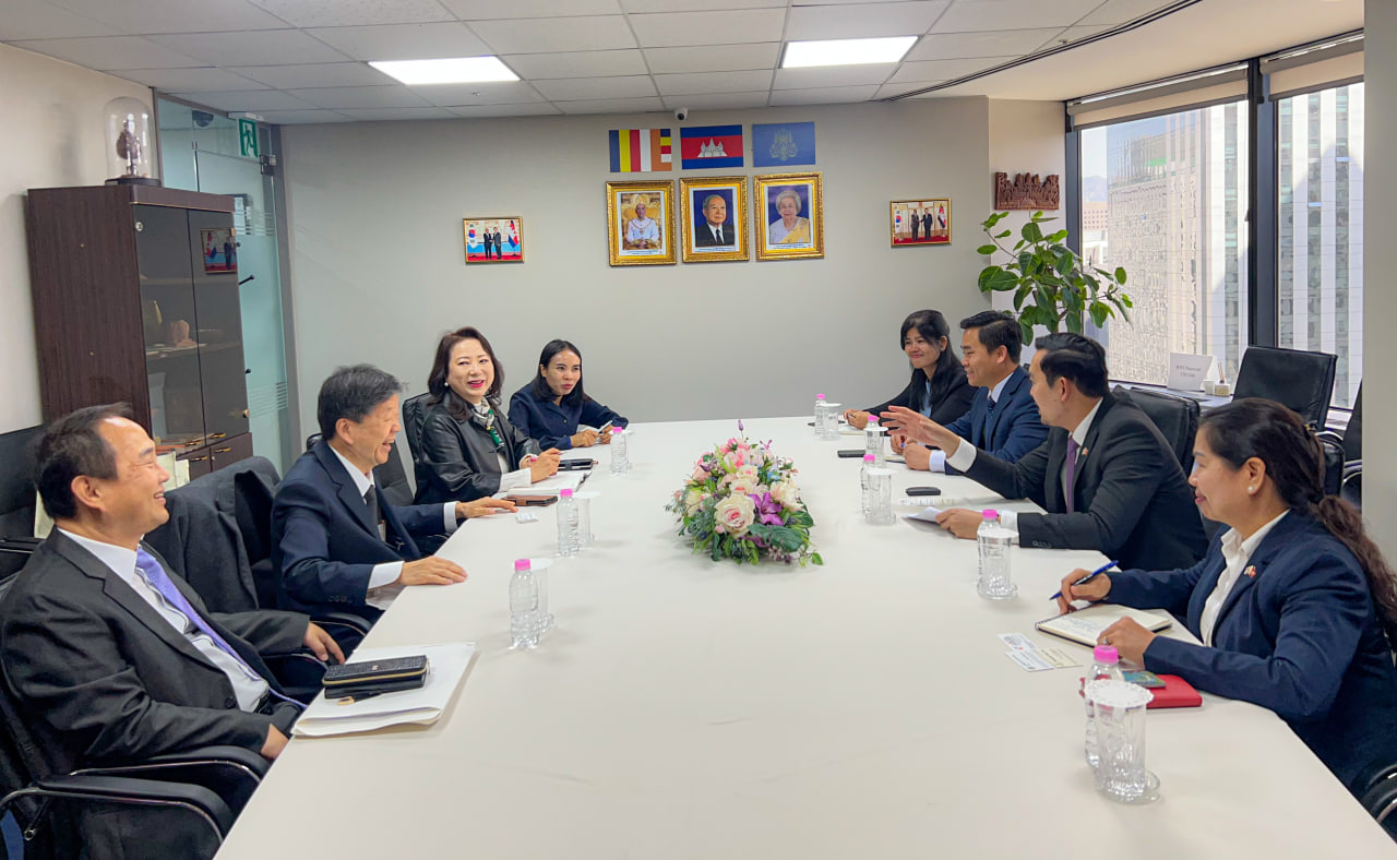 ឯកឧត្តម ឃួន ផុនរតនៈ ឯកអគ្គរាជទូតកម្ពុជាប្រចាំសាធារណរដ្ឋកូរ៉េ បានទទួលជួបសម្តែងការគួរសម និងពិភាក្សាការងារជាមួយលោក Park Hee Soo ប្រធានក្រុមប្រឹក្សាភិបាលនៃក្រុមហ៊ុន Saemyeong Energy Tech នាថ្ងៃទី ៧ ខែមេសា ឆ្នាំ២០២៦ នៅស្ថានទូតកម្ពុជាក្នុងទីក្រុងសេអ៊ូល។
