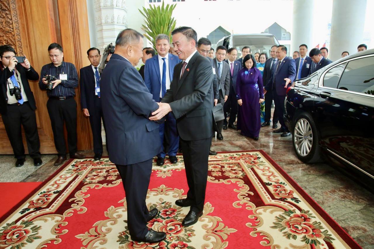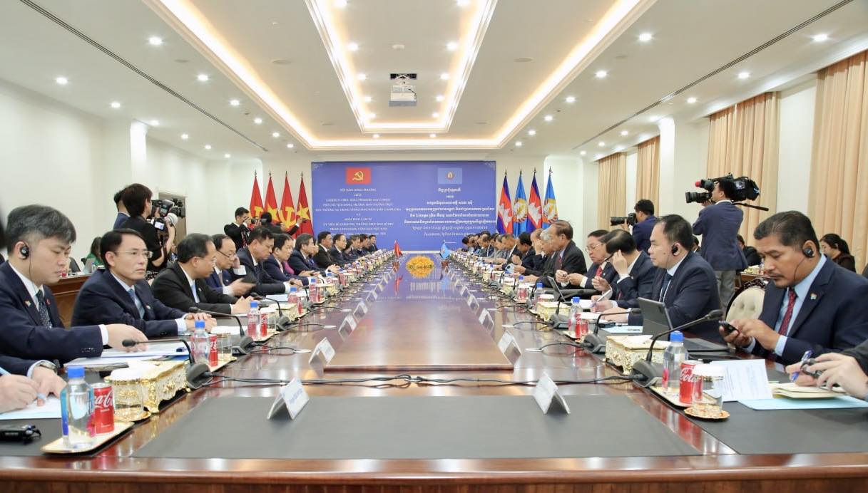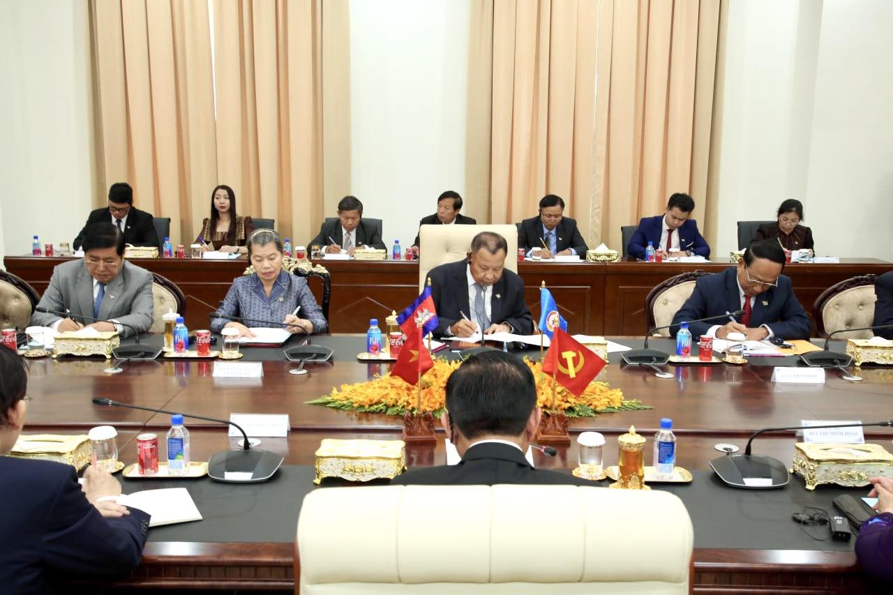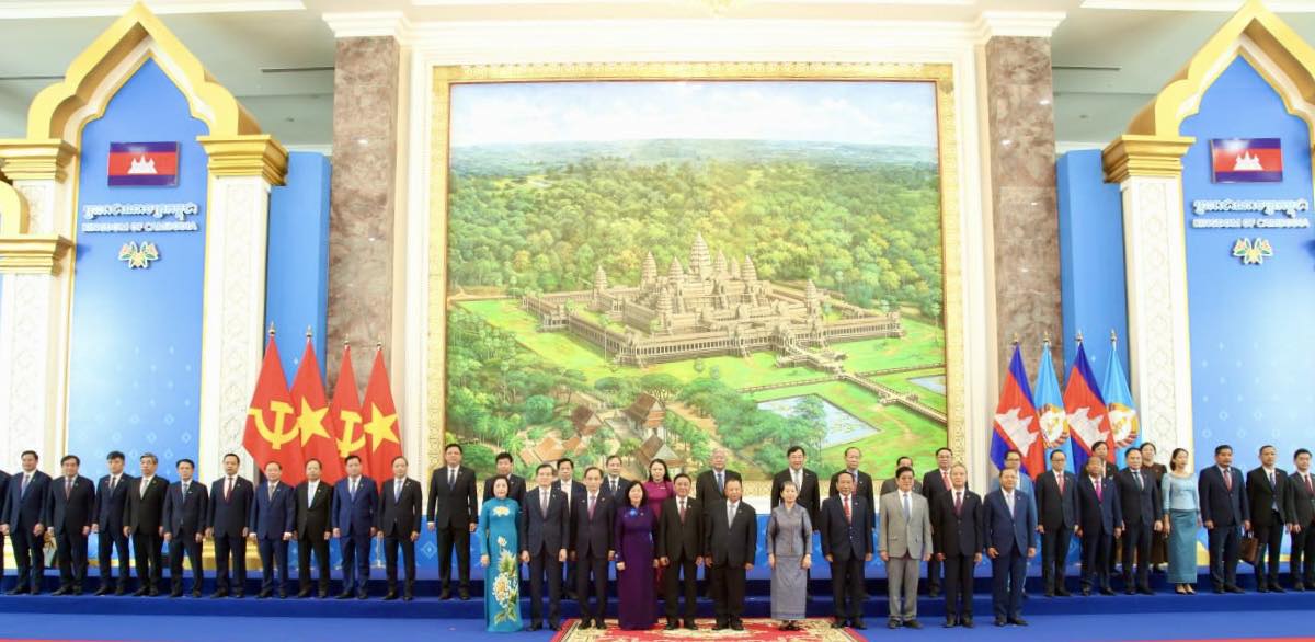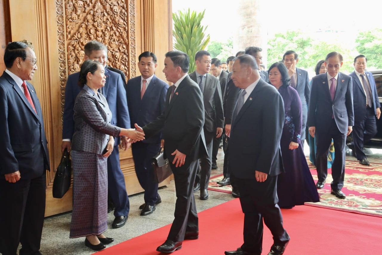 សម្តេចវិបុលសេនាភក្តី សាយ ឈុំ ប្រធានគណៈប្រចាំការ និងជាអនុគណបក្សប្រជាជនកម្ពុជា ទទួលជំនួបទ្វេភាគីជាមួយ គណៈប្រតិភូវៀតណាម ដឹកនាំដោយឯកឧត្តម ត្រិន កឹមទូ (Tram Cam Tu) សមាជិកការិយាល័យនយោបាយ និងជាសមាជិកប្រចាំការ គណៈលេខាធិការមជ្ឈិមបក្សកុម្មុយនីស្តវៀតណាម នៅវិមាន៧មករា នាព្រឹកថ្ងៃសុក្រ ៨រោច ខែចេត្រ ឆ្នាំម្សាញ់ សប្តស័ក ពុទ្ធសករាជ ២៥៦៩ ត្រូវនឹងថ្ងៃទី១០ ខែមេសា ឆ្នាំ២០២៦។
