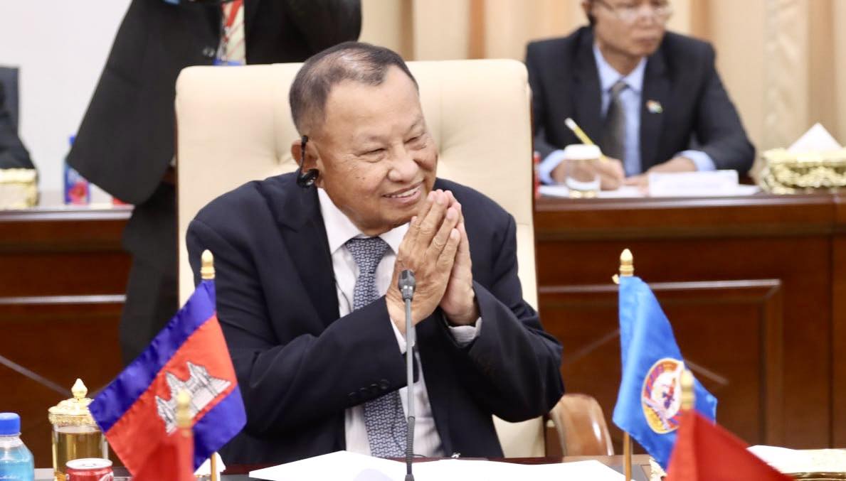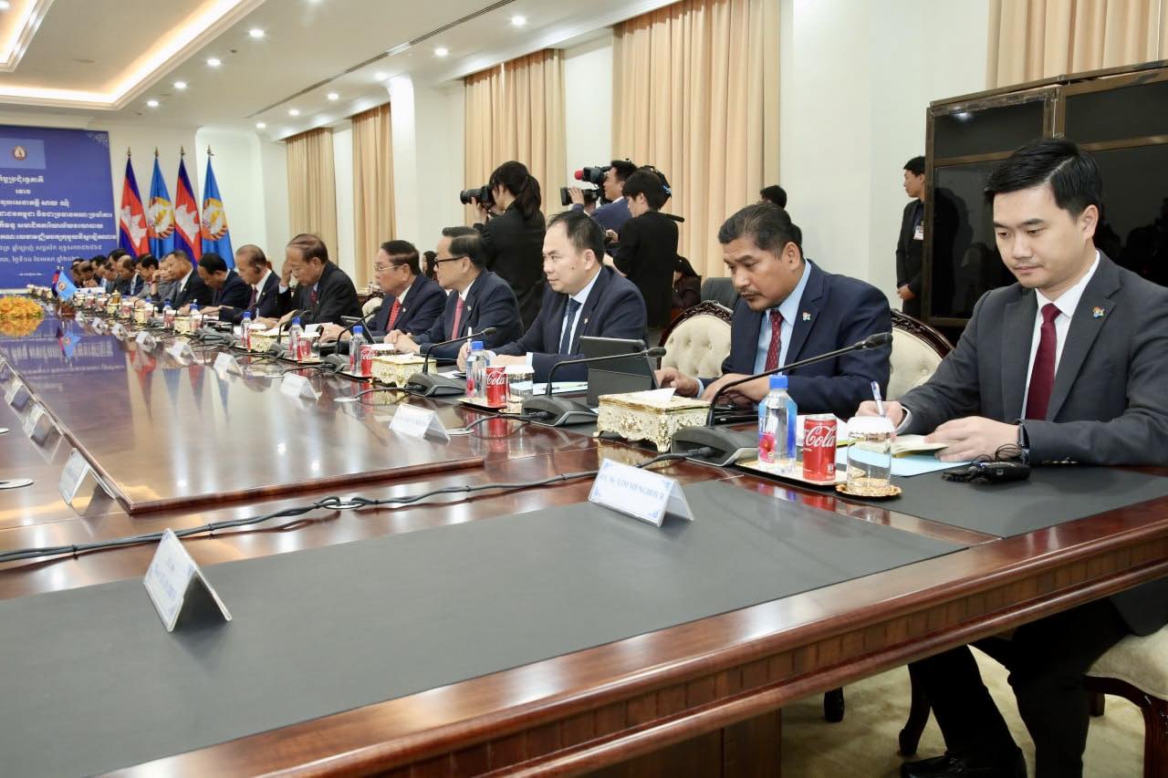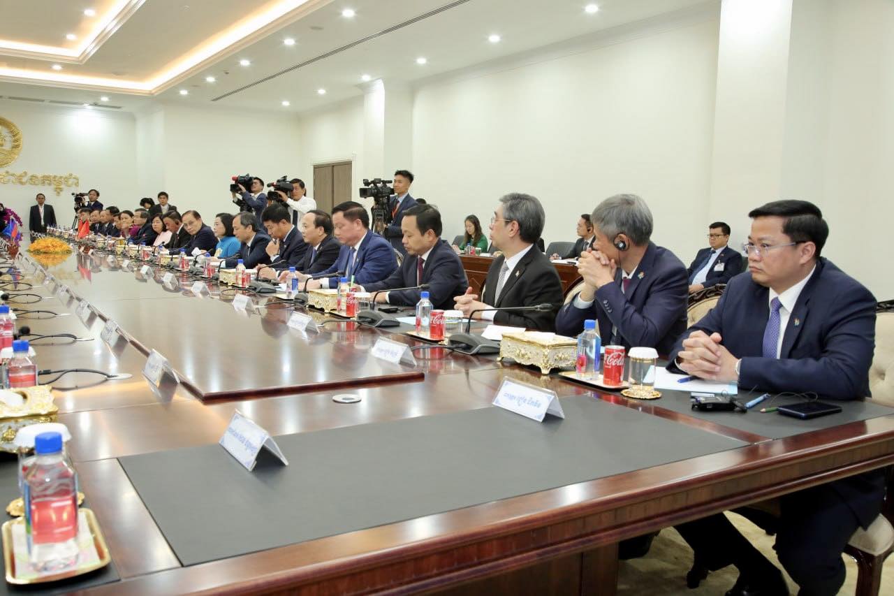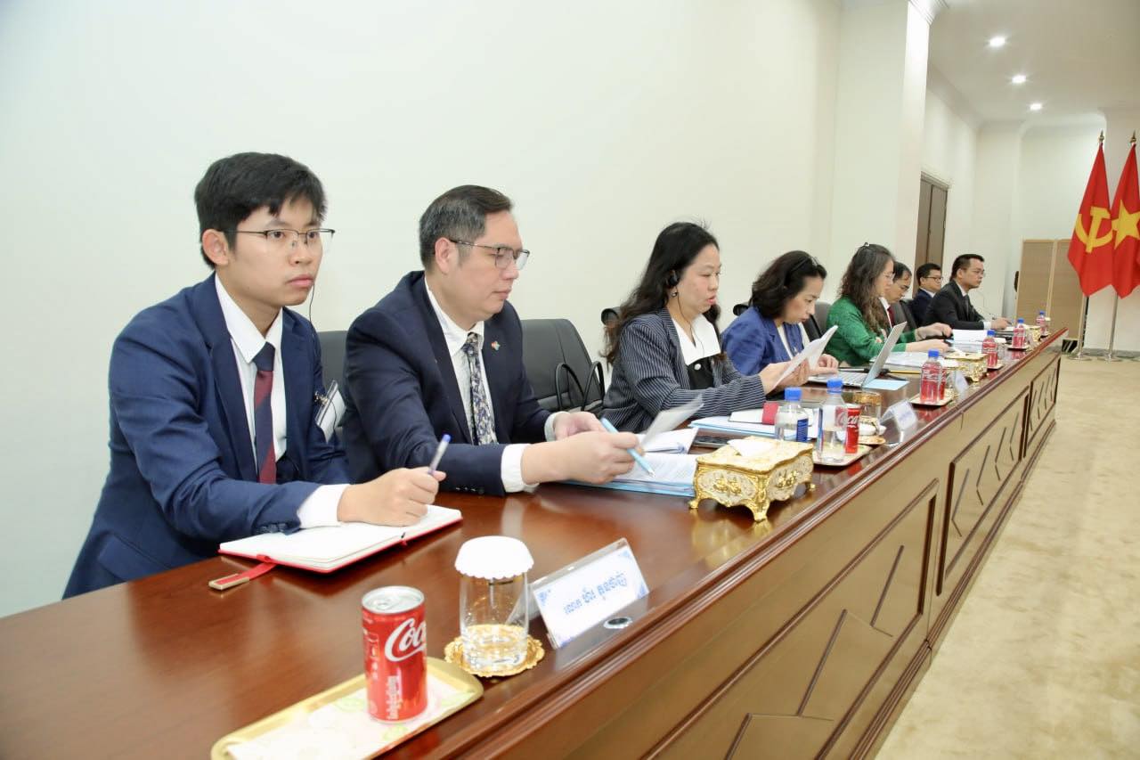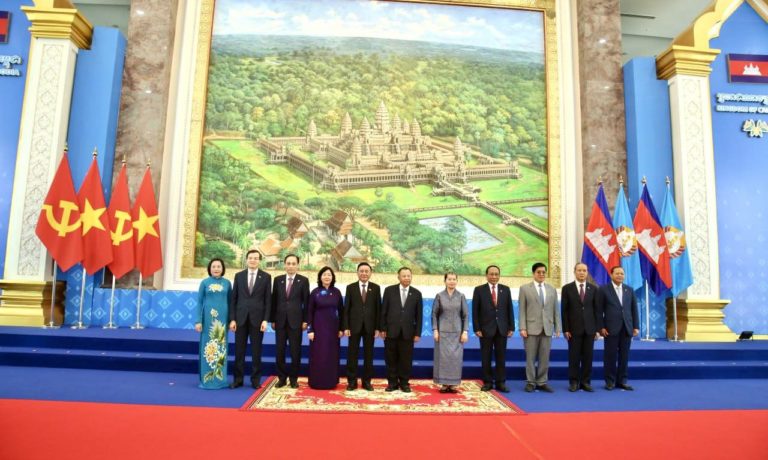 សម្តេចវិបុលសេនាភក្តី សាយ ឈុំ ប្រធានគណៈប្រចាំការ និងជាអនុគណបក្សប្រជាជនកម្ពុជា ទទួលជំនួបទ្វេភាគីជាមួយ គណៈប្រតិភូវៀតណាម ដឹកនាំដោយឯកឧត្តម ត្រិន កឹមទូ (Tram Cam Tu) សមាជិកការិយាល័យនយោបាយ និងជាសមាជិកប្រចាំការ គណៈលេខាធិការមជ្ឈិមបក្សកុម្មុយនីស្តវៀតណាម នៅវិមាន៧មករា នាព្រឹកថ្ងៃសុក្រ ៨រោច ខែចេត្រ ឆ្នាំម្សាញ់ សប្តស័ក ពុទ្ធសករាជ ២៥៦៩ ត្រូវនឹងថ្ងៃទី១០ ខែមេសា ឆ្នាំ២០២៦។