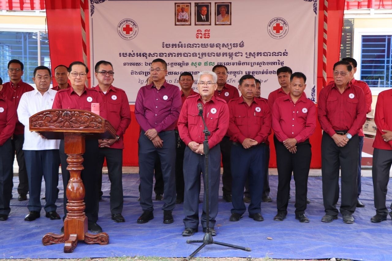 ក្នុងឱកាសនោះ លោកសន្តិបណ្ឌិត សុខ ផល បាននាំនូវប្រសាសន៍ផ្តាំផ្ញើសួរសុខទុក្ខ ក្តីនឹករលឹកពីសំណាក់សម្តេចកិត្តិព្រឹទ្ធបណ្ឌិត ប៊ុន រ៉ានី ហ៊ុនសែន ប្រធានកាកបាទក្រហមកម្ពុជា និងថ្លែងងកោតសរសើរចំពោះថ្នាក់ដឹកនាំសាខា ក្រុមប្រតិបត្តិសាខា-អនុសាខាស្រុកបាណន់ និងអាជ្ញាធរគ្រប់លំដាប់ថ្នាក់ដែលបានអនុវត្តនូវអនុសាសន៍របស់សម្តេចកិត្តិព្រឹទ្ធបណ្ឌិត ក្នុងការគិតគូរពីជីវភាពរស់នៅ និងសុខភាពរបស់បងប្អូនពុក ម៉ែ មា មីង លោកយាយលោកតា ទាំងអស់ និងបានជួយសម្រាលការលំបាកដល់ប្រជាពលរដ្ឋងាយរងគ្រោះបំផុតផងដែរ។ ស្របតាមពាក្យស្លោក «ទីណាមានទុក្ខលំបាក ទីនោះមានកាកបាទក្រហមកម្ពុជា» និង «កាកបាទក្រហមកម្ពុជា មានគ្រប់ទីកន្លែង សម្រាប់គ្រប់ៗគ្នាមិនទុកនរណាម្នាក់ចោល»។