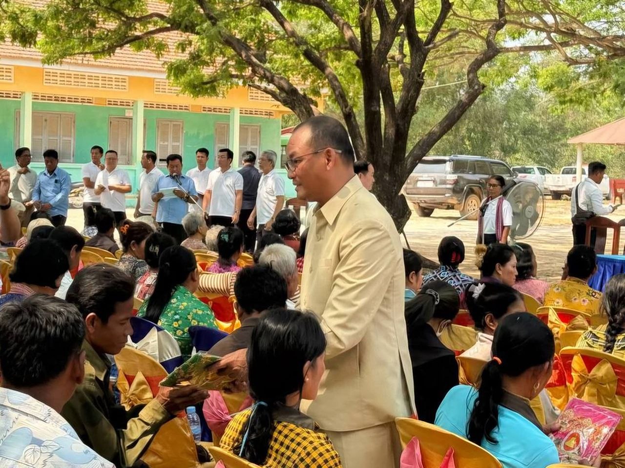 លោក ស៊ុន សុវណ្ណរិទ្ធ អភិបាលខេត្តកំពង់ឆ្នាំង និងក្រុមការងារសប្បុរសធម៌សម្តេចតេជោ និងសម្តេចកិត្តិព្រឹទ្ធបណ្ឌិត នៅព្រឹកថ្ងៃទី៩ ខែមេសា ឆ្នាំ២០២៦ បានអញ្ជើញចុះសួរសុខទុក្ខ និងនាំយកអំណោយ របស់សម្ដេចទាំងទ្វេ ផ្ដល់ជូនជនចាស់ជរា និងគ្រួសារជួបការលំបាកចំនួន ២៣០គ្រួសារ ក្នុងឃុំច្រណូក ស្រុកកំពង់លែង ខេត្តកំពង់ឆ្នាំង។