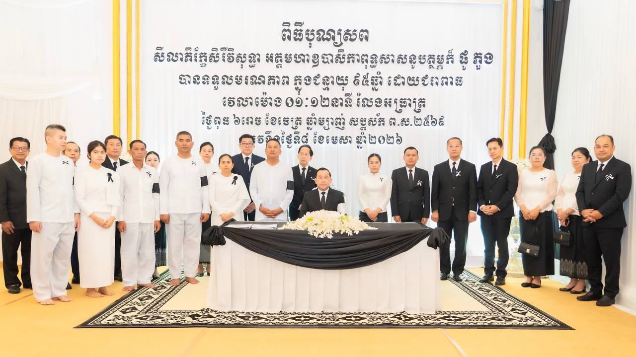 ឯកឧត្តម ហួត ហាក់ រដ្ឋមន្ត្រីក្រសួងទេសចរណ៍ នៅថ្ងៃទី១០ ខែមេសា ឆ្នាំ២០២៦ អញ្ជើញដឹកនាំគណៈប្រតិភូក្រសួងទេសចរណ៍ ចូលរួមគោរពវិញ្ញាណក្ខន្ធ សីលាភិរ័ក្ខសិរីវិសុទ្ធា អគ្គមហាឧបាសិកាពុទ្ធសាសនូបត្ថម្ភក៍ ផូ ភួង ដែលត្រូវជាមាតាបង្កើតរបស់លោកនាយឧត្តមសេនីយ៍ ស ថេត អគ្គស្នងការនគរបាលជាតិ ទទួលមរណភាពនៅថ្ងៃពុធ ៦រោច ខែចេត្រ ឆ្នាំម្សាញ់ សប្តស័ក ព.ស.២៥៦៩ ត្រូវនឹងថ្ងៃទី៨ ខែមេសា ឆ្នាំ២០២៦ វេលាម៉ោង ០១:១២ នាទីរំលងអាធ្រាត្រ ក្នុងជន្មាយុ៩៥ឆ្នាំ ដោយជរាពាធ។