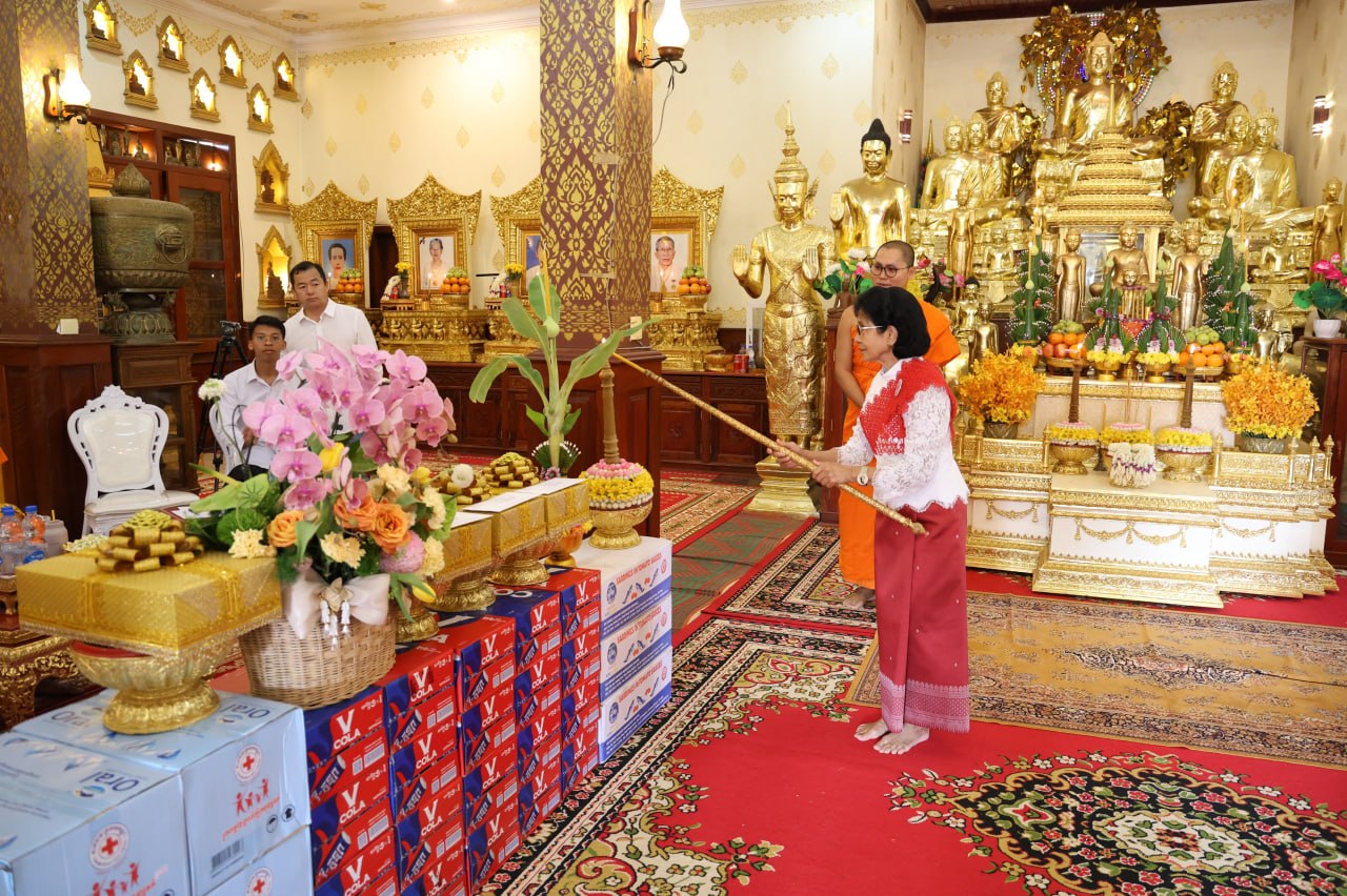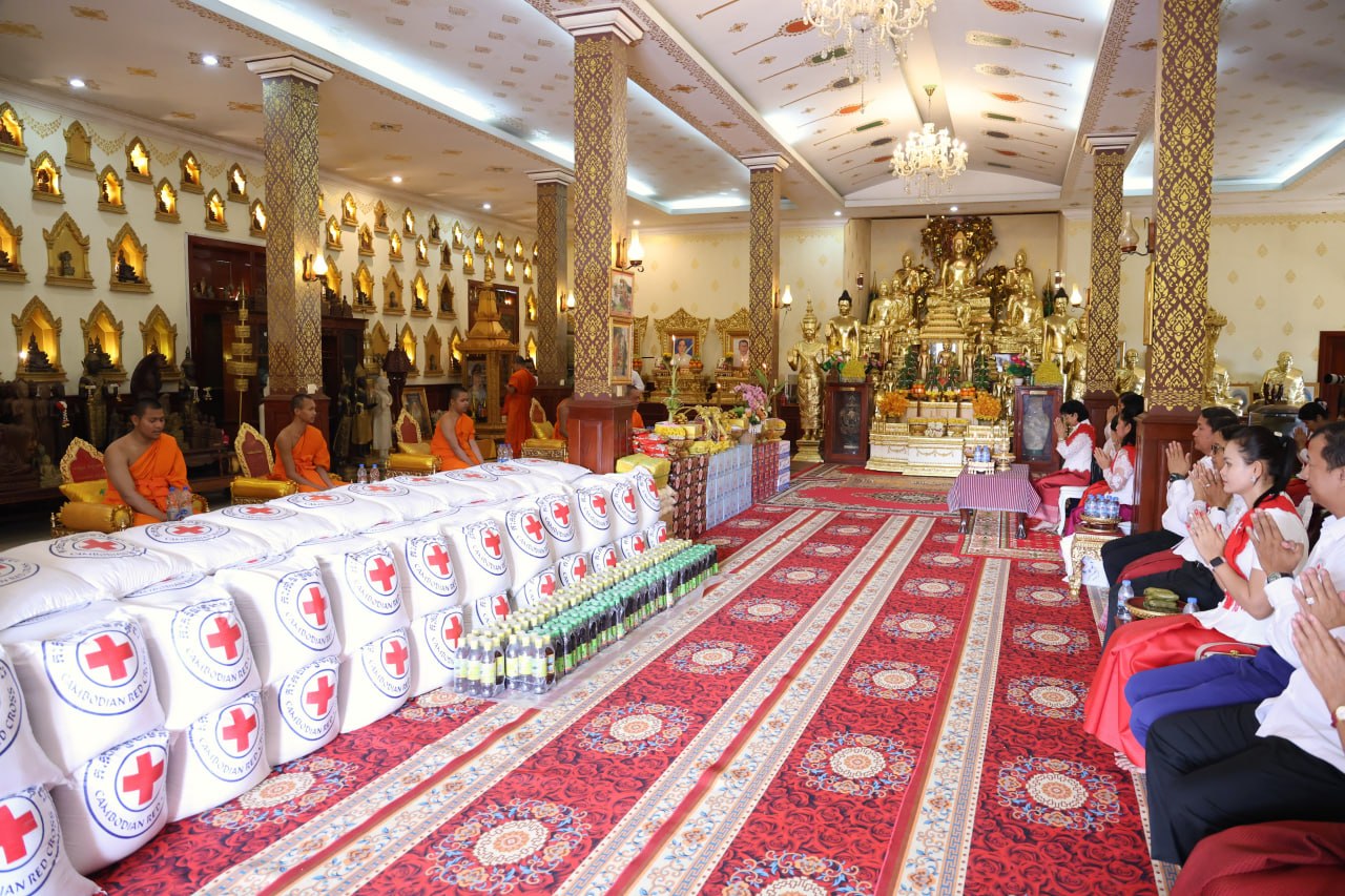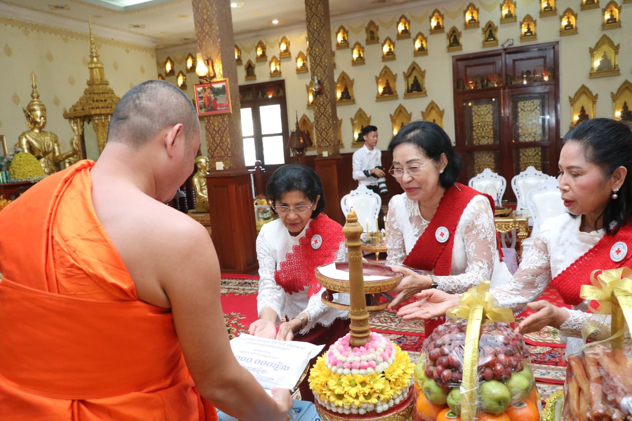 ដោយសទ្ធាជ្រះថ្លា និងអនុសាសន៍ដ៏ខ្ពង់ខ្ពស់របស់សម្តេចកិត្តិព្រឹទ្ធបណ្ឌិត ប៊ុន រ៉ានី ហ៊ុនសែន ប្រធានកាកបាទក្រហមកម្ពុជា និងដើម្បីអបអរសាទរ ពិធីបុណ្យចូលឆ្នាំថ្មី ប្រពៃណីជាតិខ្មែរ ឆ្នាំមមី អដ្ឋស័ក ព.ស.២៥៧០ ដែលនឹងឈានមកដល់នាពេលខាងមុខនេះ លោកជំទាវ ពុំ ចន្ទីនី អគ្គលេខាធិការ កាកបាទក្រហមកម្ពុជា និងសហការី បាននាំយកទេយ្យវត្ថុ គ្រឿងឧបភោគបរិភោគ និងបច្ច័យប្រគេនព្រះសិរីវិសុទ្ធិ បណ្ឌិត វ័ន្ត វណ្ណោ ព្រះរាជាគណៈថ្នាក់ចត្វា ព្រះលេខាគណៈ ខេត្តកណ្តាល និងជាព្រះគ្រូចៅអធិការវត្តប្រជុំនទីហៅវត្ដក្រពើហារ នៅក្នុងក្នុងតាខ្មៅ ខេត្តកណ្តាល។