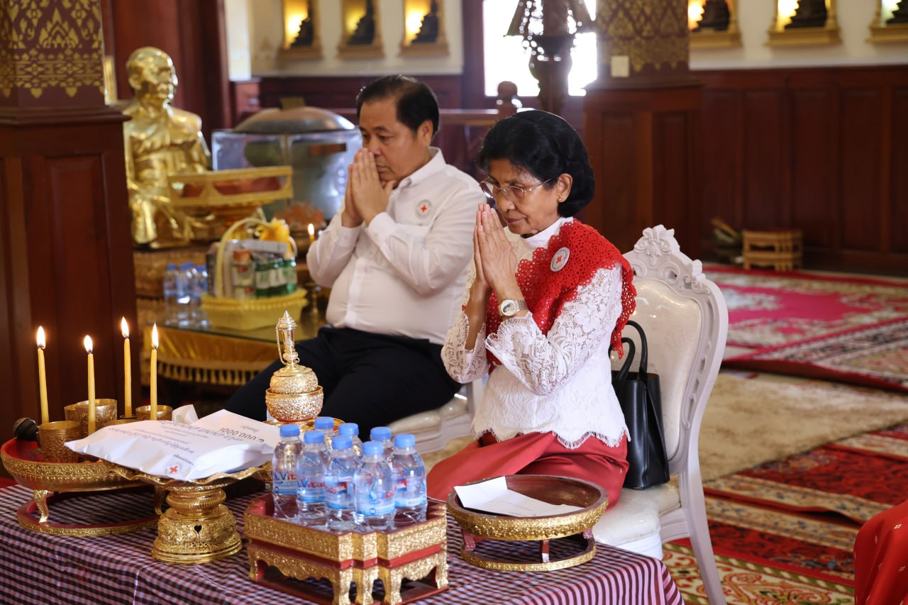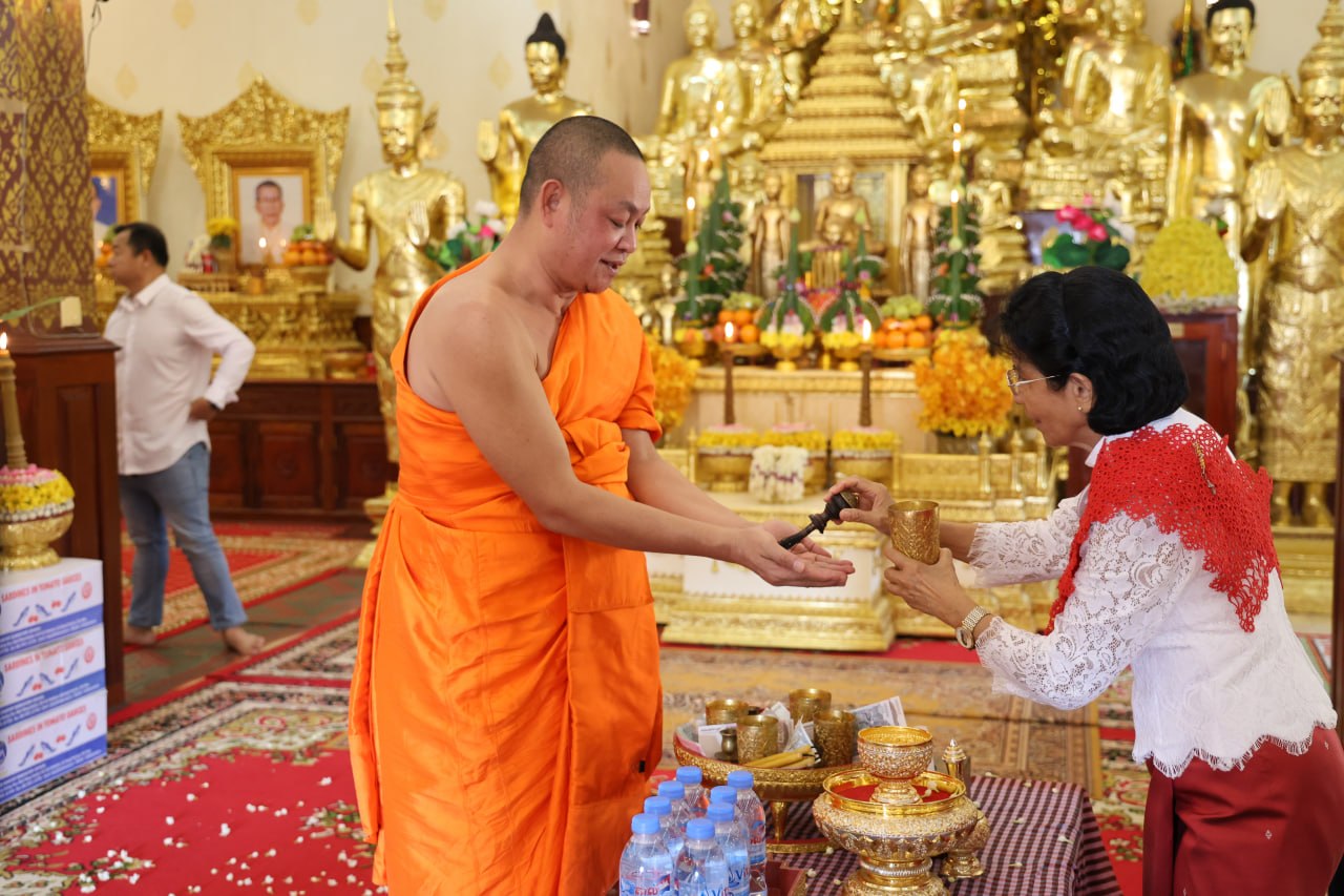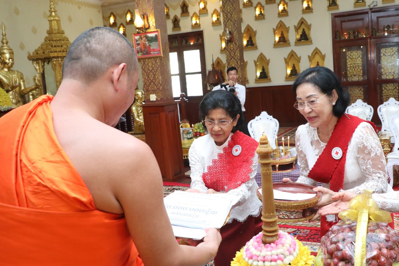 ដោយសទ្ធាជ្រះថ្លា និងអនុសាសន៍ដ៏ខ្ពង់ខ្ពស់របស់សម្តេចកិត្តិព្រឹទ្ធបណ្ឌិត ប៊ុន រ៉ានី ហ៊ុនសែន ប្រធានកាកបាទក្រហមកម្ពុជា និងដើម្បីអបអរសាទរ ពិធីបុណ្យចូលឆ្នាំថ្មី ប្រពៃណីជាតិខ្មែរ ឆ្នាំមមី អដ្ឋស័ក ព.ស.២៥៧០ ដែលនឹងឈានមកដល់នាពេលខាងមុខនេះ លោកជំទាវ ពុំ ចន្ទីនី អគ្គលេខាធិការ កាកបាទក្រហមកម្ពុជា និងសហការី បាននាំយកទេយ្យវត្ថុ គ្រឿងឧបភោគបរិភោគ និងបច្ច័យប្រគេនព្រះសិរីវិសុទ្ធិ បណ្ឌិត វ័ន្ត វណ្ណោ ព្រះរាជាគណៈថ្នាក់ចត្វា ព្រះលេខាគណៈ ខេត្តកណ្តាល និងជាព្រះគ្រូចៅអធិការវត្តប្រជុំនទីហៅវត្ដក្រពើហារ នៅក្នុងក្នុងតាខ្មៅ ខេត្តកណ្តាល។