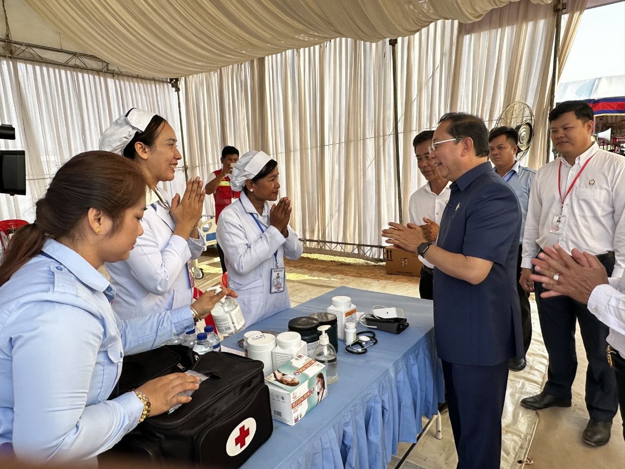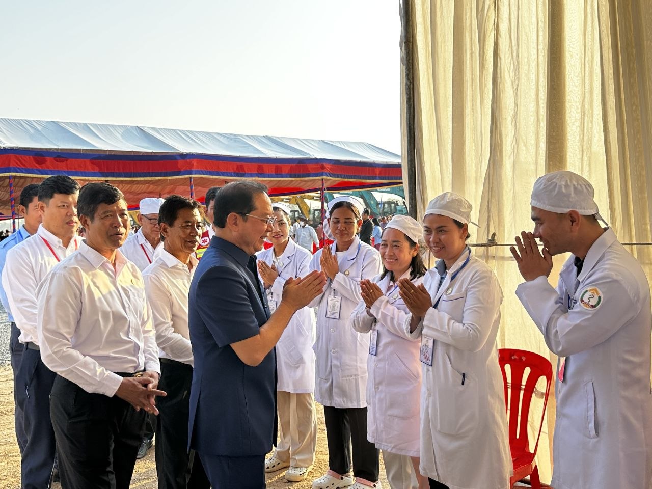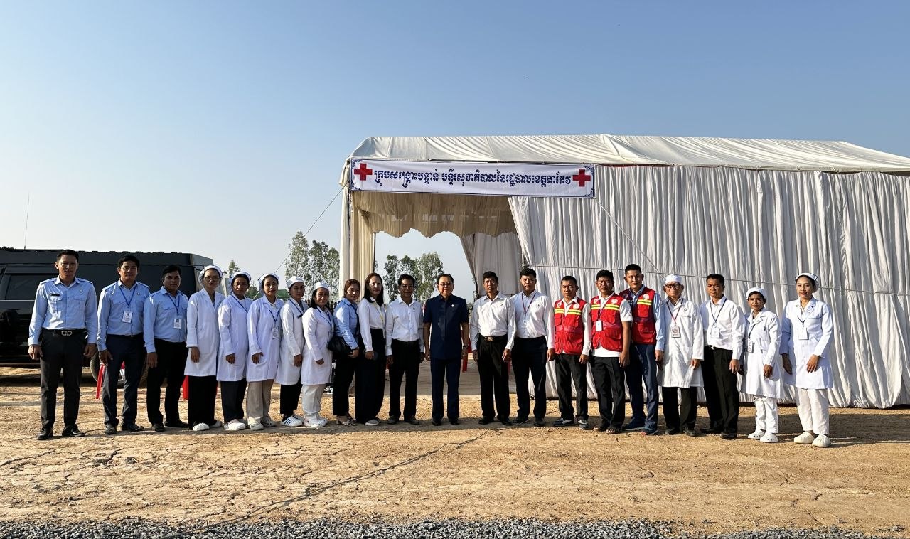 ការថ្លែងយ៉ាងដូច្នេះរបស់ឯកឧត្តមសាស្ដ្រាចារ្យរដ្ឋមន្ដ្រី សំណេះសំណាល សួរសុខទុក្ខដល់ក្រុមគ្រូពេទ្យដែលកំពុងប្រចាំការ ក្នុងឱកាសចូលរួមក្នុងពិធីបើកការដ្ឋានសាងសង់គម្រោងគ្រប់គ្រងធនធានទឹកចម្រុះហ្វូណនតេជោ កំណាត់ទី២នាថ្ងៃទី១១ ខែមេសា ឆ្នាំ២០២៦ ។