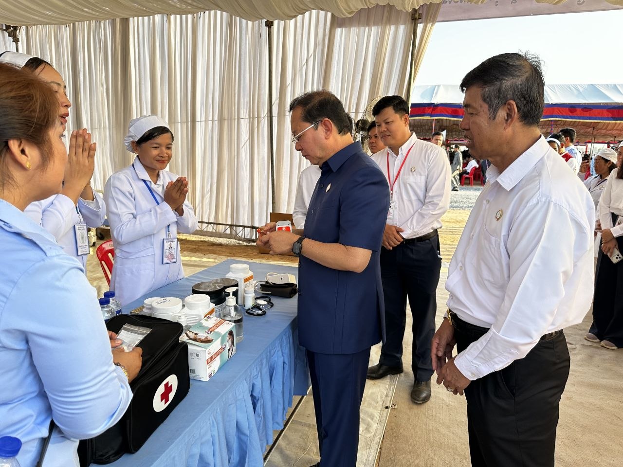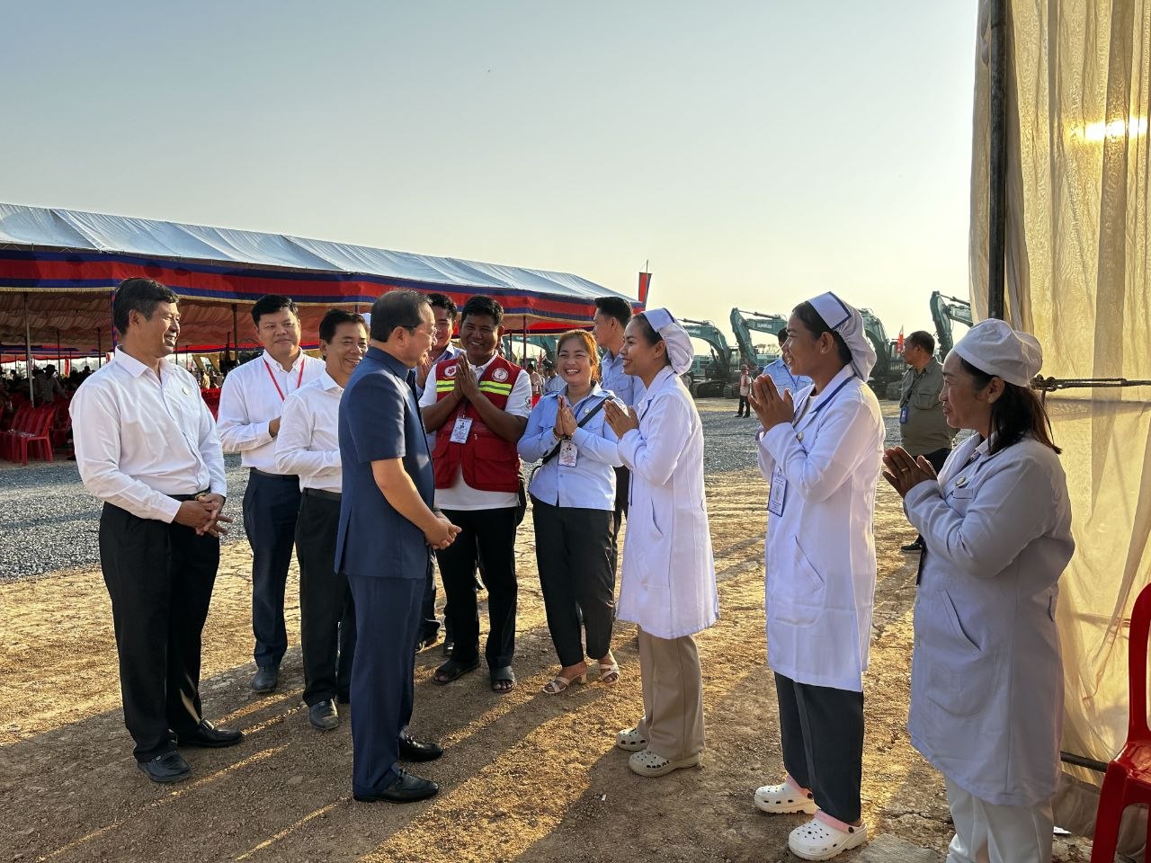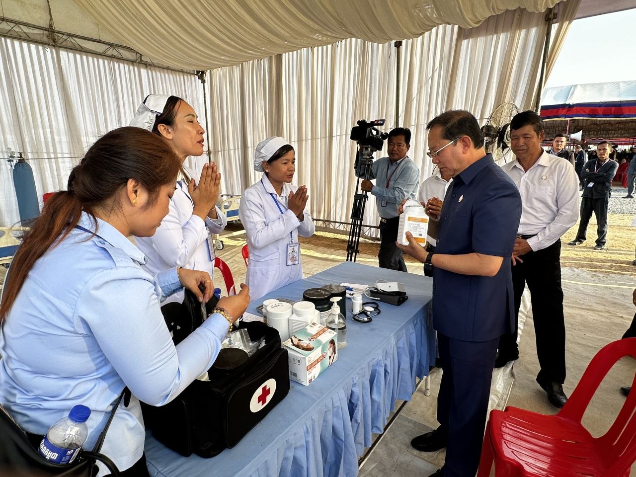 ការថ្លែងយ៉ាងដូច្នេះរបស់ឯកឧត្តមសាស្ដ្រាចារ្យរដ្ឋមន្ដ្រី សំណេះសំណាល សួរសុខទុក្ខដល់ក្រុមគ្រូពេទ្យដែលកំពុងប្រចាំការ ក្នុងឱកាសចូលរួមក្នុងពិធីបើកការដ្ឋានសាងសង់គម្រោងគ្រប់គ្រងធនធានទឹកចម្រុះហ្វូណនតេជោ កំណាត់ទី២នាថ្ងៃទី១១ ខែមេសា ឆ្នាំ២០២៦ ។