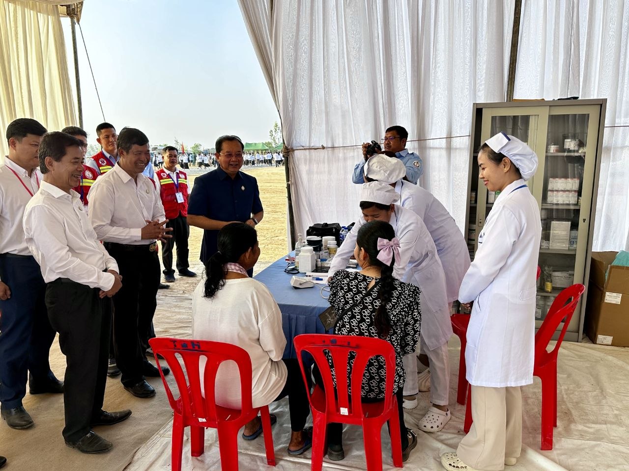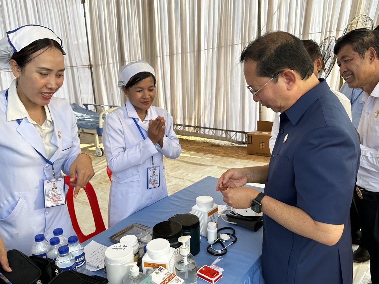 បន្ថែមពីនេះឯកឧត្តមសាស្រ្តាចារ្យរដ្ឋមន្រ្តី ក៏បានឆ្លៀតសួរសុខទុក្ខប្រជាពលរដ្ឋ ដើម្បីស្វែងយល់ពីសុខភាព និងការបម្រើសេវារបស់មន្រ្តីសុខាភិបាលនៅក្នុងមូលដ្ឋានផ្ទាល់ ដែលទទួលបានមតិប្រឡប់ មានការទុកចិត្ត និងពេញចិត្តនូវគុណភាព ចំពោះការបម្រើសេវារបស់ក្រុមគ្រូពេទ្យ នៅតាមមូលដ្ឋានសុខាភិបាលសាធារណៈ។