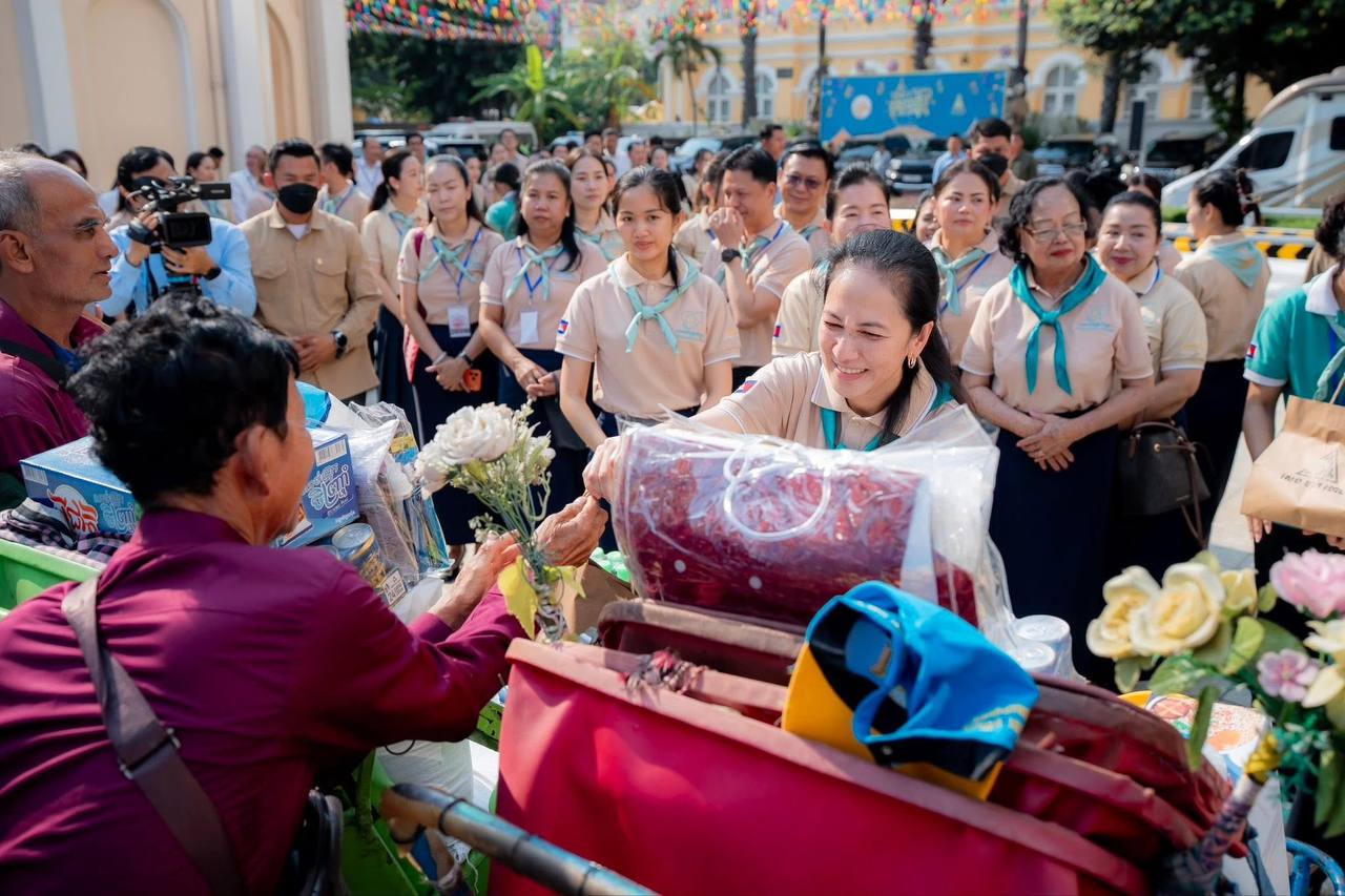 លោកជំទាវបណ្ឌិត ពេជ ចន្ទមុន្នី ហ៊ុនម៉ាណែត ជួបសំណេះសំណាលសួរសុខទុក្ខ និងចែកអំណោយជូនលោកតា លោកអ៊ំ លោកពូ សមាជិកសមាគមមូលនិធិត្រីចក្រយានកម្ពុជាក្នុងឱកាសពិធីបុណ្យចូលឆ្នាំថ្មី