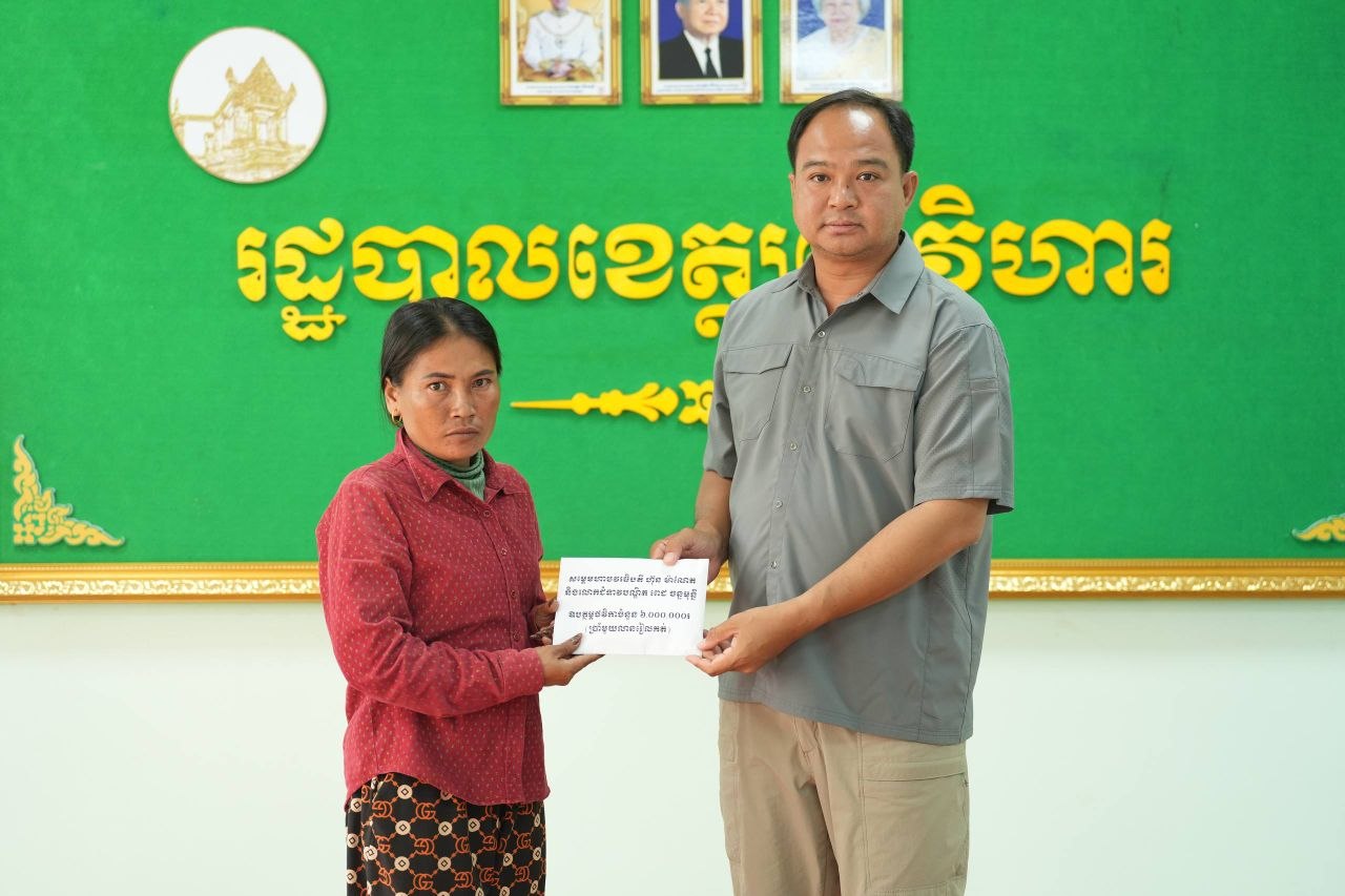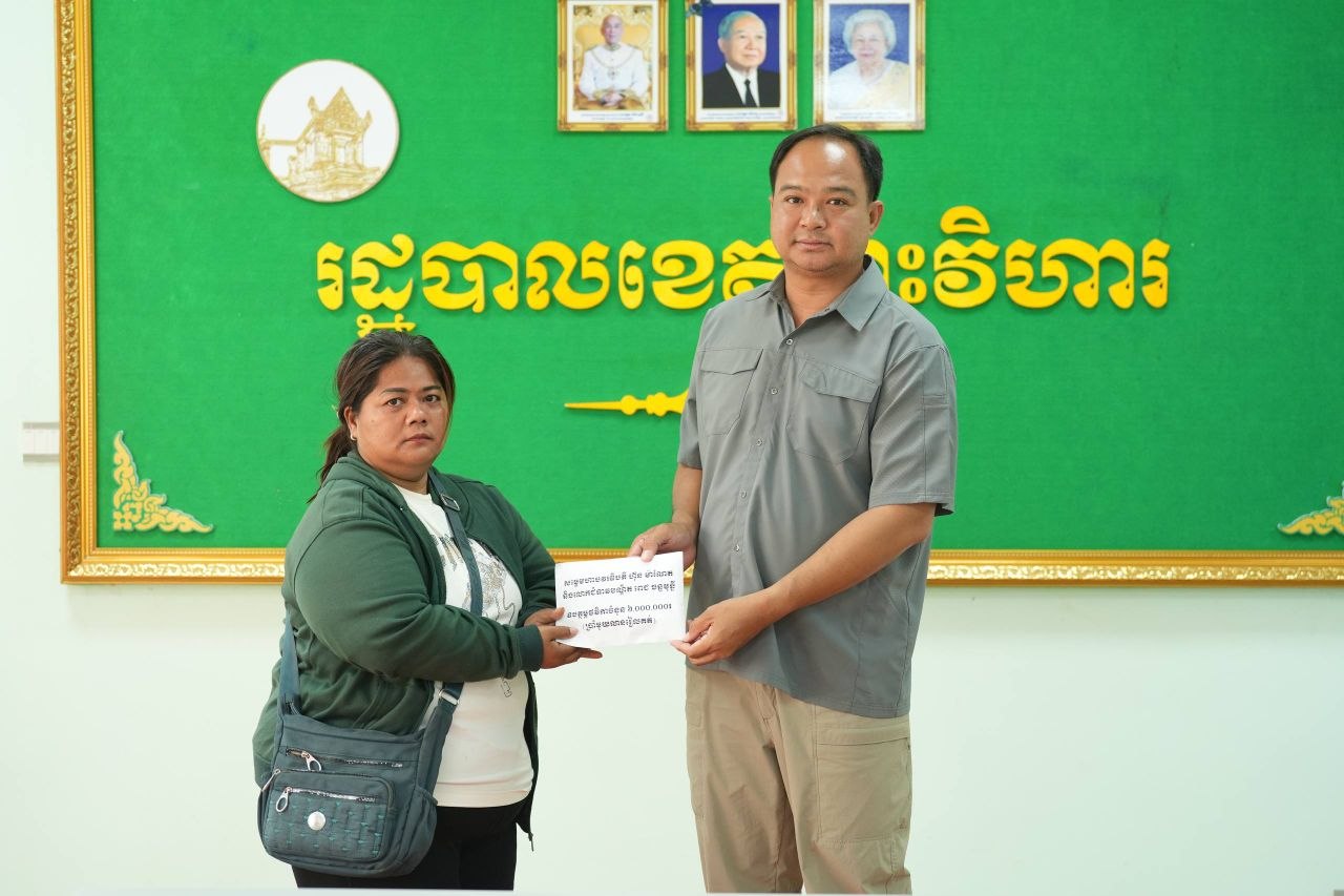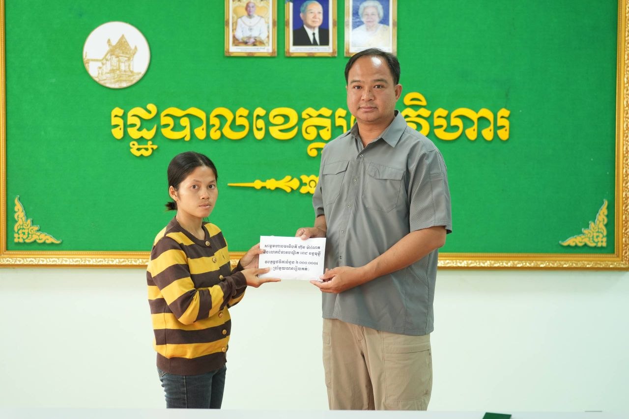 ឯកឧត្តម គីម រិទ្ធី អភិបាលខេត្តព្រះវិហារ នៅរសៀលថ្ងៃទី១២ ខែមេសា ឆ្នាំ២០២៦ បានអញ្ជើញជួបសំណេះសំណាល និងនាំយកថវិកាសប្បុរសជន ដែលបានឧបត្ថម្ភតាមរយៈសម្តេចមហាបវរធិបតី ហ៊ុន ម៉ាណែត នាយករដ្ឋមន្ត្រី នៃកម្ពុជា និងលោកជំទាវបណ្ឌិត ពេជ ចន្ទមុន្នី ហ៊ុនម៉ាណែត ប្រគល់ជូនដល់ក្រុមគ្រួសារវីរកងទ័ព ដែលបានពលីជីវិតក្នុងបុព្វហេតុការពារបូរណភាពទឹកដី នៅសមរភូមិទិសព្រះវិហារ។