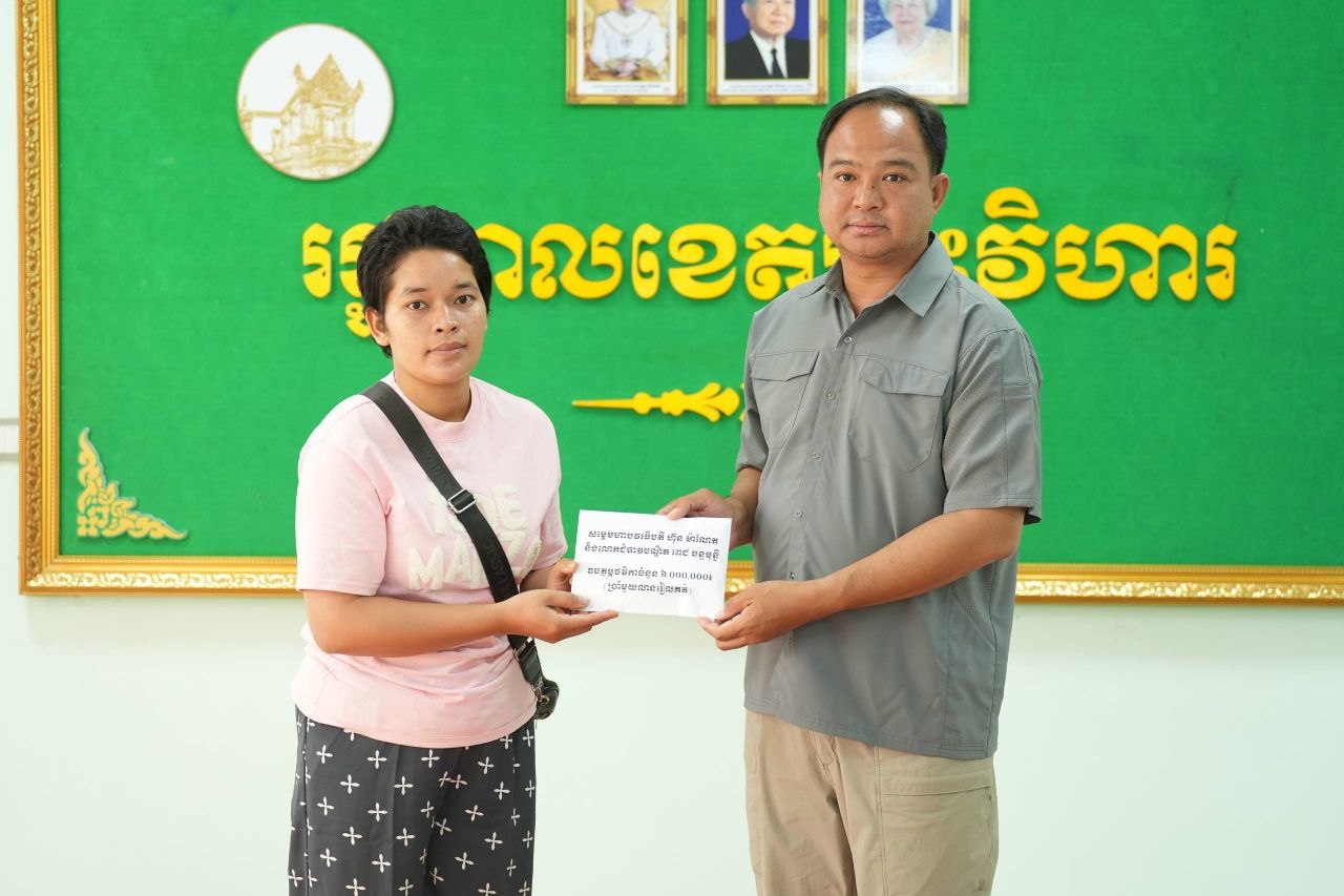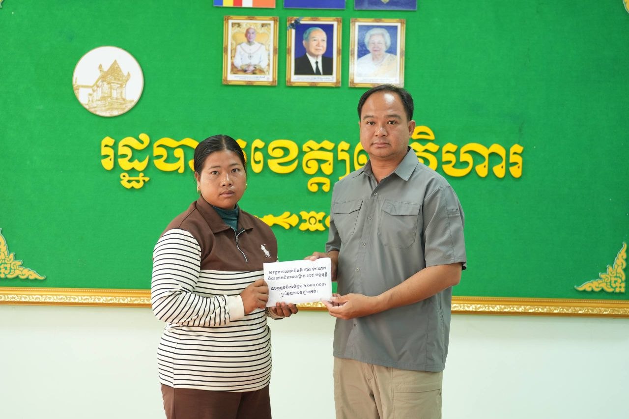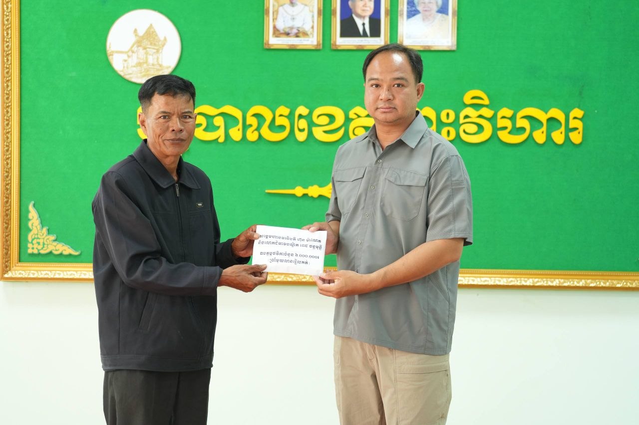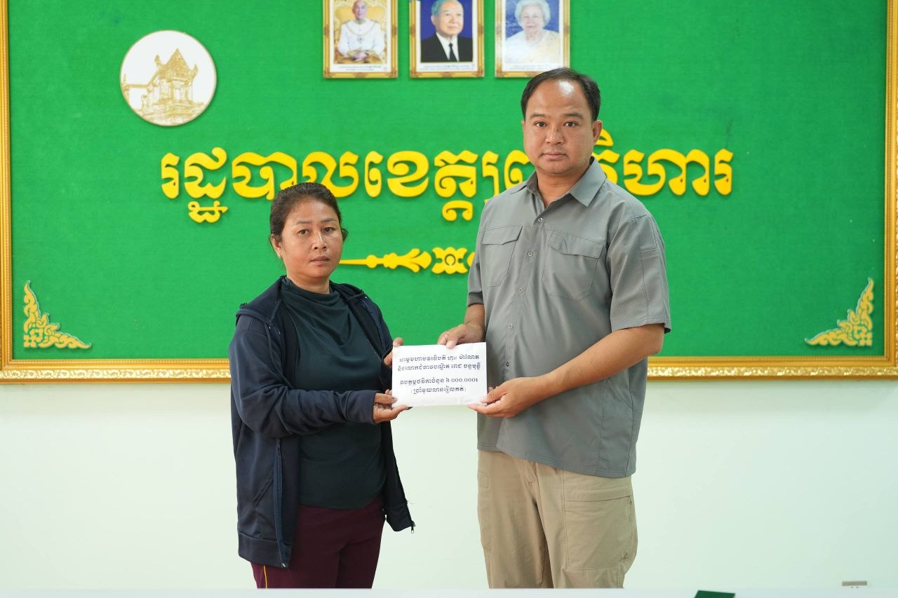 ឯកឧត្តម គីម រិទ្ធី អភិបាលខេត្តព្រះវិហារ នៅរសៀលថ្ងៃទី១២ ខែមេសា ឆ្នាំ២០២៦ បានអញ្ជើញជួបសំណេះសំណាល និងនាំយកថវិកាសប្បុរសជន ដែលបានឧបត្ថម្ភតាមរយៈសម្តេចមហាបវរធិបតី ហ៊ុន ម៉ាណែត នាយករដ្ឋមន្ត្រី នៃកម្ពុជា និងលោកជំទាវបណ្ឌិត ពេជ ចន្ទមុន្នី ហ៊ុនម៉ាណែត ប្រគល់ជូនដល់ក្រុមគ្រួសារវីរកងទ័ព ដែលបានពលីជីវិតក្នុងបុព្វហេតុការពារបូរណភាពទឹកដី នៅសមរភូមិទិសព្រះវិហារ។