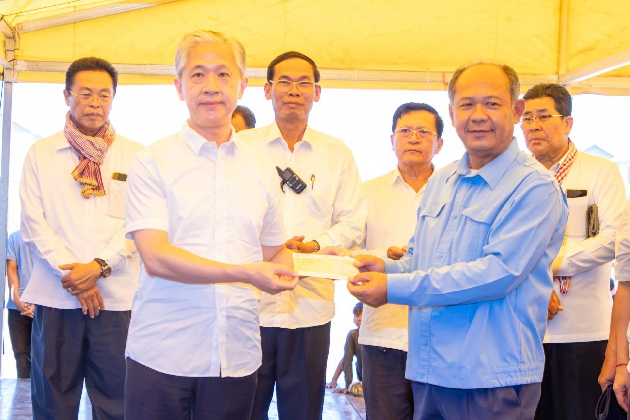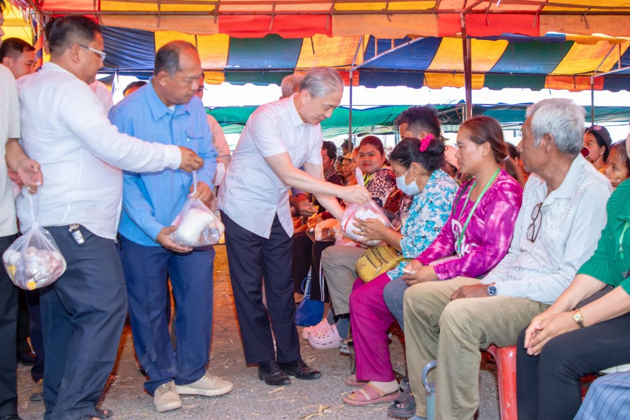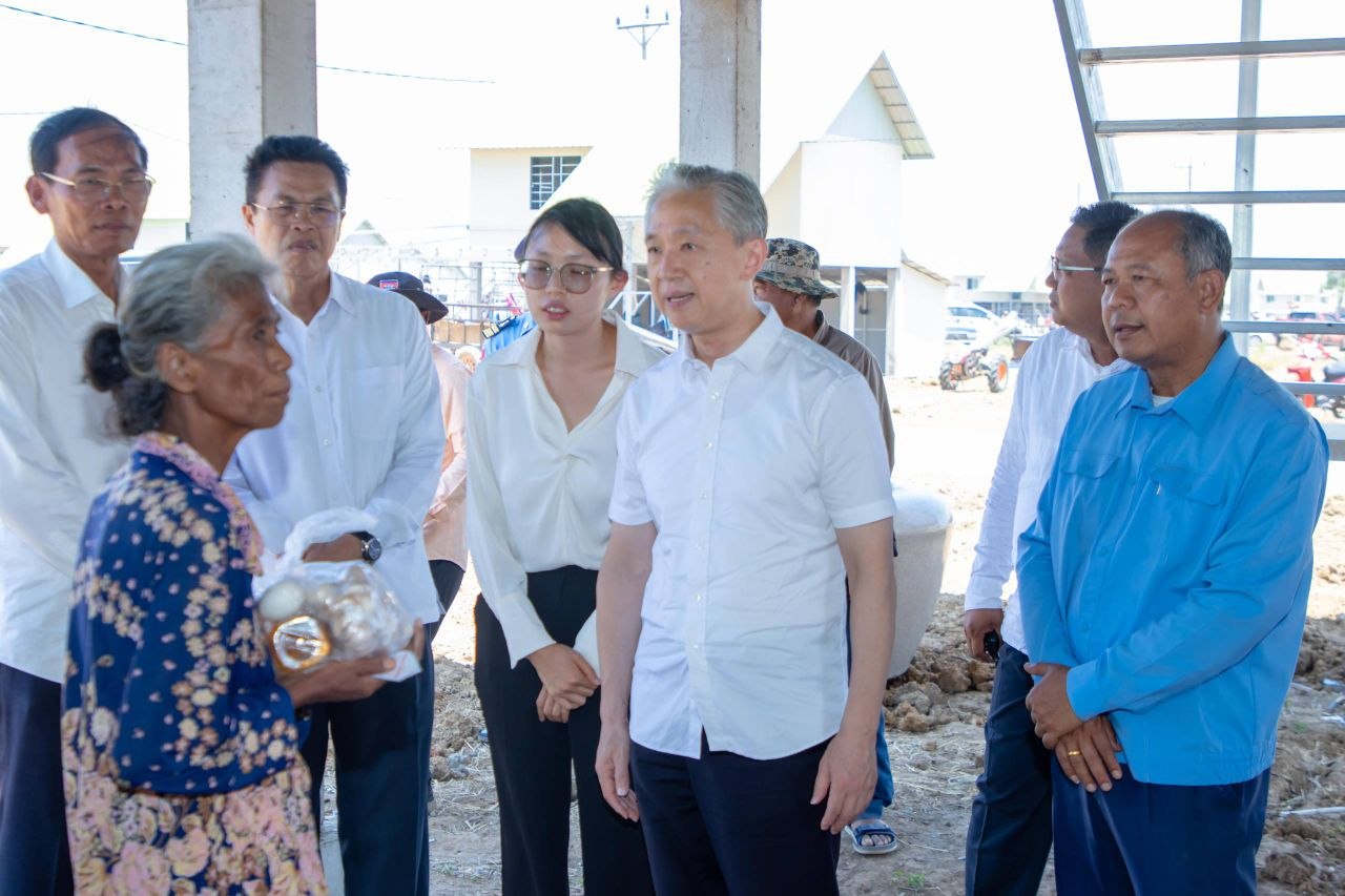 ឯកឧត្តម វ៉ាង វិនពីន (Wang Wenbin) ឯកអគ្គរដ្ឋទូតនៃសាធារណរដ្ឋប្រជាមានិតចិន ប្រចាំនៅកម្ពុជា បាននាំយកអំណោយមនុស្សធម៌ ទៅប្រគល់ជូនប្រជាពលរដ្ឋភៀសសឹក ដែលកំពុងស្នាក់នៅជម្រកបណ្តោះអាសន្នផ្ទះអតីតយុទ្ធជន ស្ថិតនៅភូមិស្លក្រាម ឃុំស្លក្រាម ស្រុកស្វាយចេក ខេត្តបន្ទាយមានជ័យ នាថ្ងៃទី១២ ខែមេសា ឆ្នាំ២០២៦។