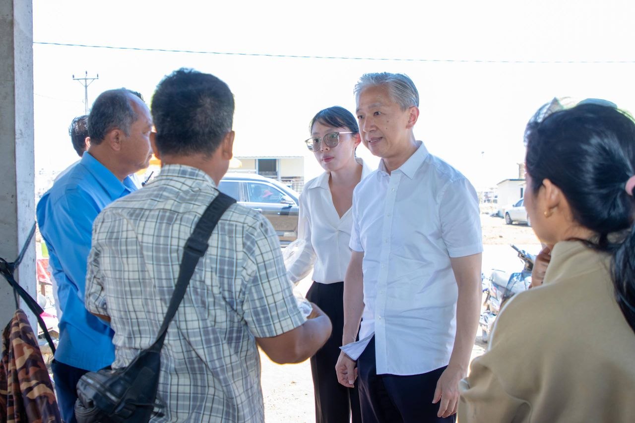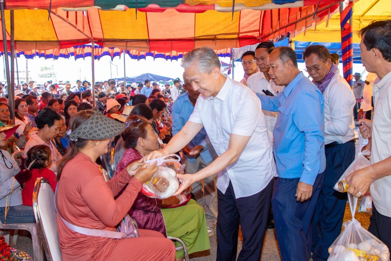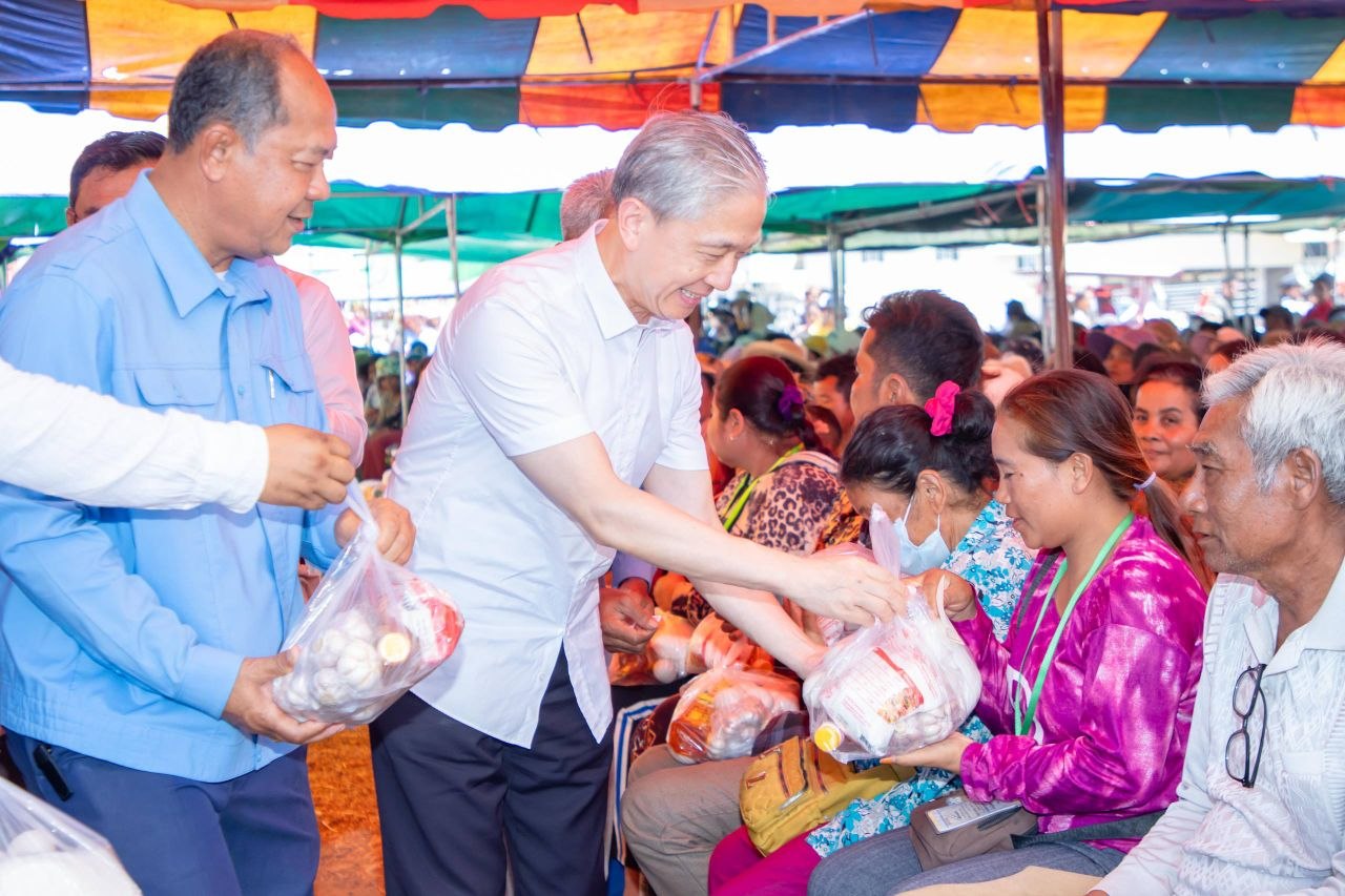 ឯកឧត្តម វ៉ាង វិនពីន (Wang Wenbin) ឯកអគ្គរដ្ឋទូតនៃសាធារណរដ្ឋប្រជាមានិតចិន ប្រចាំនៅកម្ពុជា បាននាំយកអំណោយមនុស្សធម៌ ទៅប្រគល់ជូនប្រជាពលរដ្ឋភៀសសឹក ដែលកំពុងស្នាក់នៅជម្រកបណ្តោះអាសន្នផ្ទះអតីតយុទ្ធជន ស្ថិតនៅភូមិស្លក្រាម ឃុំស្លក្រាម ស្រុកស្វាយចេក ខេត្តបន្ទាយមានជ័យ នាថ្ងៃទី១២ ខែមេសា ឆ្នាំ២០២៦។