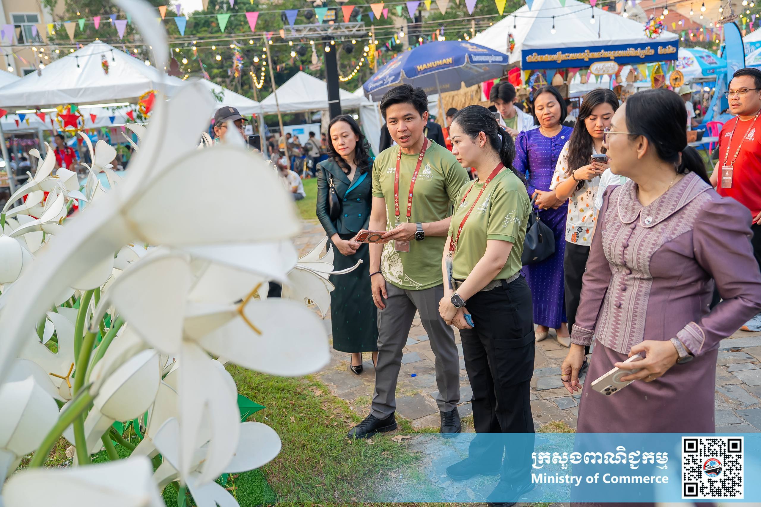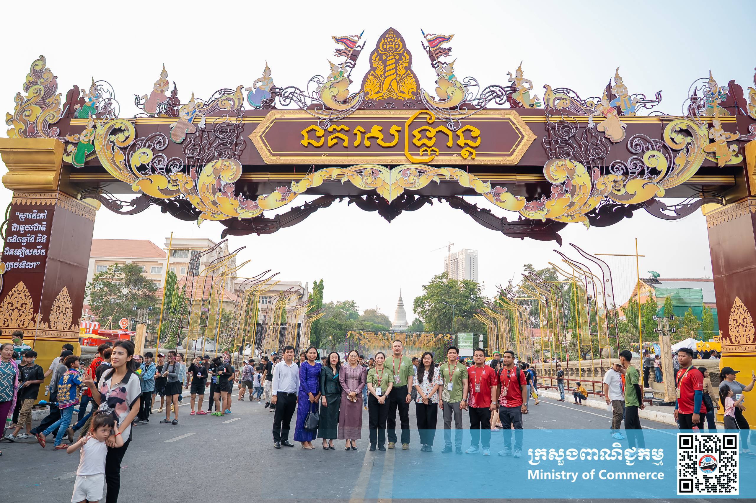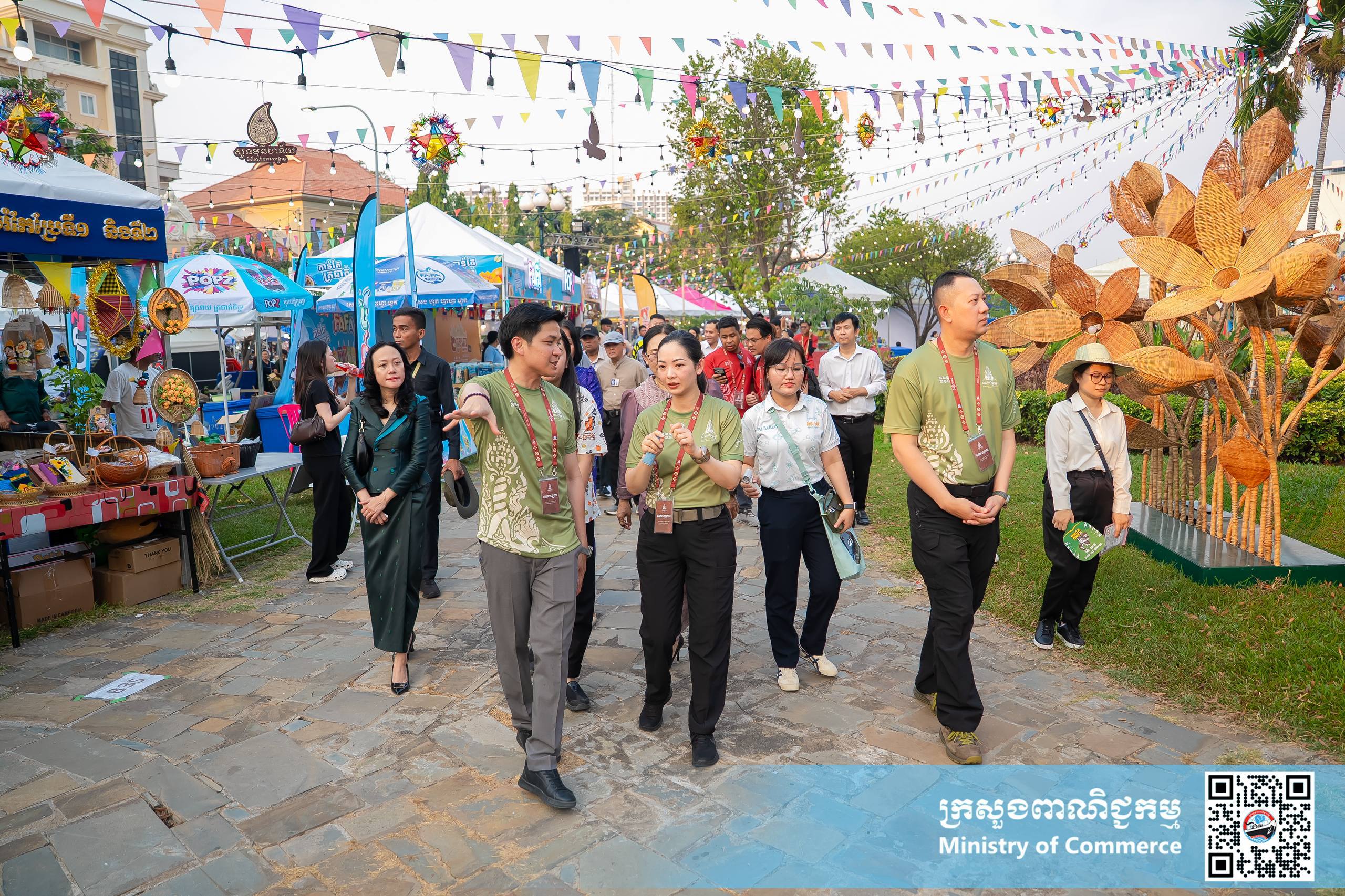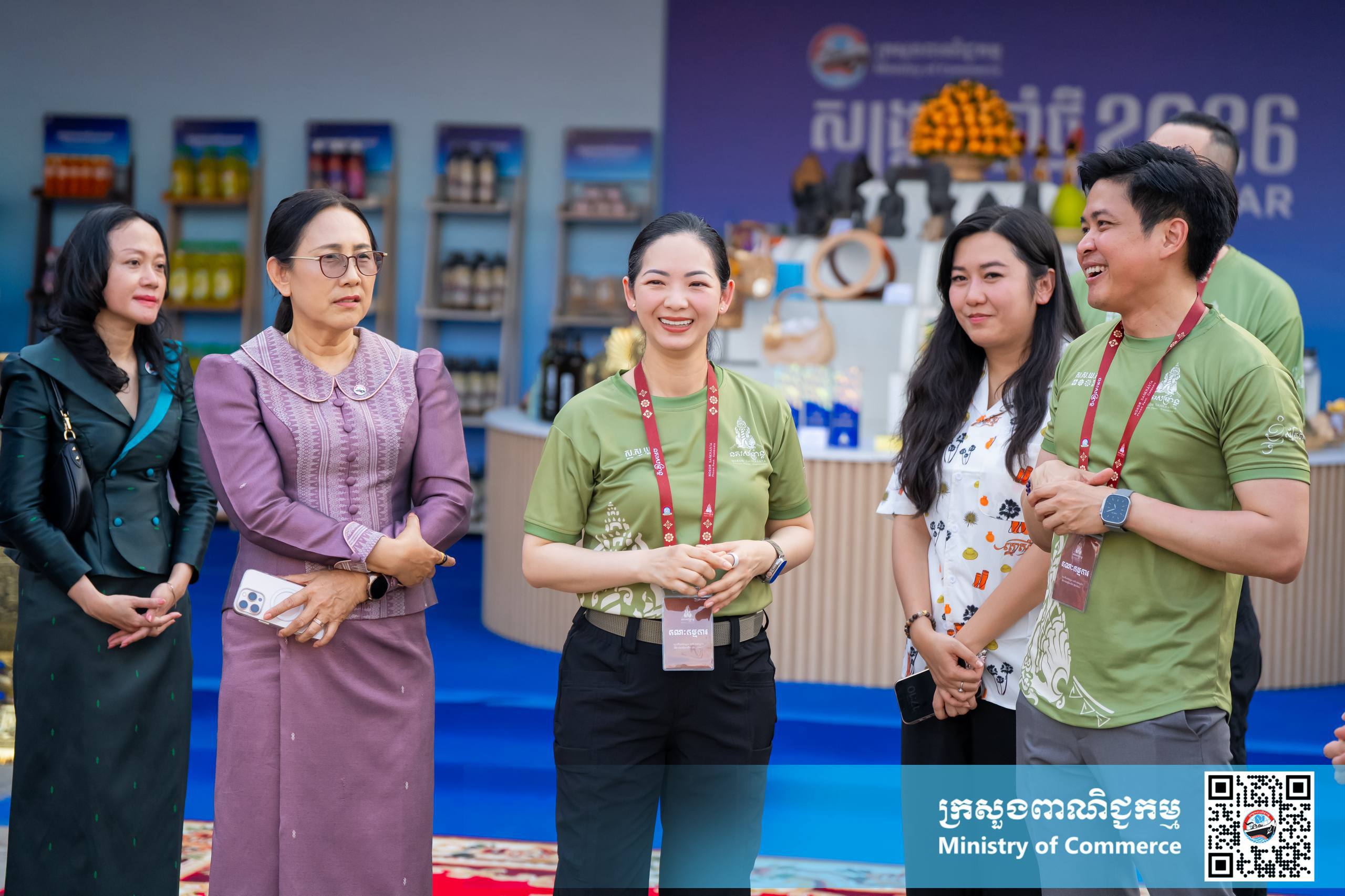 នាល្ងាចថ្ងៃអង្គារ ទី១៤ ខែមេសា ឆ្នាំ២០២៦ នៅស្តង់យុទ្ធនាការផលិតផលជាតិ #MadeInCambodia បរិវេណស្ពាននាគ លោកជំទាវ ចម និម្មល រដ្ឋមន្ត្រីក្រសួងពាណិជ្ជកម្ម បានអញ្ជើញទស្សនា “សួនមុនីហទ័យ និងពិព័រណ៍នគរសង្ក្រាន្ត” អមព្រឹត្តិការណ៍នគរសង្ក្រាន្ត និងដោយមានការអញ្ជើញចូលរួមពីថ្នាក់ដឹកនាំក្រសួងពាណិជ្ជកម្ម សិប្បករ-ផលិតករក្នុងស្រុក និងប្រជាពលរដ្ឋជាច្រើនរូប។